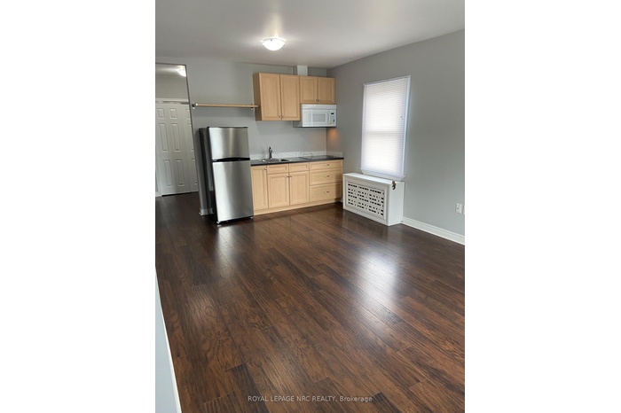Economical Studio unit is cozy and step saving living at it's best. Includes Fridge, countertop stove and built in microwave range hood. Vinyl plank flooring is easy on the feet, double clothes closet and an area for a desk as well if you work from home. A parking space is included plus there is a bus stop on steps away from building entrance. Walking distance to meridian centre, downtown nightlife, performing Arts Theatre and Ontario Streets dining, shopping and grocery district. Coin laundry on main floor has all newer machines. keyed and monitored entry to apartment stairway. Wifi, heat and water included in monthly rent. tenant responsible for Hydro. Credit check, rental application, Ontario Lease agreement and first and last months rent required.