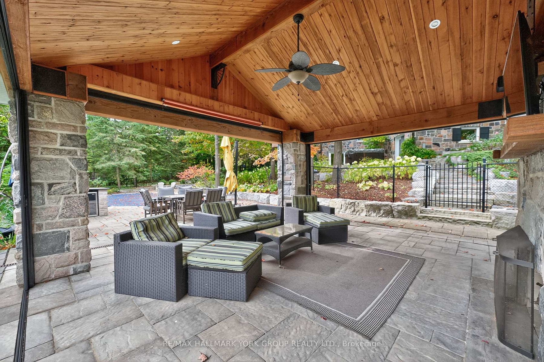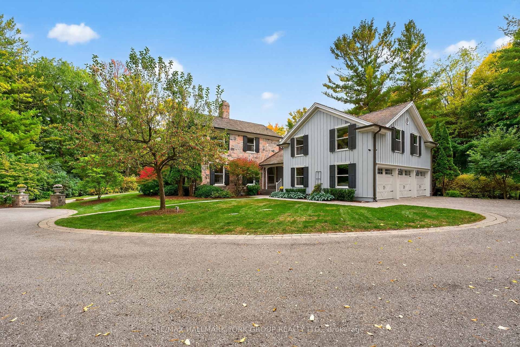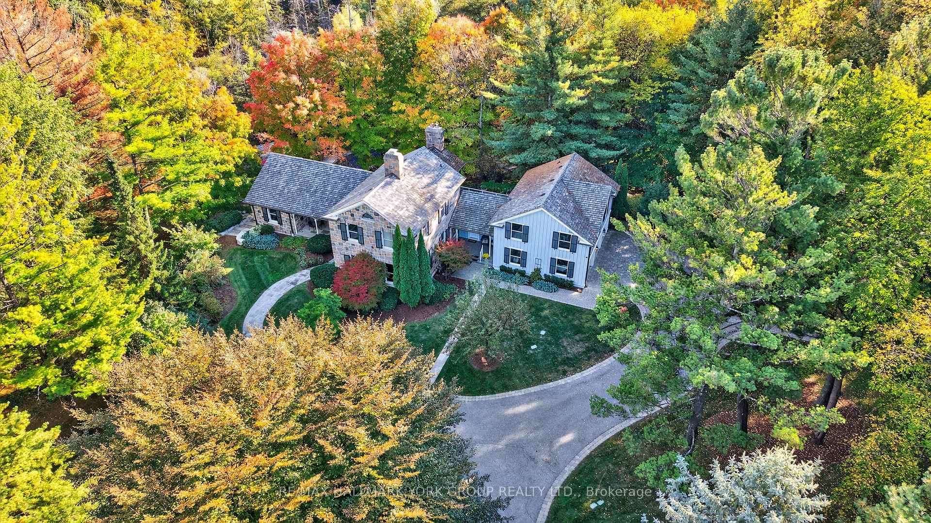 Welcome to Ridgewood, one of Aurora's most distinguished estate properties. Privately set behind gates on three manicured acres, this custom-built residence blends timeless architecture with modern luxury for an exceptional lifestyle. A circular drive leads to an elegant façade and inviting interior where refined craftsmanship meets everyday comfort. The chef's kitchen, equipped with premium appliances, opens to a grand vaulted family room with exposed beams and expansive views of the grounds. The main floor features a serene primary suite with a spa-inspired ensuite and custom dressing room. Upstairs, two additional bedrooms with private ensuites offer stylish comfort for family or guests. The finished walk-out lower level is designed for entertaining-featuring a home theater, gym, recreation lounge, wine cellar, and an arched-ceiling tasting room perfect for gatherings. A fourth bedroom adds versatility for guests or extended family. Above the three-car garage, a self-contained one-bedroom apartment includes a full kitchen, living room, and bedroom-ideal for multi-generational living, a nanny, a private office, or luxurious guest quarters.The outdoor setting is a resort-style retreat. Mature trees, lush gardens, and ambient lighting surround a stunning inground pool and hot tub. The poolside pavilion offers a fireplace, outdoor kitchen, two-piece bath, and change area-making entertaining effortless.With nearly 1,100 feet of frontage, enjoy your own walking trails, dog run, and direct access to the St. Andrews on the Hill trail network. Steps to St. Andrew's College and St. Anne's School, and just minutes to golf, shopping, and major highways.Ridgewood is more than a home-it's a private sanctuary where elegance, comfort, and nature exist in perfect harmony.