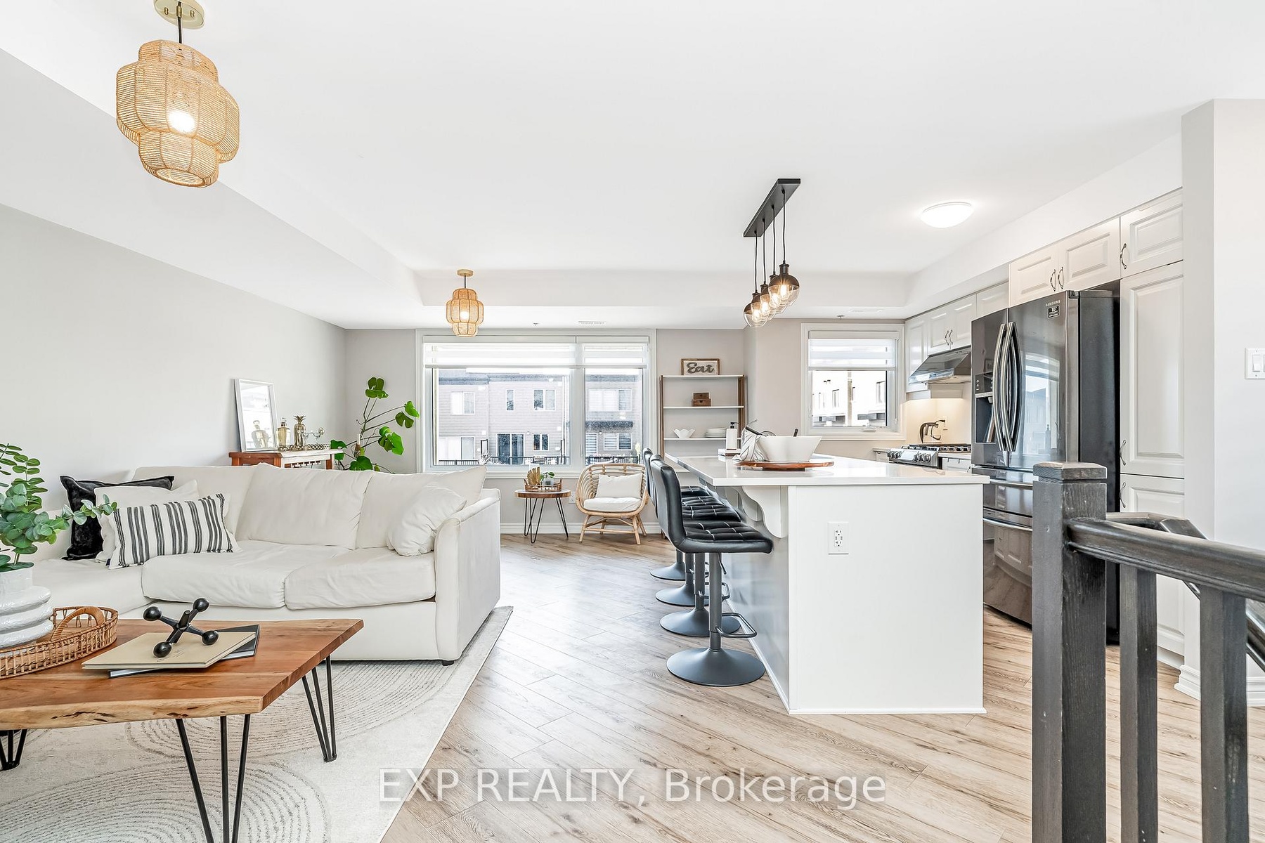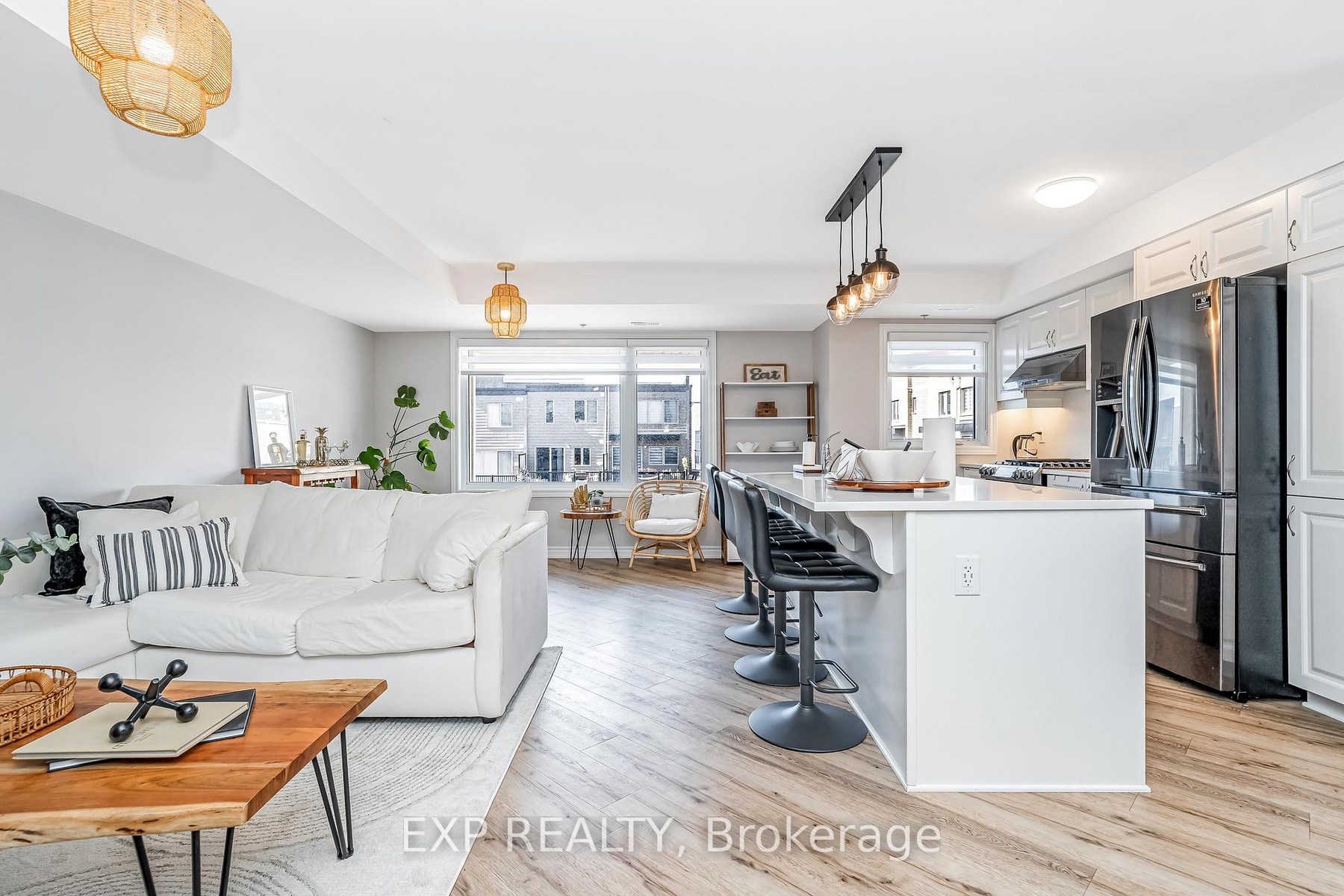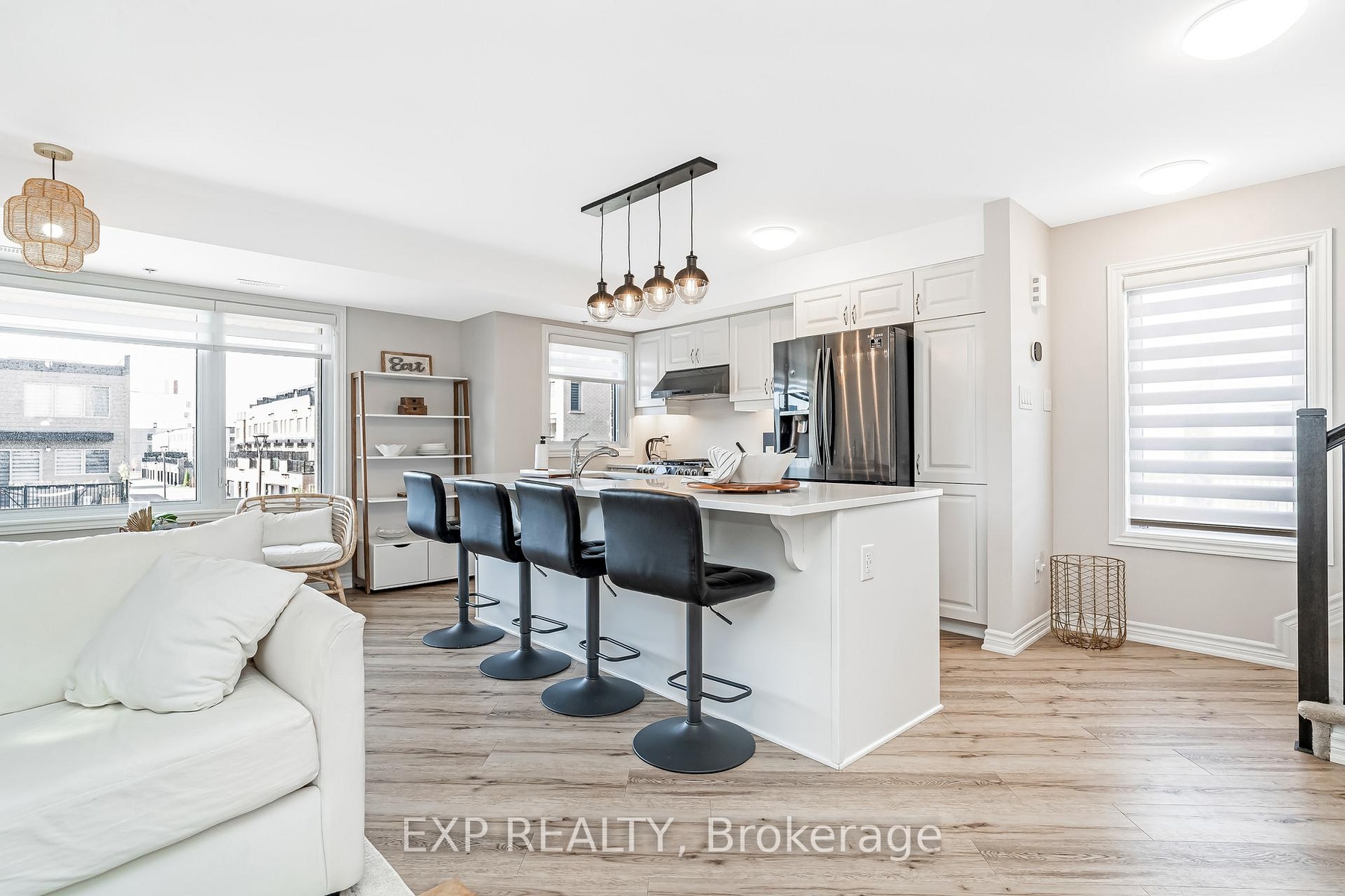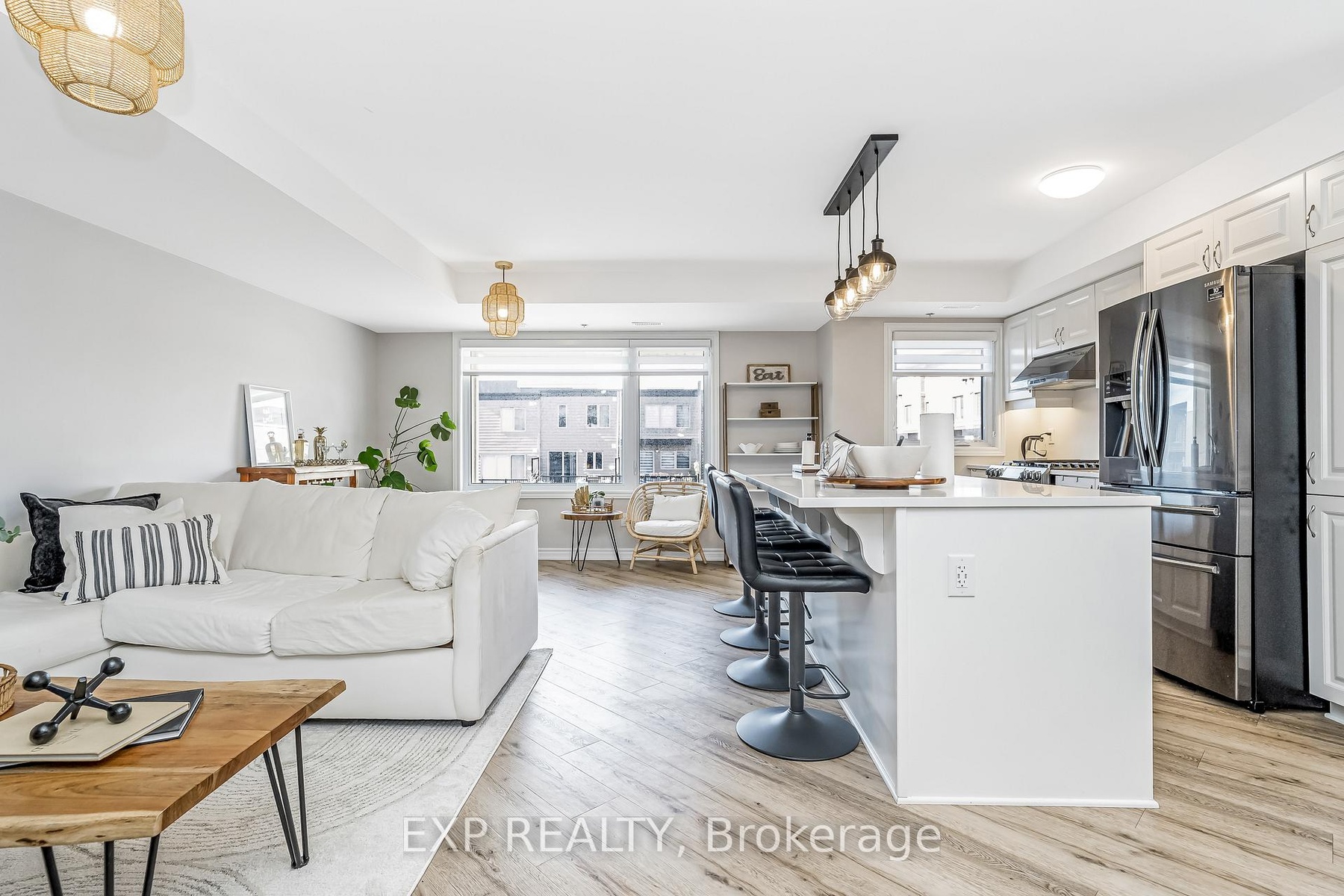 Welcome to your new happy place, a bright, modern 2019 2 bed, 2 bath upper-level corner unit in one of Ottawa's most vibrant communities. Steps from Parks, Nature Trails & Paths on Ottawa River, Montfort, CSE, CSIS, CMHC, LRT, Costco, plus just minutes to prestigious private schools: Ashbury College and Elmwood School. With over $60K in upgrades, this home features smooth ceilings, custom lighting, upgraded luxury vinyl plank flooring, and a sun-filled open layout. The kitchen shines with quartz counters, pristine white cabinetry, upgraded charcoal matching appliances, and a spacious eat-at island. Upstairs, enjoy a private balcony off the primary bedroom, a versatile second bedroom with TONS of light (perfect as gym, studio, office or warm bedroom), and a sleek full bath with his and hers sinks set in a quartz counter and complimentary gleaming tile work. Top it all off with your own private rooftop terrace that once you step into, the views of the skyline will make you fall in love. The terrace is ideal for BBQ socials (equipped with gas bbq hookup) , sun-soaked peaceful afternoons, or starry evenings. If you haven't been to Water Ridge Village, this will be your perfect intro. Common Element fees include: Building Insurance, Garbage Removal, General Maintenance and Repair, Landscape, Management Fee, Reserve Fund Allocation, Snow Removal