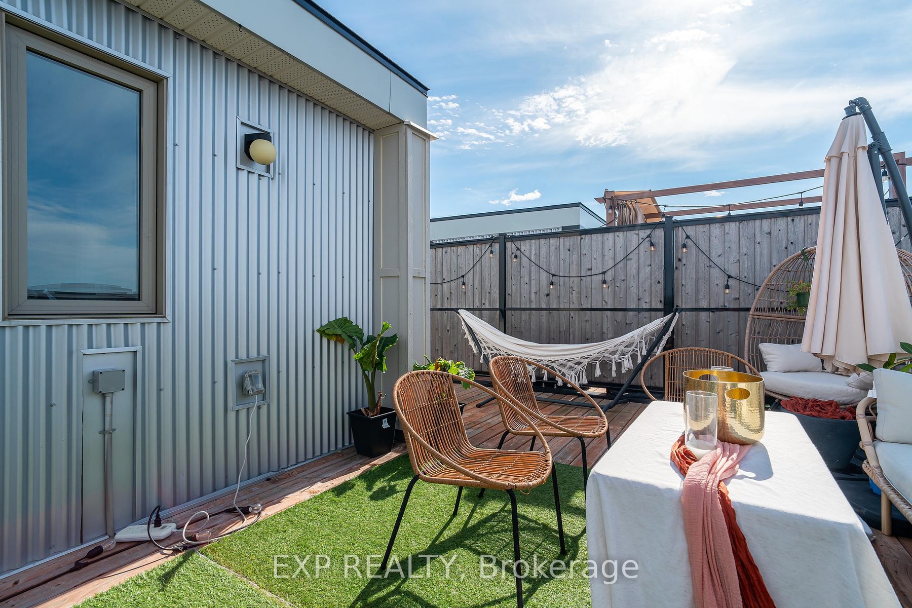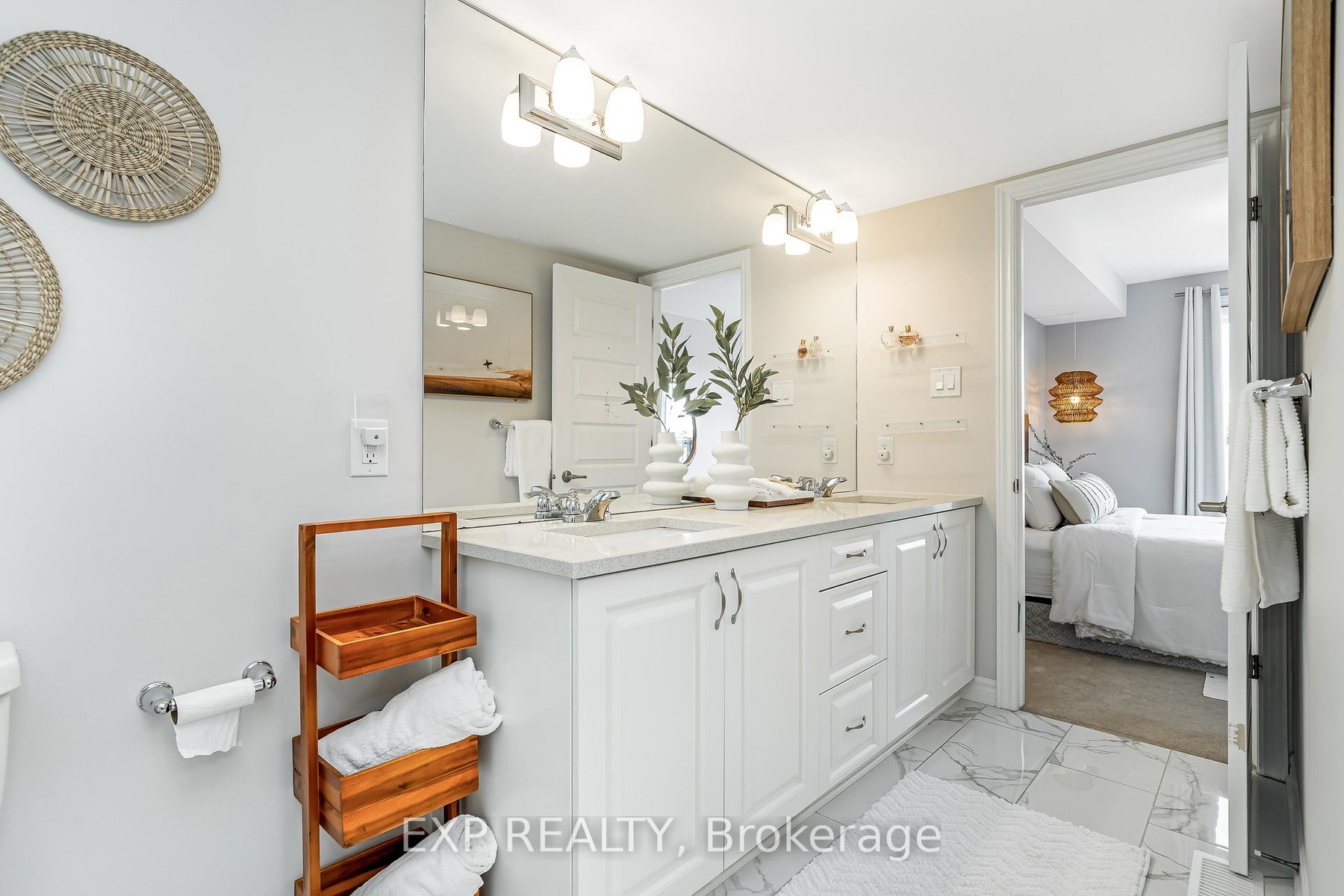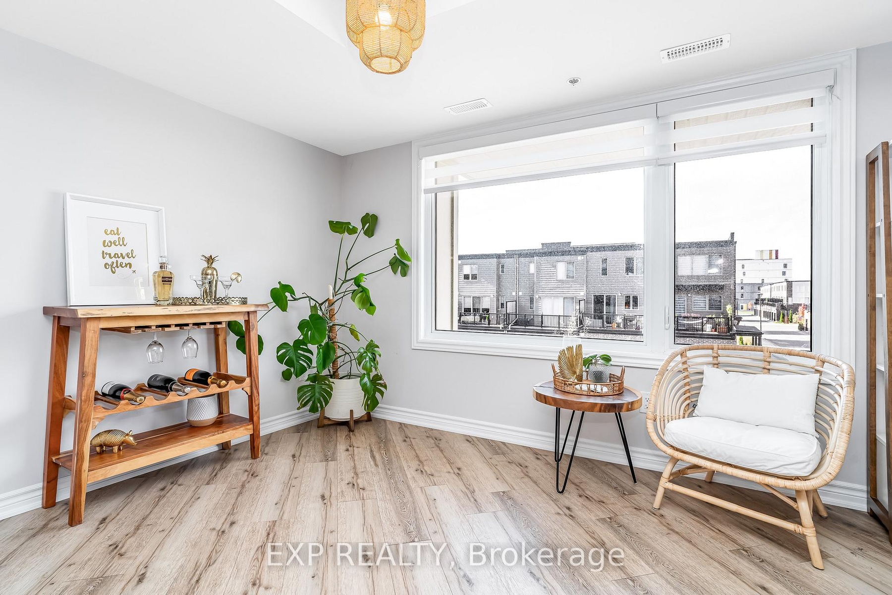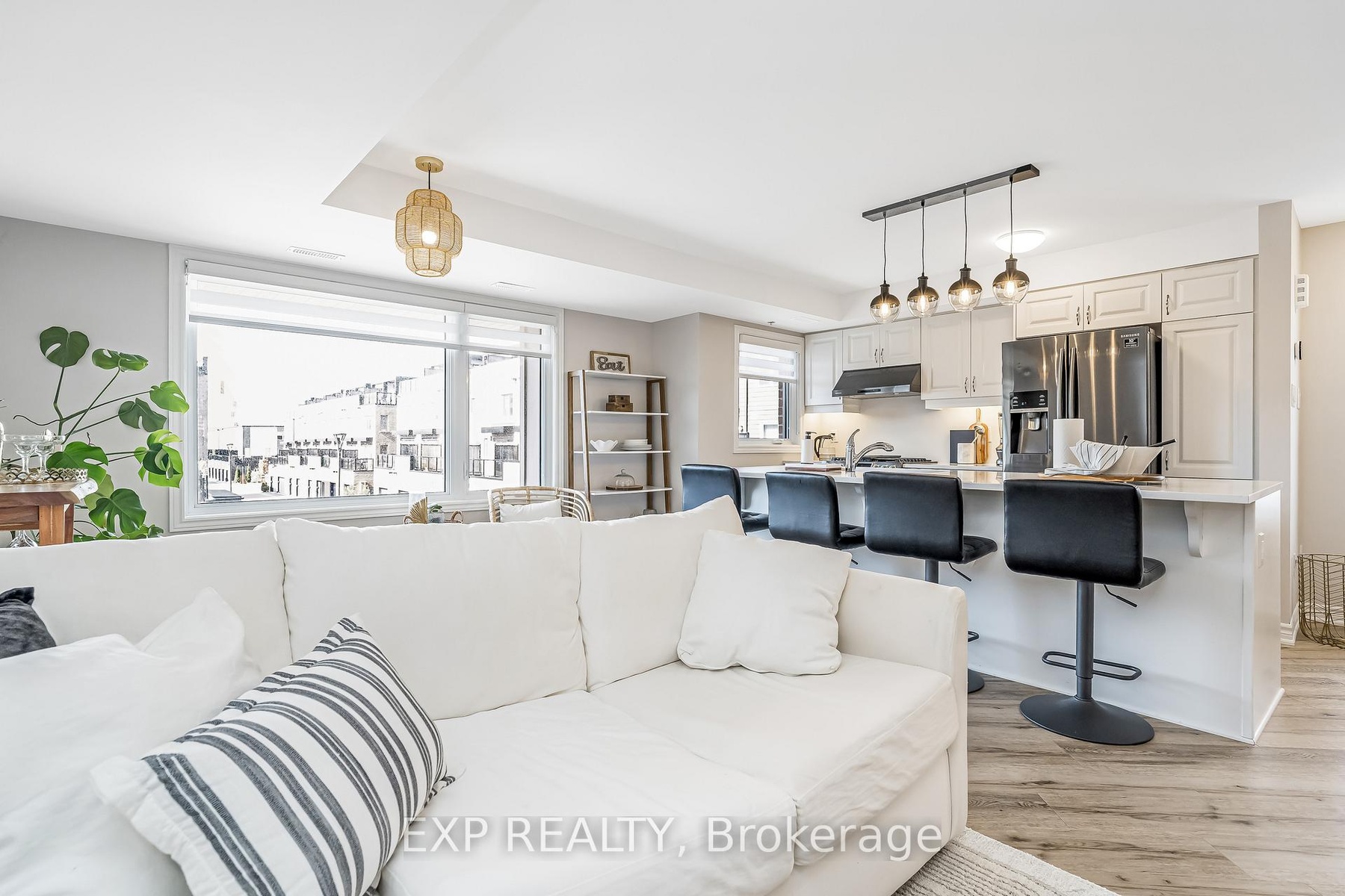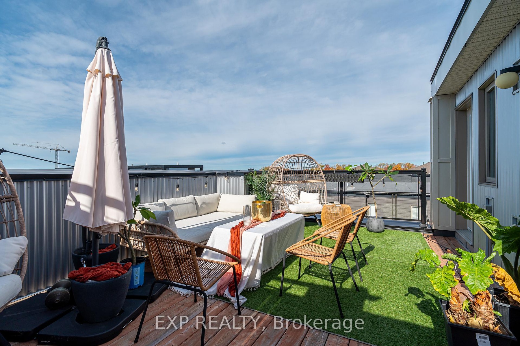 Welcome to your new happy place, a bright, modern 2019 2 bed, 2 bath upper-level corner unit in one of Ottawa's most vibrant communities. Steps from Parks, Nature Trails & Paths on Ottawa River, Montfort, CSE, CSIS, CMHC, LRT, Costco, plus just minutes to prestigious private schools: Ashbury College and Elmwood School. With over $60K in upgrades, this home features smooth ceilings, custom lighting, upgraded luxury vinyl plank flooring, and a sun-filled open layout. The kitchen shines with quartz counters, pristine white cabinetry, upgraded charcoal matching appliances, and a spacious eat-at island. Upstairs, enjoy a private balcony off the primary bedroom, a versatile second bedroom with TONS of light (perfect as gym, studio, office or warm bedroom), and a sleek full bath with his and hers sinks set in a quartz counter and complimentary gleaming tile work. Top it all off with your own private rooftop terrace that once you step into, the views of the skyline will make you fall in love. The terrace is ideal for BBQ socials (equipped with gas bbq hookup) , sun-soaked peaceful afternoons, or starry evenings. If you haven't been to Water Ridge Village, this will be your perfect intro. Common Element fees include: Building Insurance, Garbage Removal, General Maintenance and Repair, Landscape, Management Fee, Reserve Fund Allocation, Snow Removal