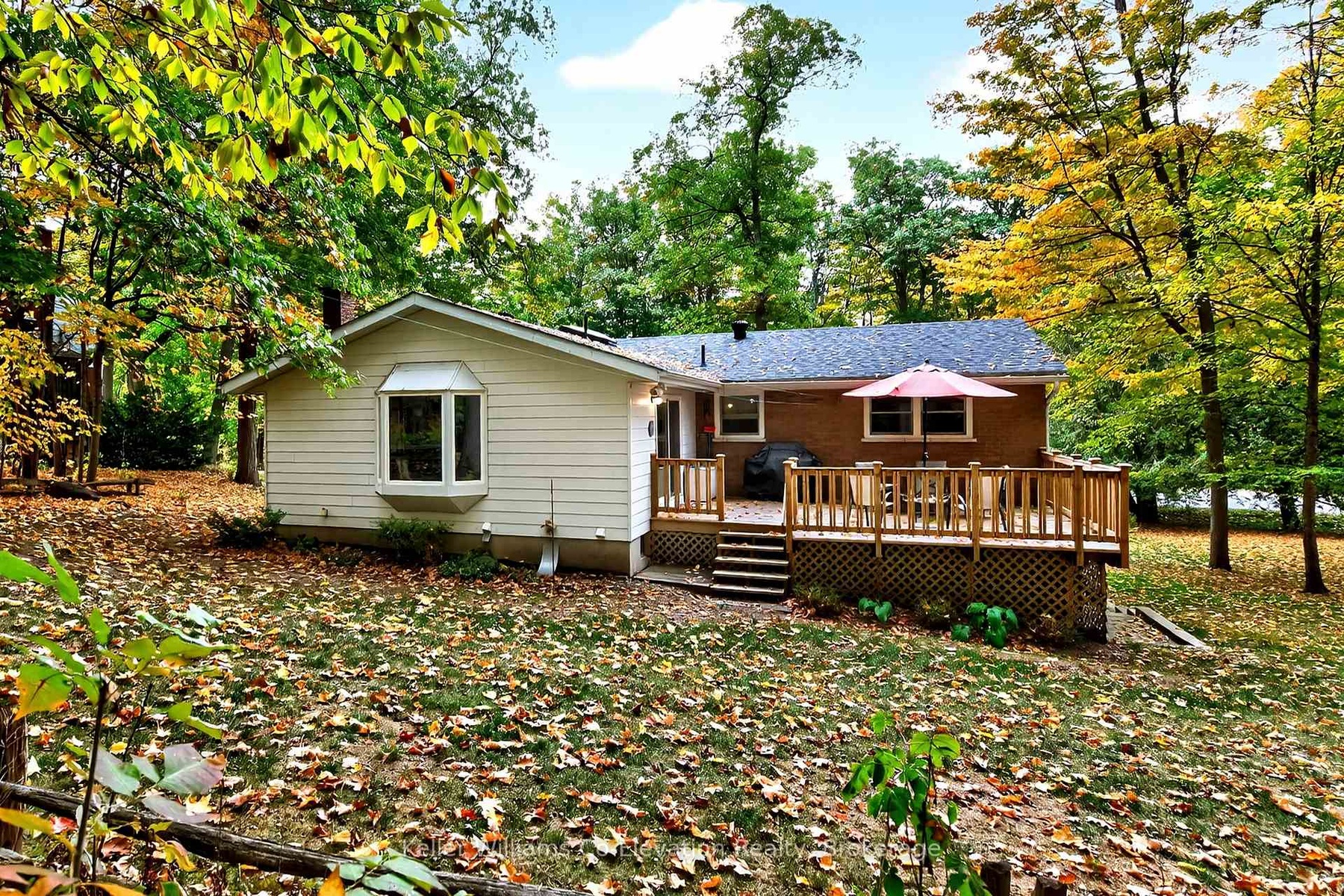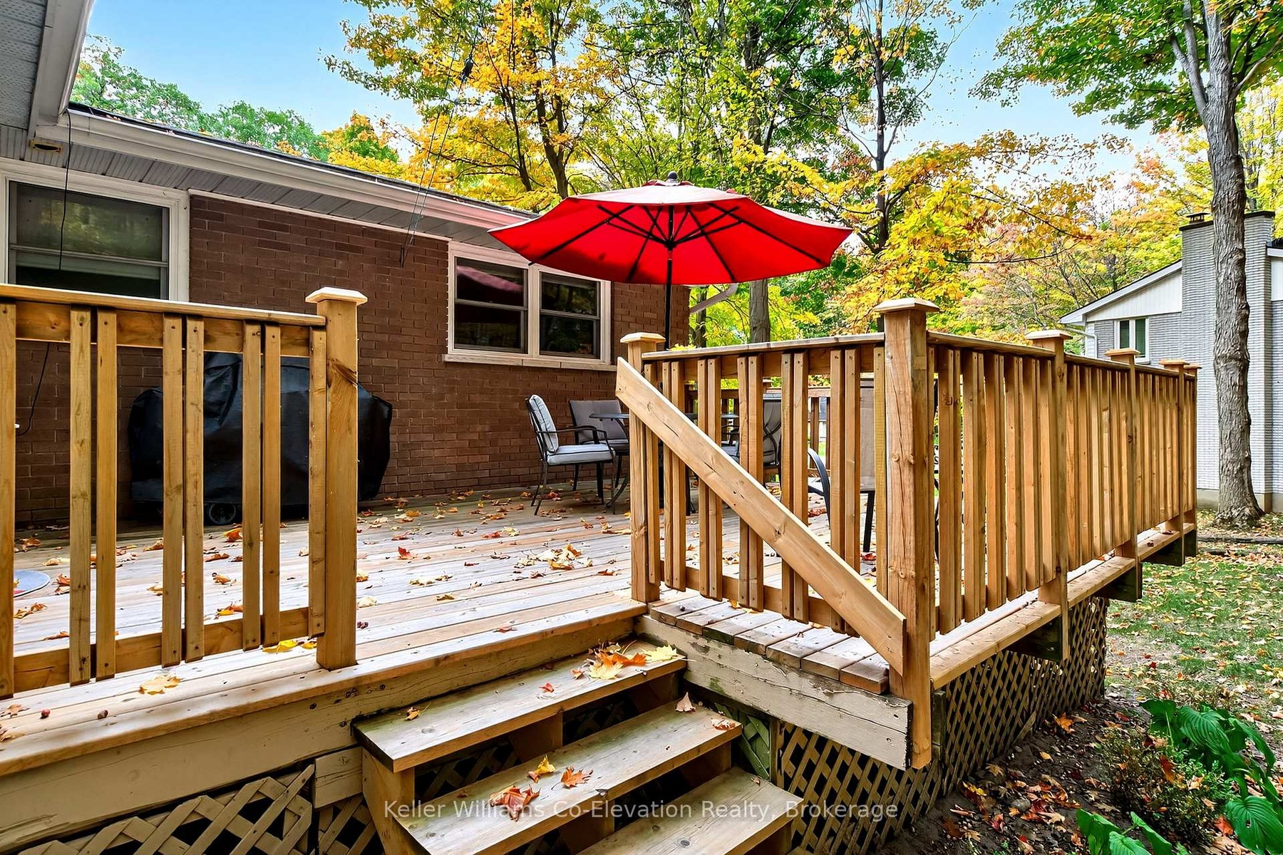 Just steps from Gawley Park Beach & the Midland Rotary Trail, this incredible family home offers seasonal water views, nearly half an acre of privacy, and the perfect blend of comfort and space. The large new deck (2024) overlooks a peaceful backyard surrounded by nature - ideal for morning coffee or summer gatherings. Inside, you'll find a bright and spacious main-floor family room with a cozy gas fireplace, formal living and dining room, 3 bedrooms up, 1 down, and 2 full baths, giving everyone room to spread out. The kitchen features an abundance of counters and cabinetry and the functional layout make everyday living easy, while the finished lower level adds great flexibility for guests with a spacious bonus room and den in addition to the large front bedroom or rec room space. This home offers so many entertaining options or it could make a great home office and offers convenient inside access to the lower level through the garage. With a new Septic System installed in 2014, new shingles-front (2025) and back (2021), plus a terrific family-friendly community just a short stroll to the water, this home offers the best of both worlds-year-round living or a perfect Georgian Bay retreat.
