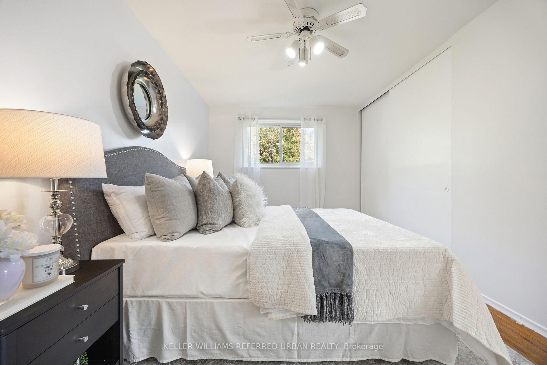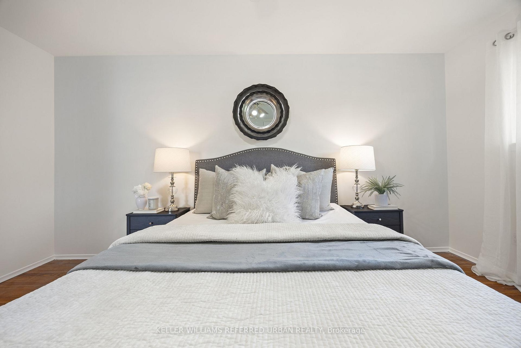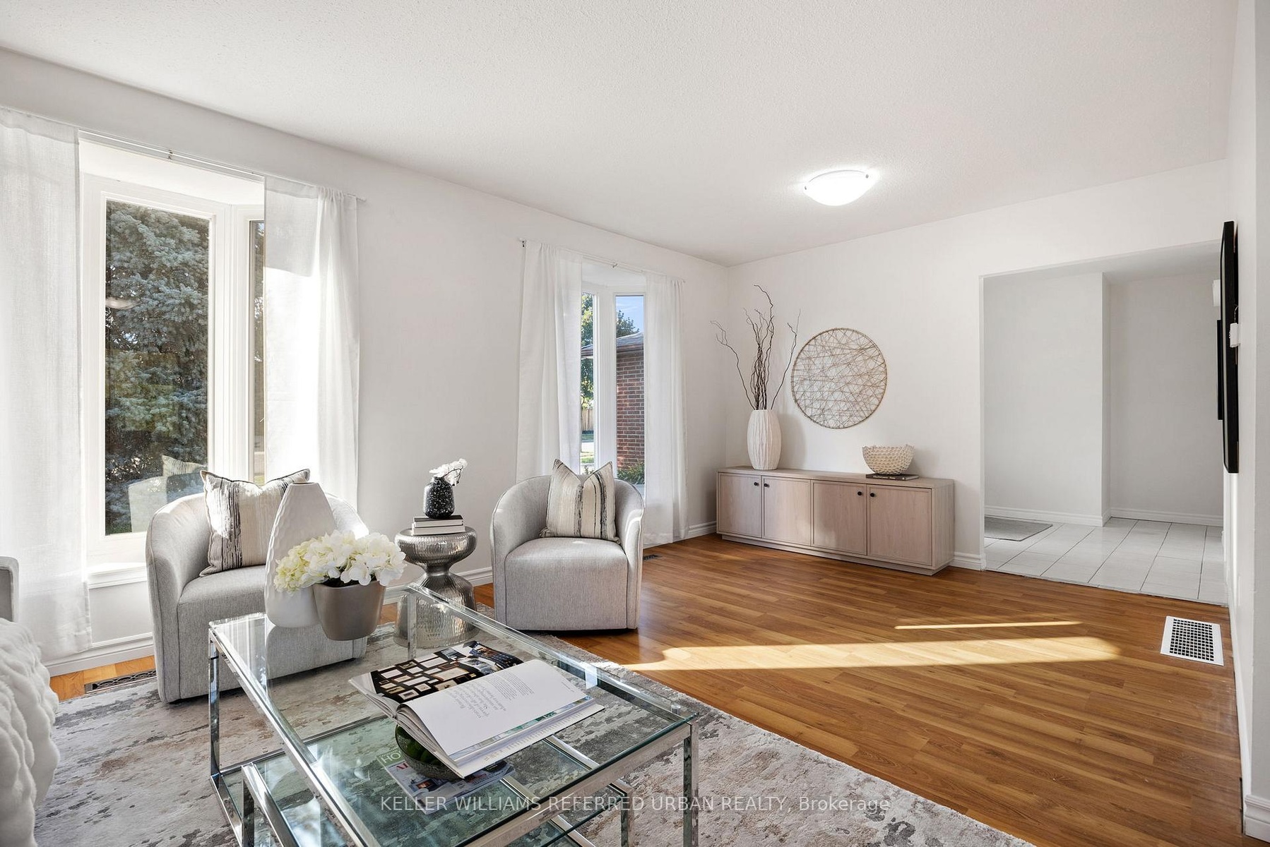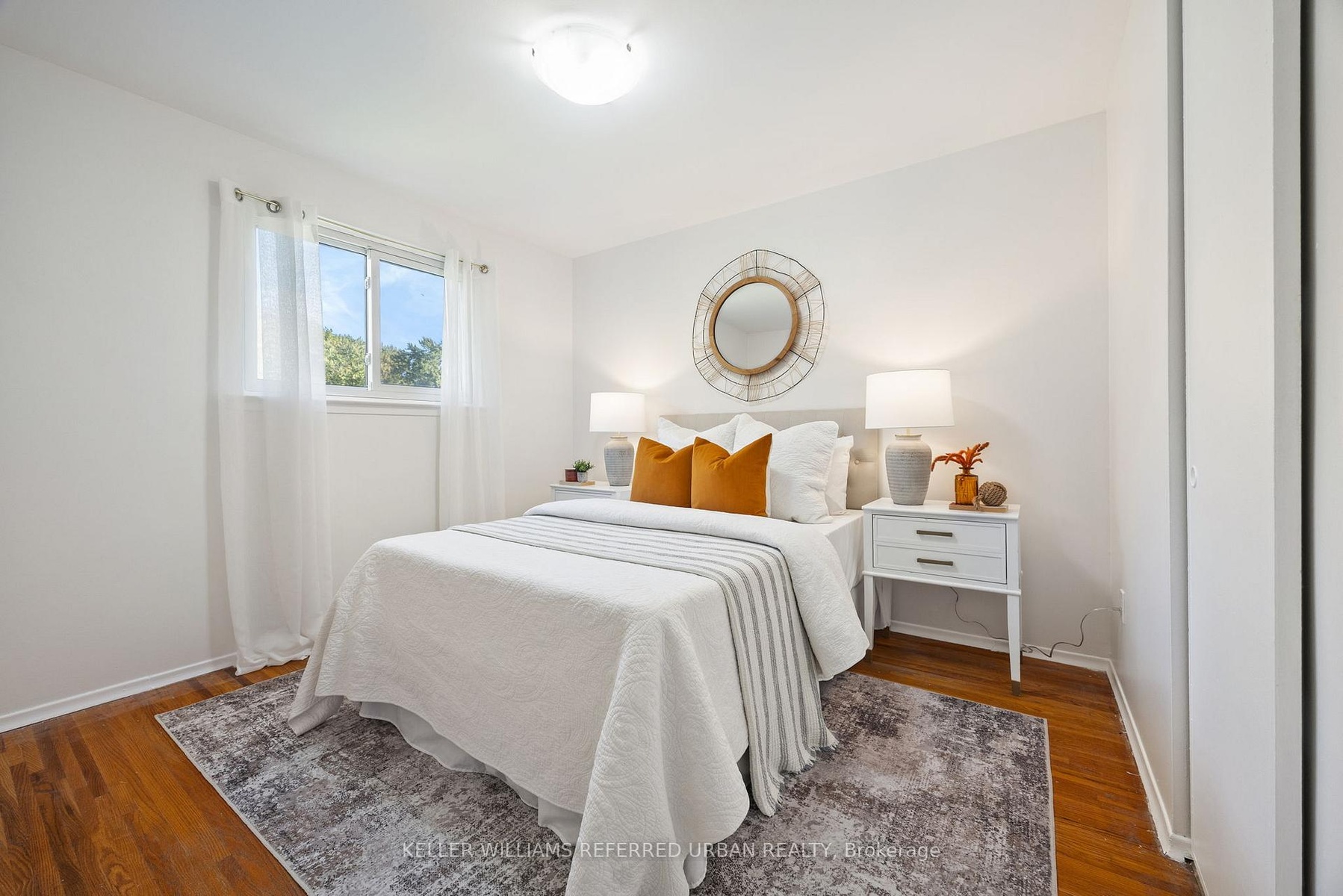 Welcome to 17 Madron Crescent, a beautifully maintained detached home in the sought-after York University Heights community. This updated, light-filled residence features a bright open-concept living and dining space with large bay windows that bathe the rooms in natural light, creating an inviting atmosphere from the moment you enter. The spacious kitchen offers ample cabinetry and counter space, with a large window overlooking the lush backyard. Upstairs, you'll find three comfortable bedrooms with original strip hardwood floors and plenty of closet space. The lower level adds versatile living options with a generous recreation room and additional bedroom, perfect for extended family or future income potential. Enjoy a side walk-out from the dining room to a private fenced yard with mature trees and a patio ideal for entertaining, with access to Bratty Park behind the large yard. Just steps to parks, schools, transit, and York University, this home combines suburban calm with city convenience a rare find on a quiet crescent backing onto green space.