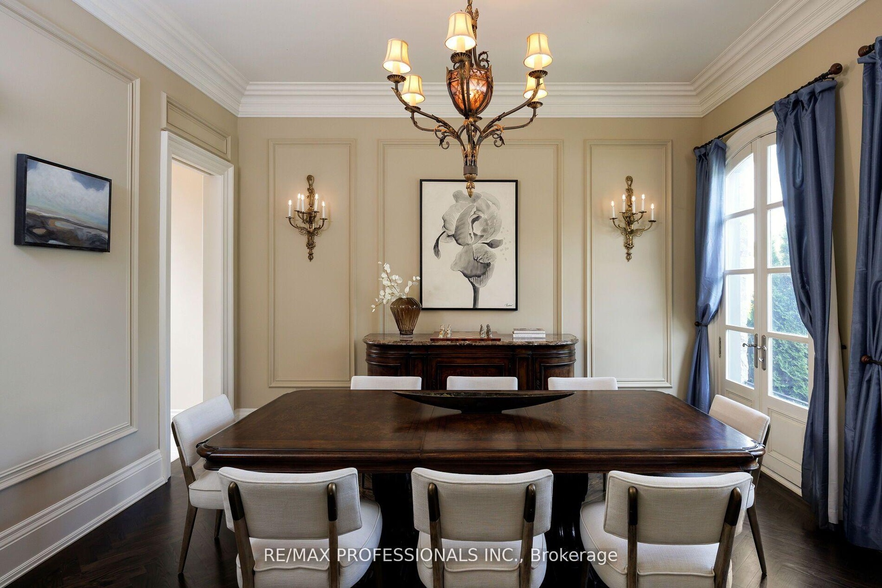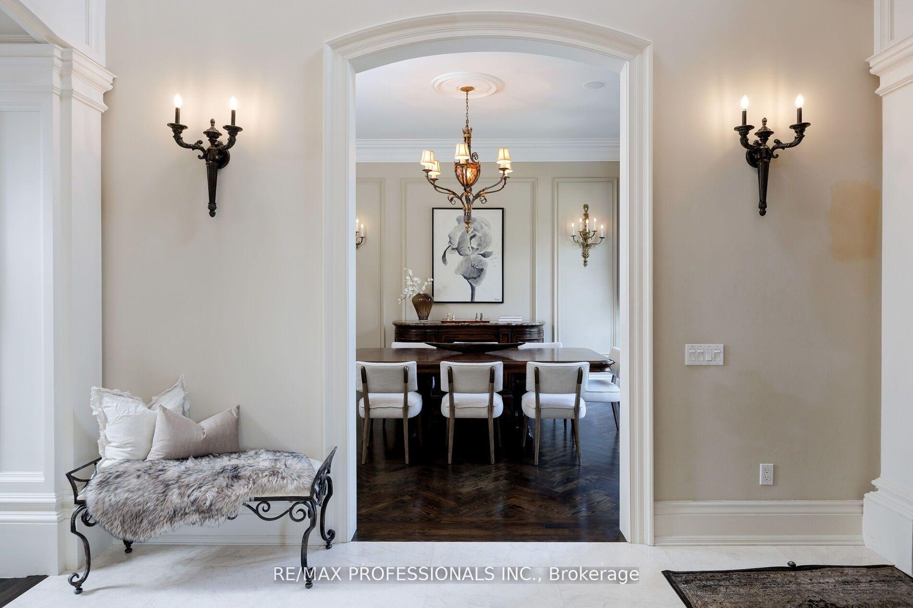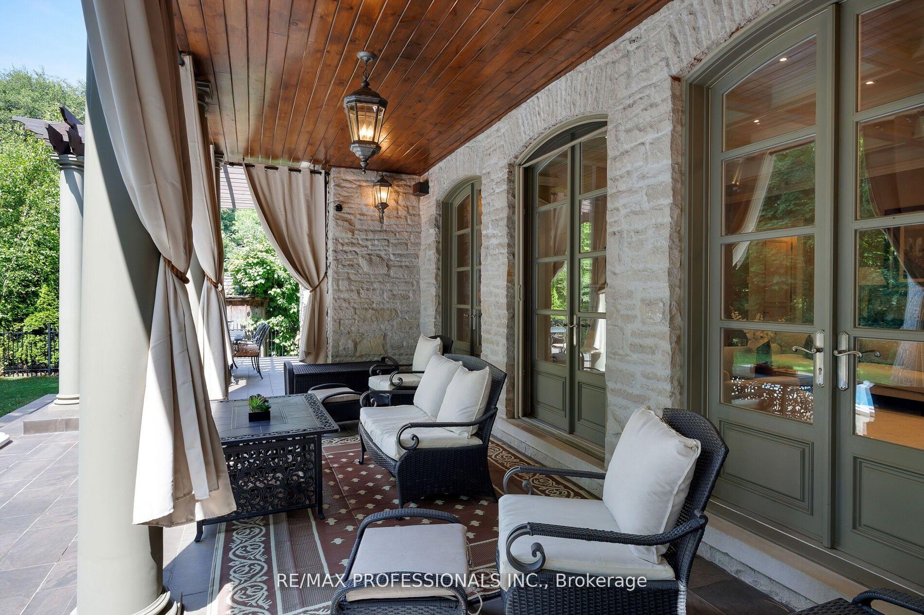 A truly no-expense-spared custom home on the Mimico Creek Ravine. Welcome to Fifty Six Ravenscrest Drive. With a commanding, solid stone exterior, atop a wide ravine lot, the curb appeal is undeniable. Enter an elegant interior - soaring double-height foyer, solid oak herringbone floors, and grand principal rooms. Stunning chef's gourmet kitchen. This home is designed with the future in mind, featuring two luxurious primary retreats, one on the main floor and one on the second level, along with well-appointed secondary bedrooms. The backyard is intimate & totally private, with ample ravine frontage, seven main-floor walkouts open to a gorgeous pillared terrace, and a Michael Phelps swim spa with a hot tub - perfect for low-maintenance, year-round use. Impressive French Country Chateau architecture. Priced well below replacement cost!