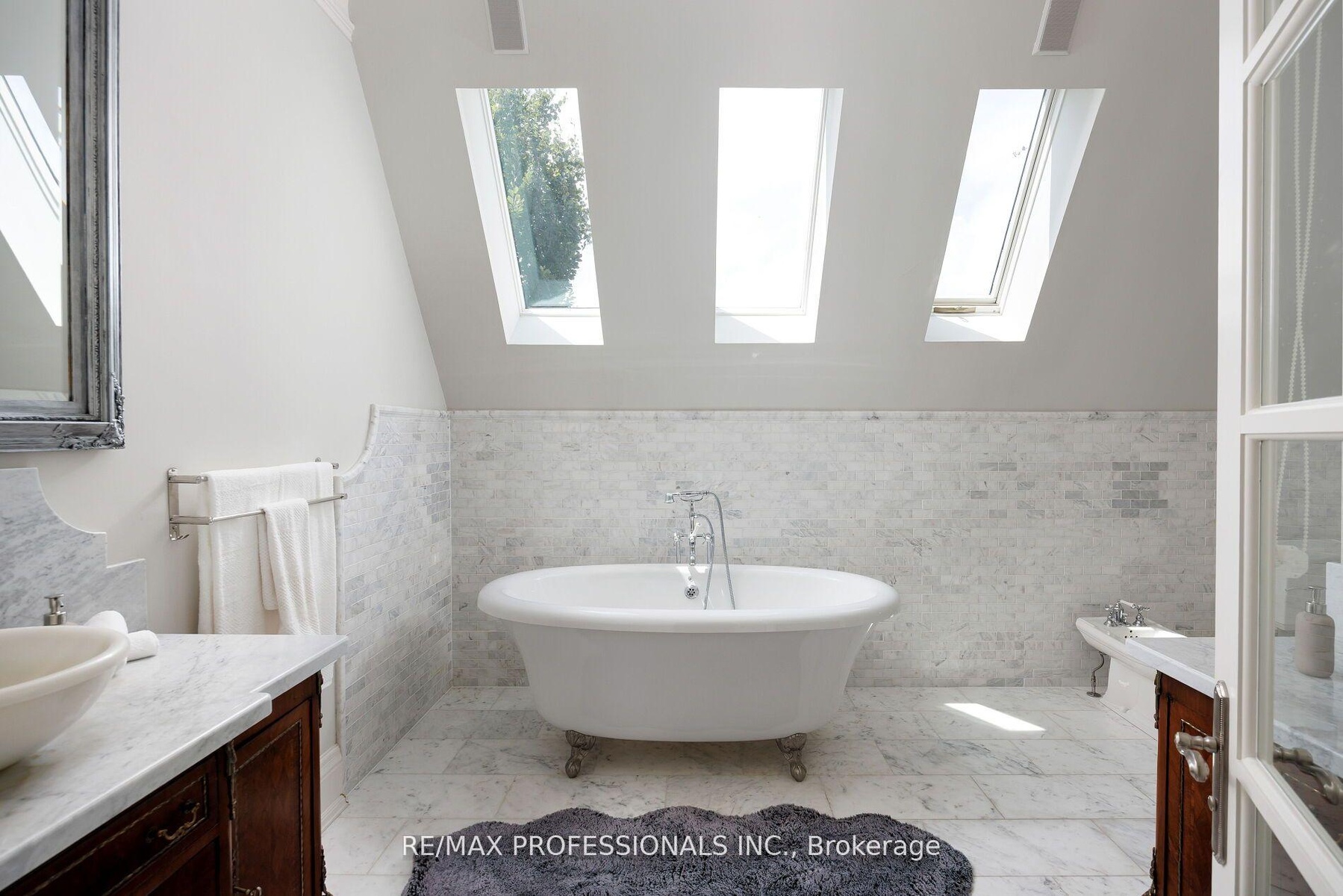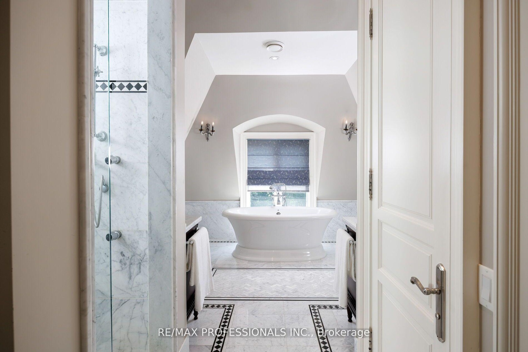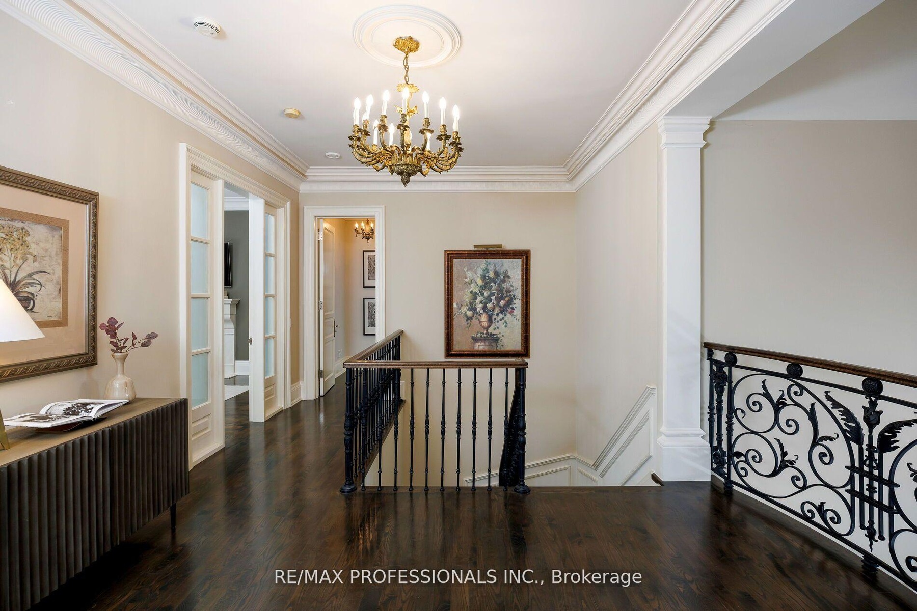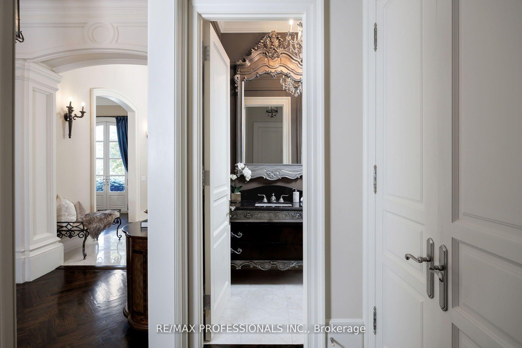 A truly no-expense-spared custom home on the Mimico Creek Ravine. Welcome to Fifty Six Ravenscrest Drive. With a commanding, solid stone exterior, atop a wide ravine lot, the curb appeal is undeniable. Enter an elegant interior - soaring double-height foyer, solid oak herringbone floors, and grand principal rooms. Stunning chef's gourmet kitchen. This home is designed with the future in mind, featuring two luxurious primary retreats, one on the main floor and one on the second level, along with well-appointed secondary bedrooms. The backyard is intimate & totally private, with ample ravine frontage, seven main-floor walkouts open to a gorgeous pillared terrace, and a Michael Phelps swim spa with a hot tub - perfect for low-maintenance, year-round use. Impressive French Country Chateau architecture. Priced well below replacement cost!