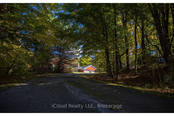 A rare opportunity to own a true country retreat in the heart of Campbellville. This 2432 sq ft bungalow rests on a private, beautifully treed 2.02-acre lot tucked behind a long, curved driveway surrounded by mature maples and evergreens. The setting is peaceful, secluded, and full of possibility-a place where mornings begin with birdsong and evenings end around a fire under the stars.Inside, the home offers warmth and character throughout. A large living room and an inviting family room each feature a wood-burning fireplace, creating the perfect spots to gather and unwind. The eat-in kitchen overlooks the natural landscape, while the formal dining room with hardwood floors is ideal for hosting family dinners or celebrations. Three spacious bedrooms keep everything on one level, offering comfort and simplicity. The unfinished walkout basement opens directly to the backyard, a blank canvas ready to become a lively games or recreation room, a cozy home theatre, or a private guest suite. A double garage and generous driveway provide parking for up to eight vehicles. What makes this property special is the feeling it gives you-space, privacy, and freedom to shape it into your vision. Whether you're looking to modernize, expand, or simply enjoy its timeless charm, this bungalow on two acres of treed beauty is a rare find in Campbellville.