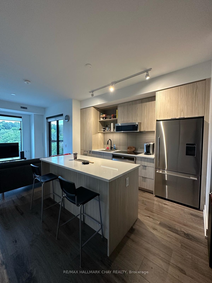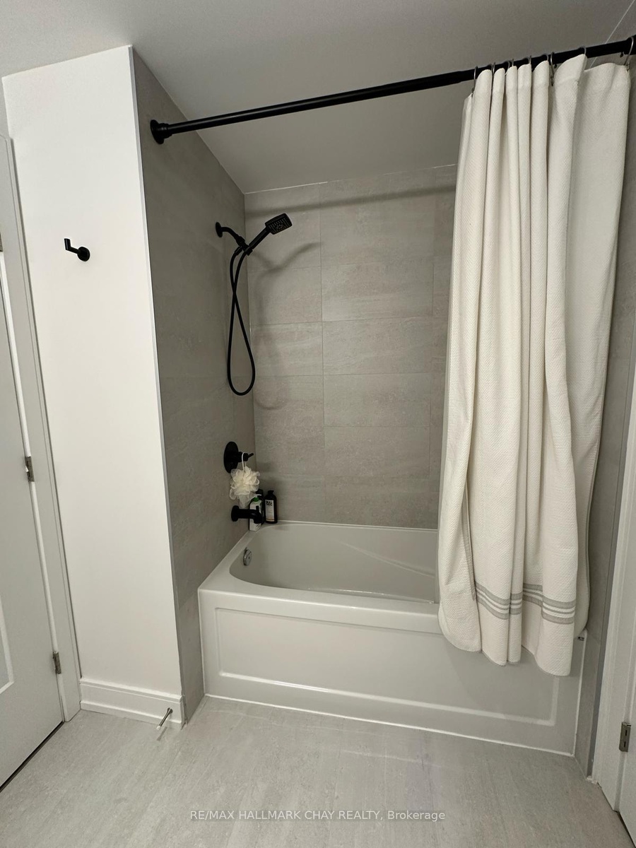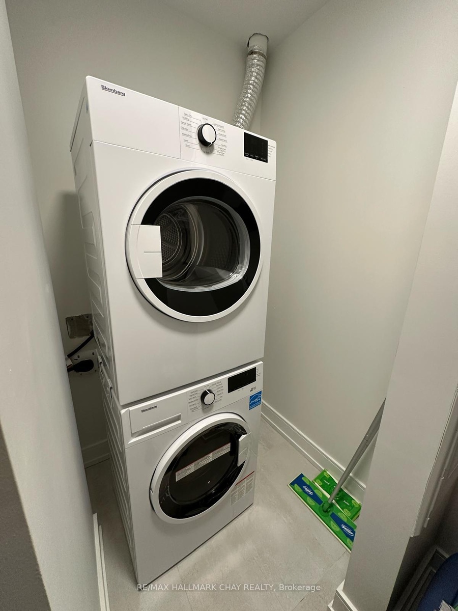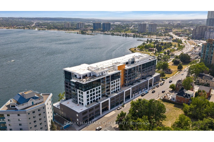 WELCOME to the nordic-inspired Lakhouse - Barrie's premiere waterfront condo community! This Aqua 2 model - one bedroom + den + 1 bath - 741 sq.ft. - is a bright waterview unit with tasteful neutral decor throughout and modern finishes. Lumon system balcony extends your living space outdoors - simply close the glass panels on cooler days, and open them when there is a warm breeze from the lake! Stunning views of Lake Simcoe's Kempenfelt Bay to the South and East. Includes many upgrades, 4 x s/s appliances, ensuite laundry, secured inground parking, exclusive locker. Amazing building amenities are second to none - concierge, party room with caterer's kitchen, meeting room, pet wash station, oversized whirlpool spa, sauna, fitness room, canoe/kayak/bike storage, two outdoor rooftop balconies! Steps to Barrie's vibrant downtown - shopping, services, fine & casual dining, entertainment, recreation. Easy access to key commuter routes, public transit, GO Train / Bus service. Steps to waterfront of Kempenfelt Bay - boardwalk, beaches, marina, Simcoe County trail system. Short drive to golf, skiing, hiking, biking and more - throughout Simcoe County! Appliances included as shown. Parking included (1). Tenant pays hydro. Available for occupancy on December 1st.