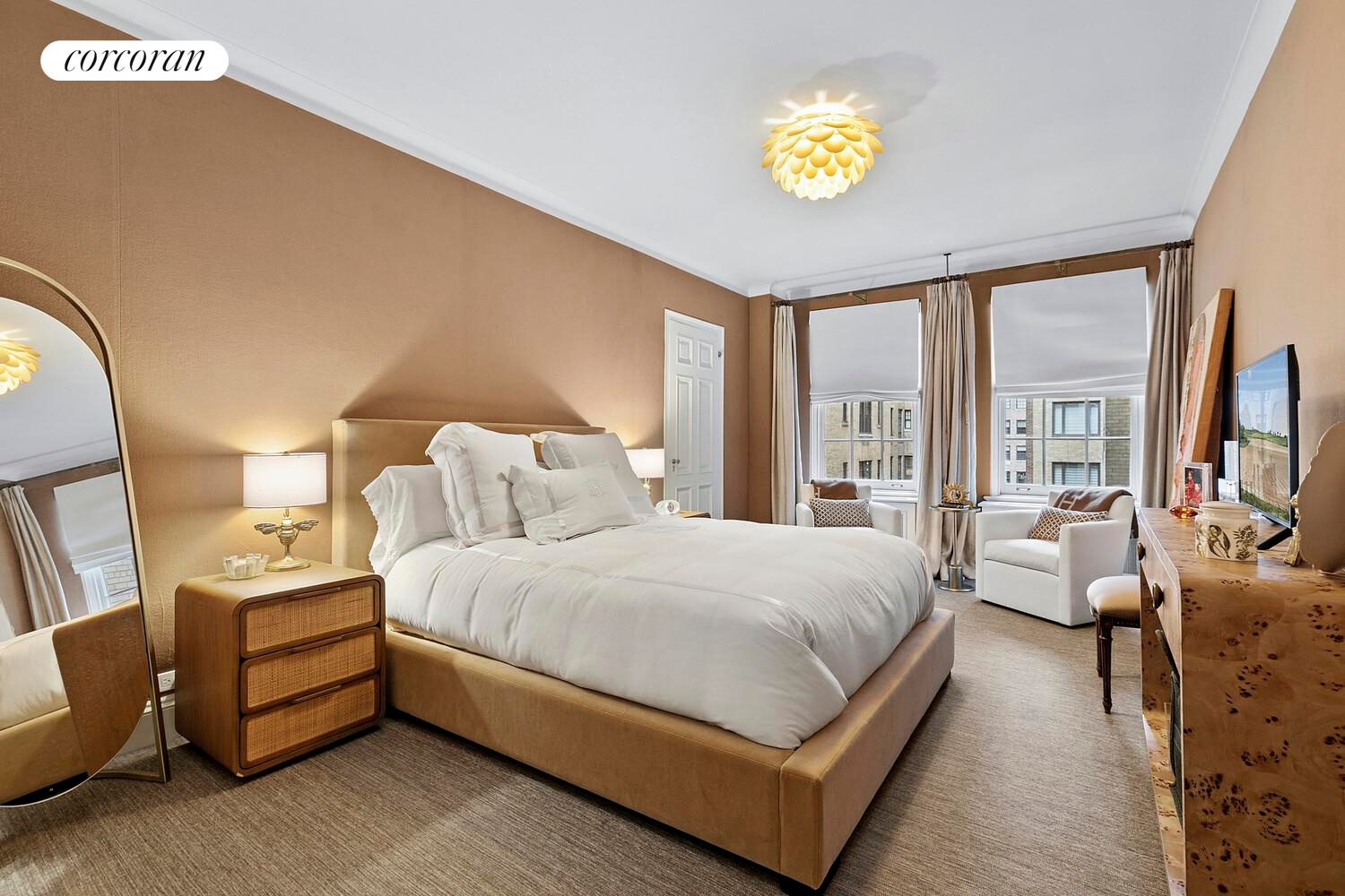 The spacious primary suite includes a custom walk-in closet and a luxurious, windowed Carrara marble bath with a walk-in rain shower and Waterworks fixtures. The second bedroom, also with custom cabinetry, has its own elegant marble bathroom with tub. Every inch of this home reflects exceptional craftsmanship and attention to detail.