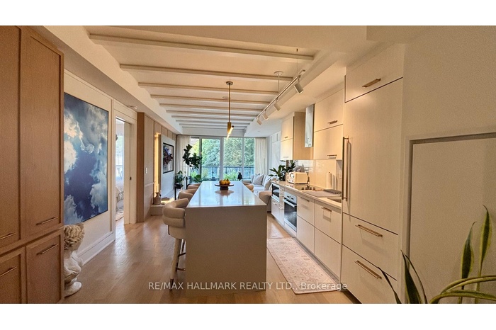 A Rare Designer Gem at Yonge & Lawrence. Designer renovated 2-bedroom, 2-bathroom residence in an exclusive boutique low-rise at 3018 Yonge Street, perfectly situated across from the lush greenery of Lawrence Park. This fully customized home showcases sophisticated, high-end finishes throughout - from the expansive kitchen with Miele appliances a large custom island and full pantry, to the elegant living area with hardwood flooring throughout and warm designer lighting and modern feature walls.Both bathrooms offer radiant heated floors, custom vanities, and bespoke mirrors for a spa-like experience. California closets in the suite have been thoughtfully redesigned with built-in shelving, drawers, and organizers for maximum functionality and style. Designer-selected light fixtures elevate each space, with lighting on dimmers to create the perfect mood at any time of day.The second bedroom includes a built-in Murphy bed, offering flexibility for guests or a stylish home office. Rarely offered, this suite includes three parking spaces , Yes 3 parking spots!, private storage room , and an additional locker room - an exceptional find in this coveted neighbourhood.Enjoy luxurious building amenities including a rooftop pool, jacuzzi, sauna, BBQ area, library, party room, bike storage, and 24-hour security. Experience boutique living at its finest - steps from Yonge Street conveniences, subway access, and the beauty of Lawrence Park.