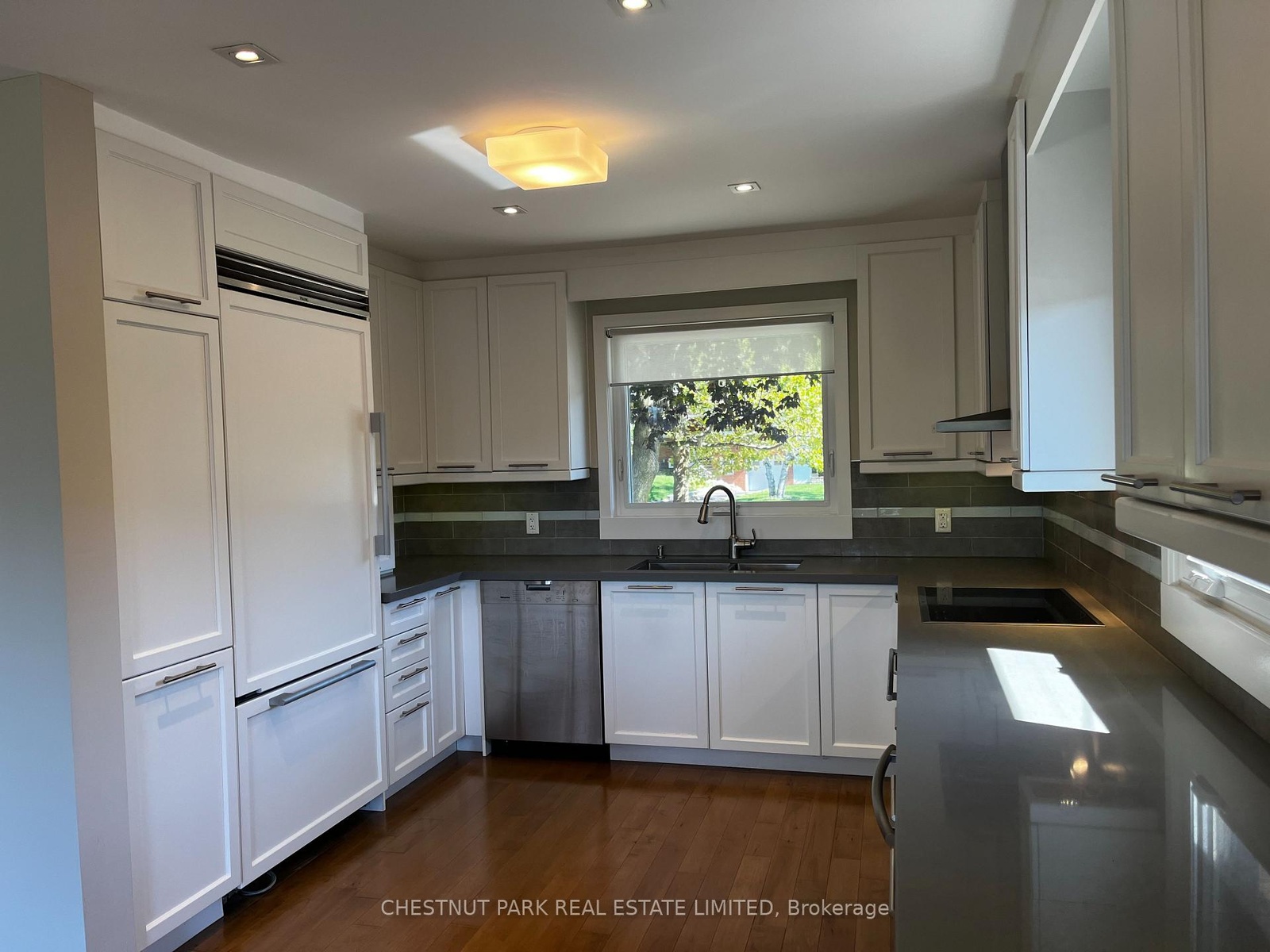 Renovated, sun-filled 3-bedroom, 2-bath raised bungalow offering over 1,500 sq. ft. of living space. Main level features hardwood floors, large windows, and a modern chef's kitchen with premium Viking, Miele, and AEG appliances. Walkout to a deck and spacious pie-shaped lot with outdoor storage shed. Lower level provides access to laundry, additional bathroom, and storage. Steps to TTC, Crosstown LRT, parks, schools, and trails, and just 15 minutes to downtown. Lower level is a separate apartment but can be leased with the full home if desired.