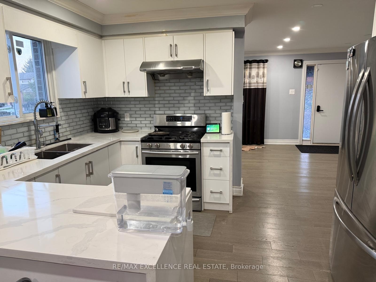 Beautifully Renovated Corner Lot with Generous Room Sizes! Modern and stylish, with pot lights and hardwood floors through out. Direct garage access from inside the home. The kitchen boasts quartz countertops, a breakfast area, and a walk-out to a private backyard. Upgraded bathrooms and staircase. Move-In Ready!