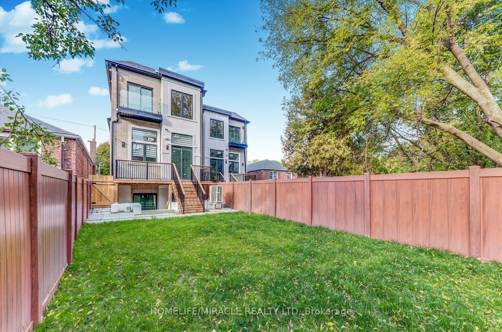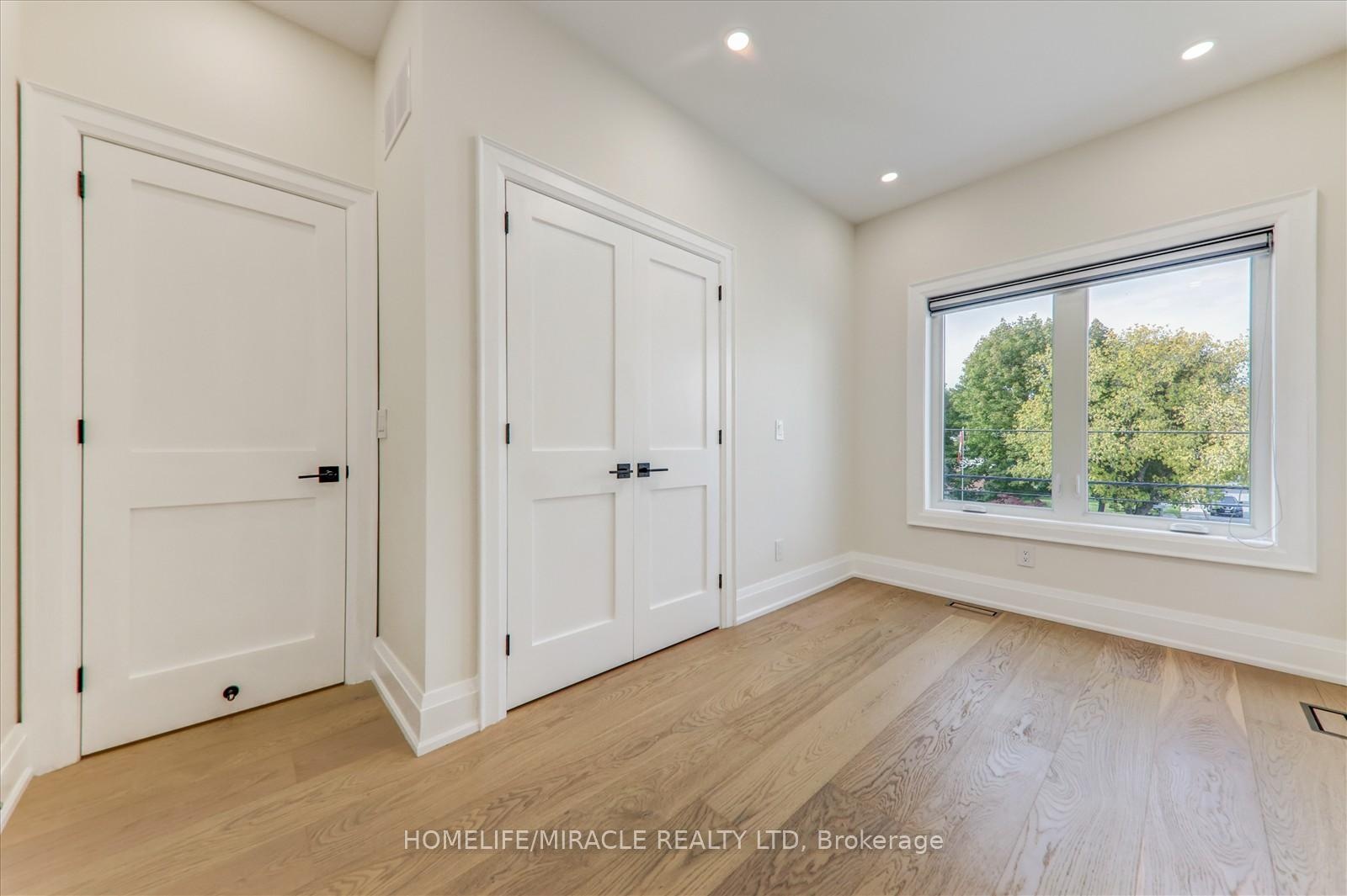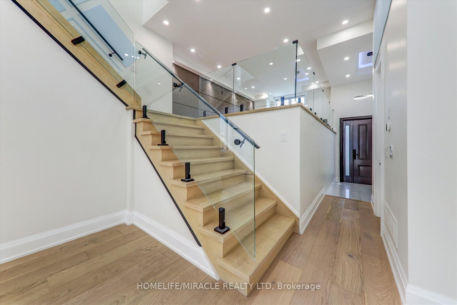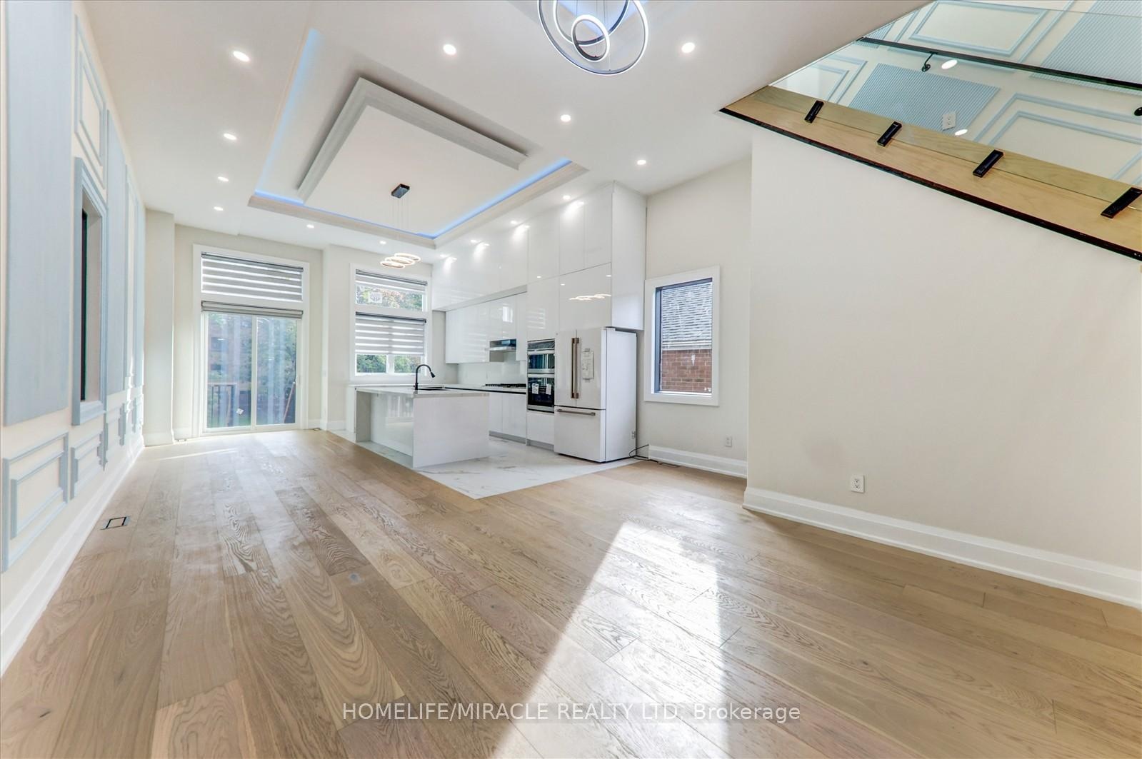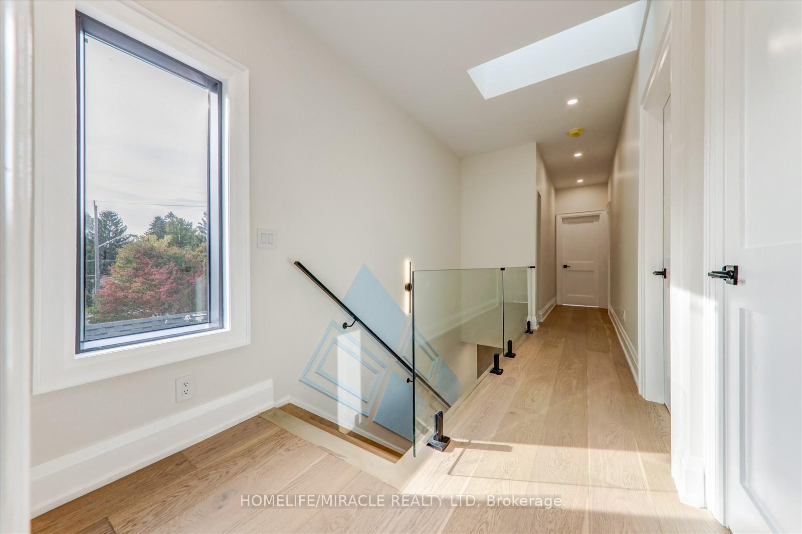 Welcome to 245 Ferris Rd, Toronto, an exquisite Parisian-inspired masterpiece that seamlessly blends classic European sophistication with modern luxury. This brand-new residence spans 2,163 square feet, offering elegantly curated spaces throughout. The light-filled rooms, paneled walls, and soaring ceilings create a serene ambiance, while the grand foyer and skylight further enhance its striking beauty. The main floor features an elegant family room, dining area, and a chef's kitchen equipped with top-of-the-line appliances, quartz countertops, and an island with integrated sinks overlooking the garden. The mezzanine floor offers a living room with a distinct accent wall. Upstairs, four expansive bedrooms, including a primary suite with a private walk-out and custom walk-in closet, provide luxurious retreats. The basement level, with a separate entrance, includes a finished legal unit with two walk-out bedrooms, 9-foot ceilings, a full bathroom, and an open-concept kitchen and living/dining area, ideal for an in-law suite or rental unit. Conveniently located near TTC and GO, this property offers walkable access to local amenities, cafes, shops, parks, and green spaces.