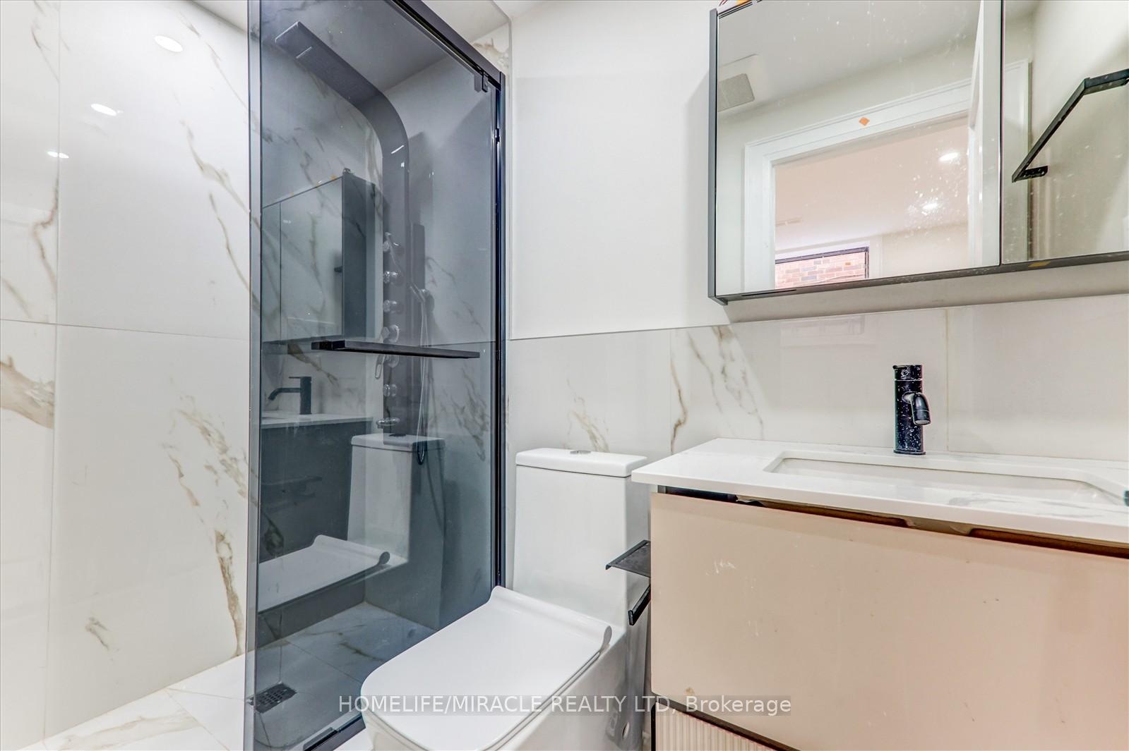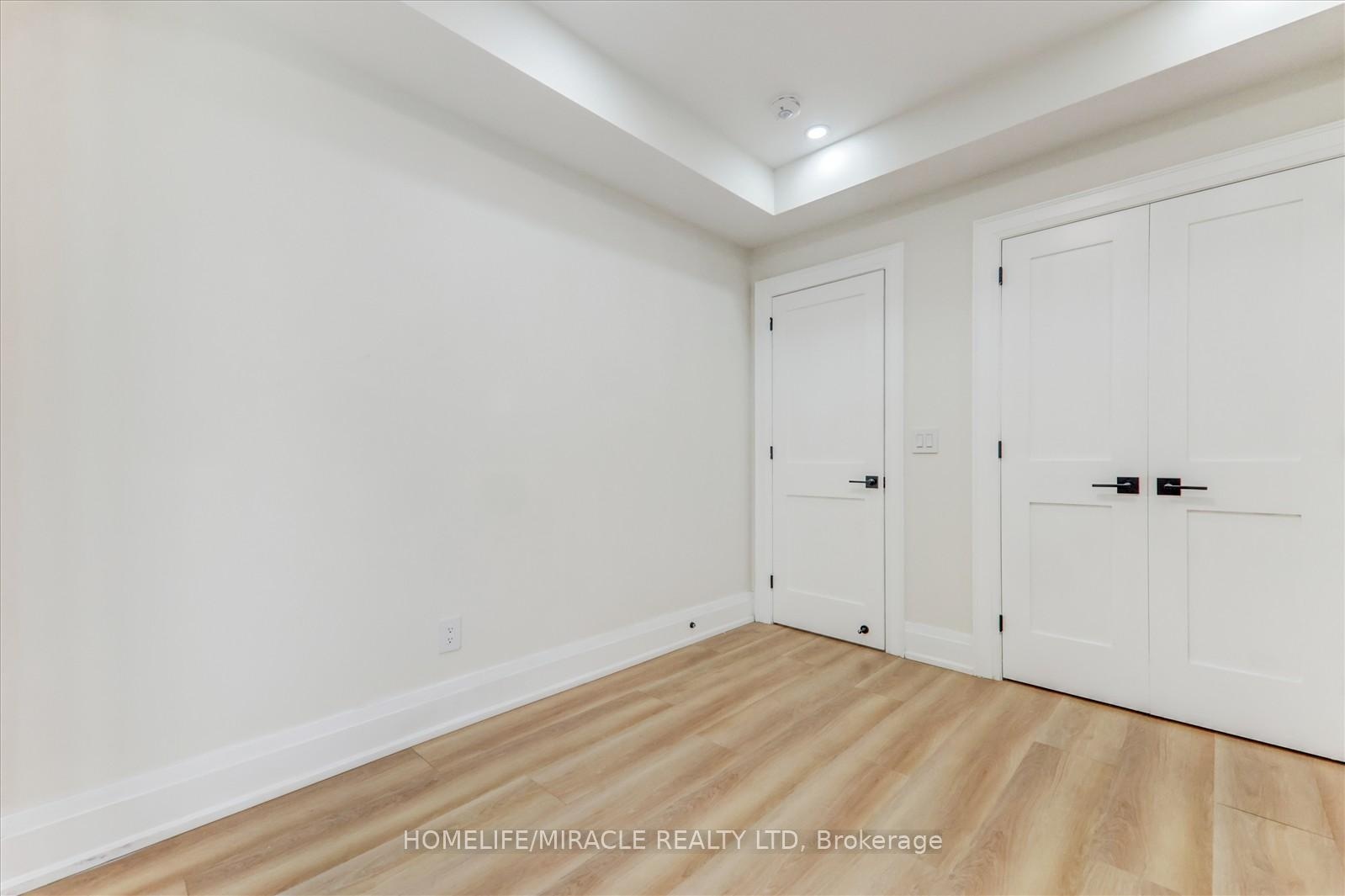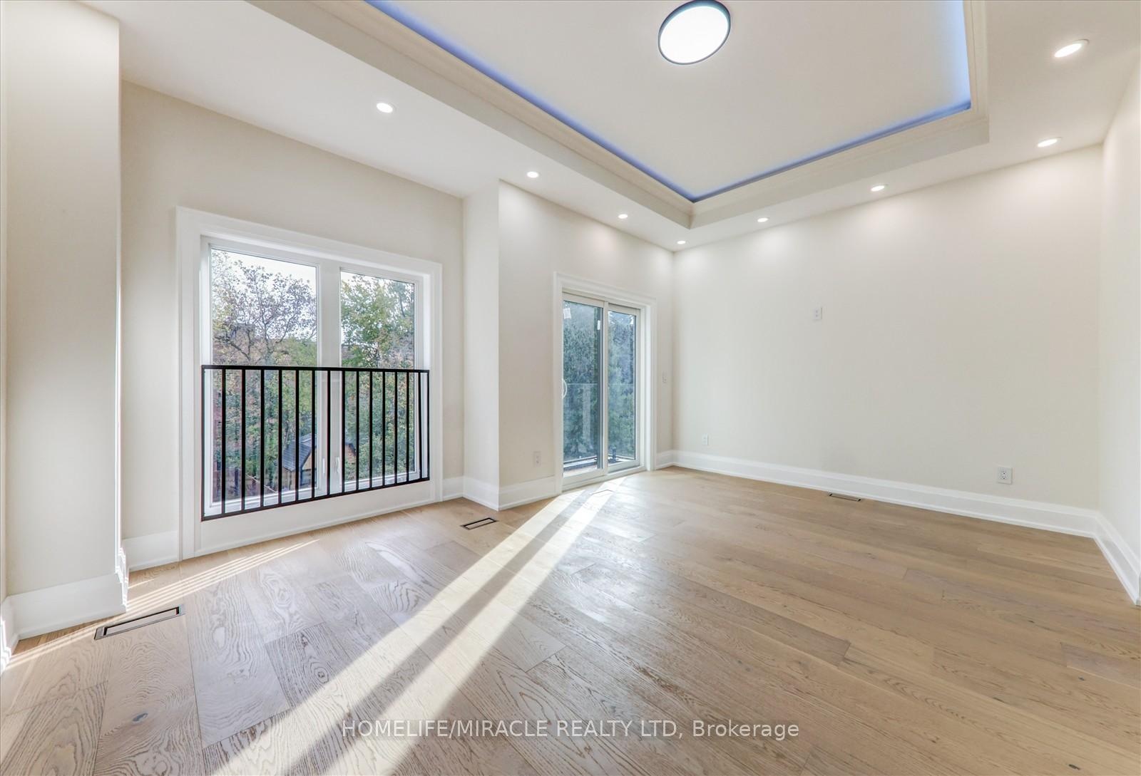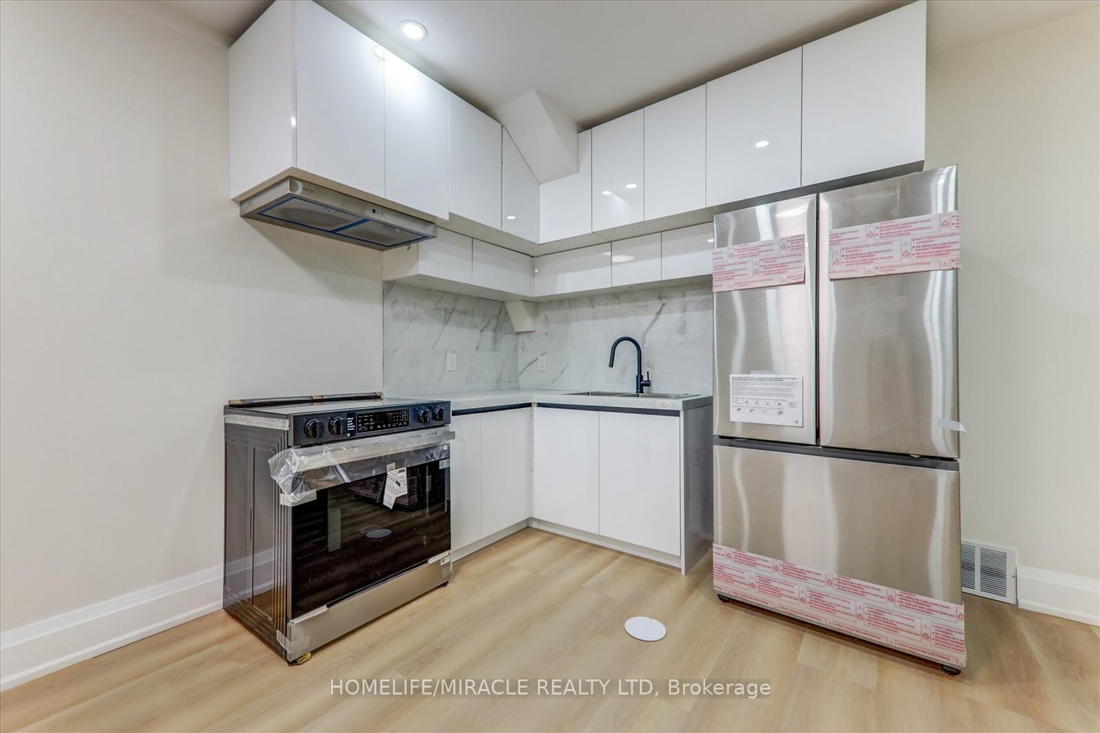 Welcome to 245 Ferris Rd, Toronto, an exquisite Parisian-inspired masterpiece that seamlessly blends classic European sophistication with modern luxury. This brand-new residence spans 2,163 square feet, offering elegantly curated spaces throughout. The light-filled rooms, paneled walls, and soaring ceilings create a serene ambiance, while the grand foyer and skylight further enhance its striking beauty. The main floor features an elegant family room, dining area, and a chef's kitchen equipped with top-of-the-line appliances, quartz countertops, and an island with integrated sinks overlooking the garden. The mezzanine floor offers a living room with a distinct accent wall. Upstairs, four expansive bedrooms, including a primary suite with a private walk-out and custom walk-in closet, provide luxurious retreats. The basement level, with a separate entrance, includes a finished legal unit with two walk-out bedrooms, 9-foot ceilings, a full bathroom, and an open-concept kitchen and living/dining area, ideal for an in-law suite or rental unit. Conveniently located near TTC and GO, this property offers walkable access to local amenities, cafes, shops, parks, and green spaces.