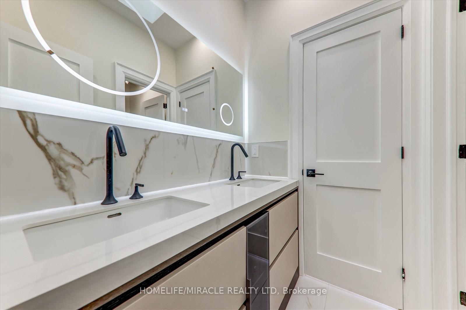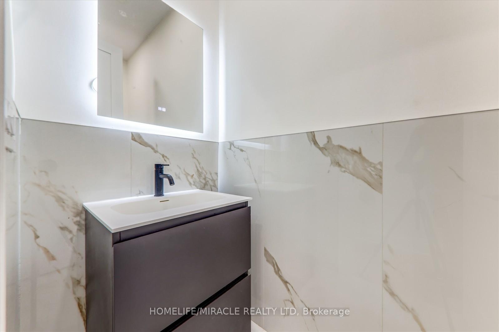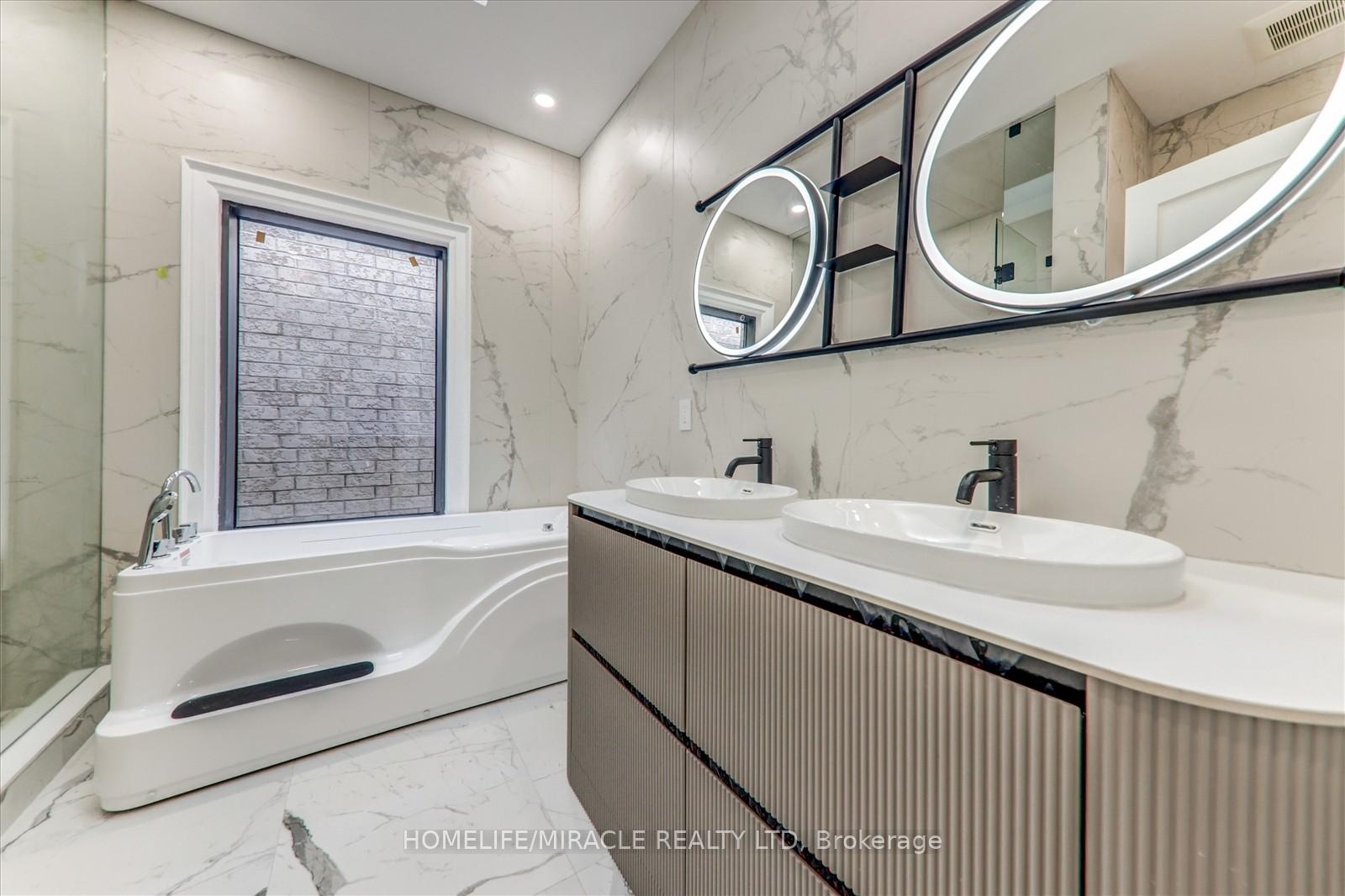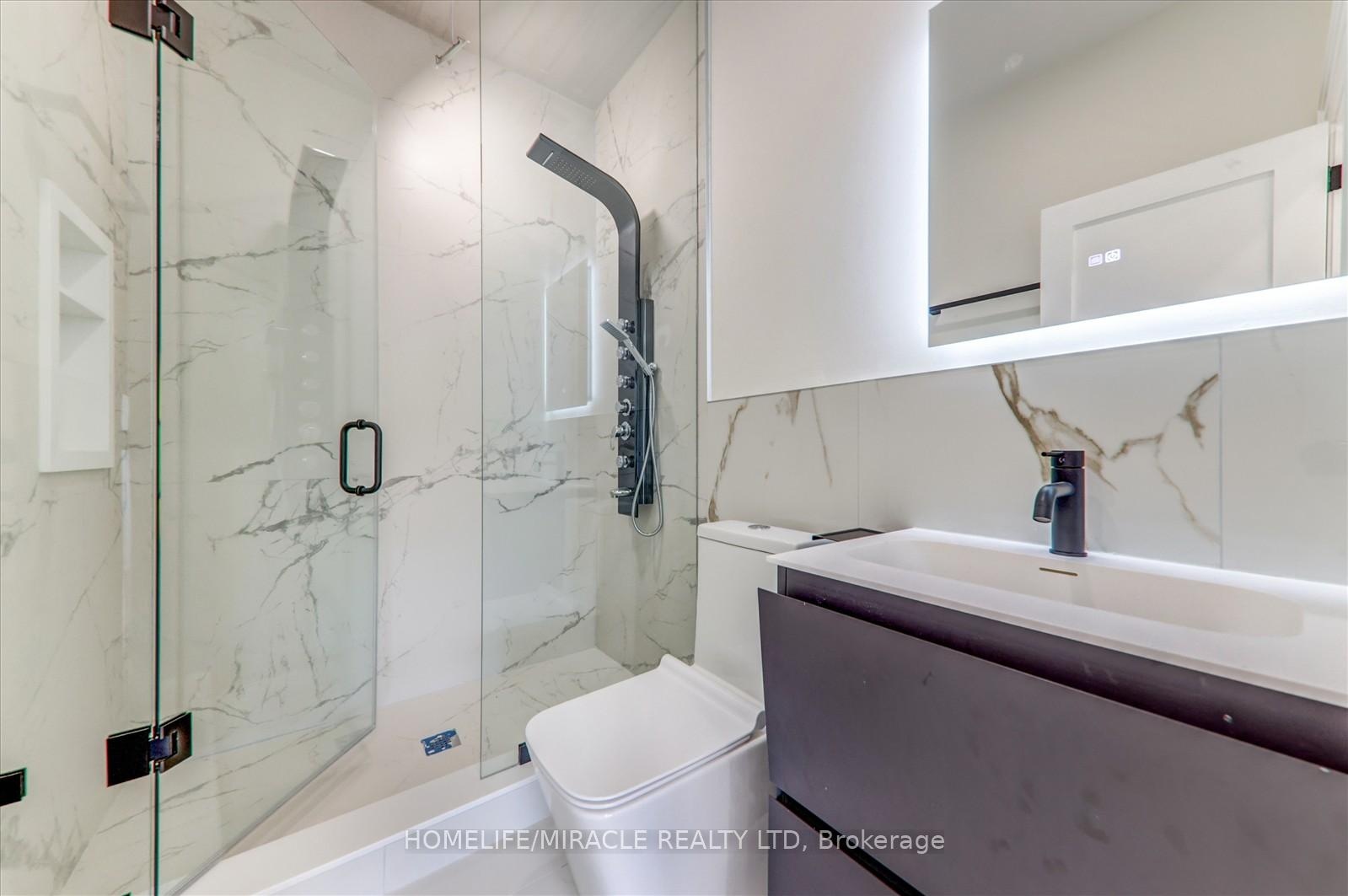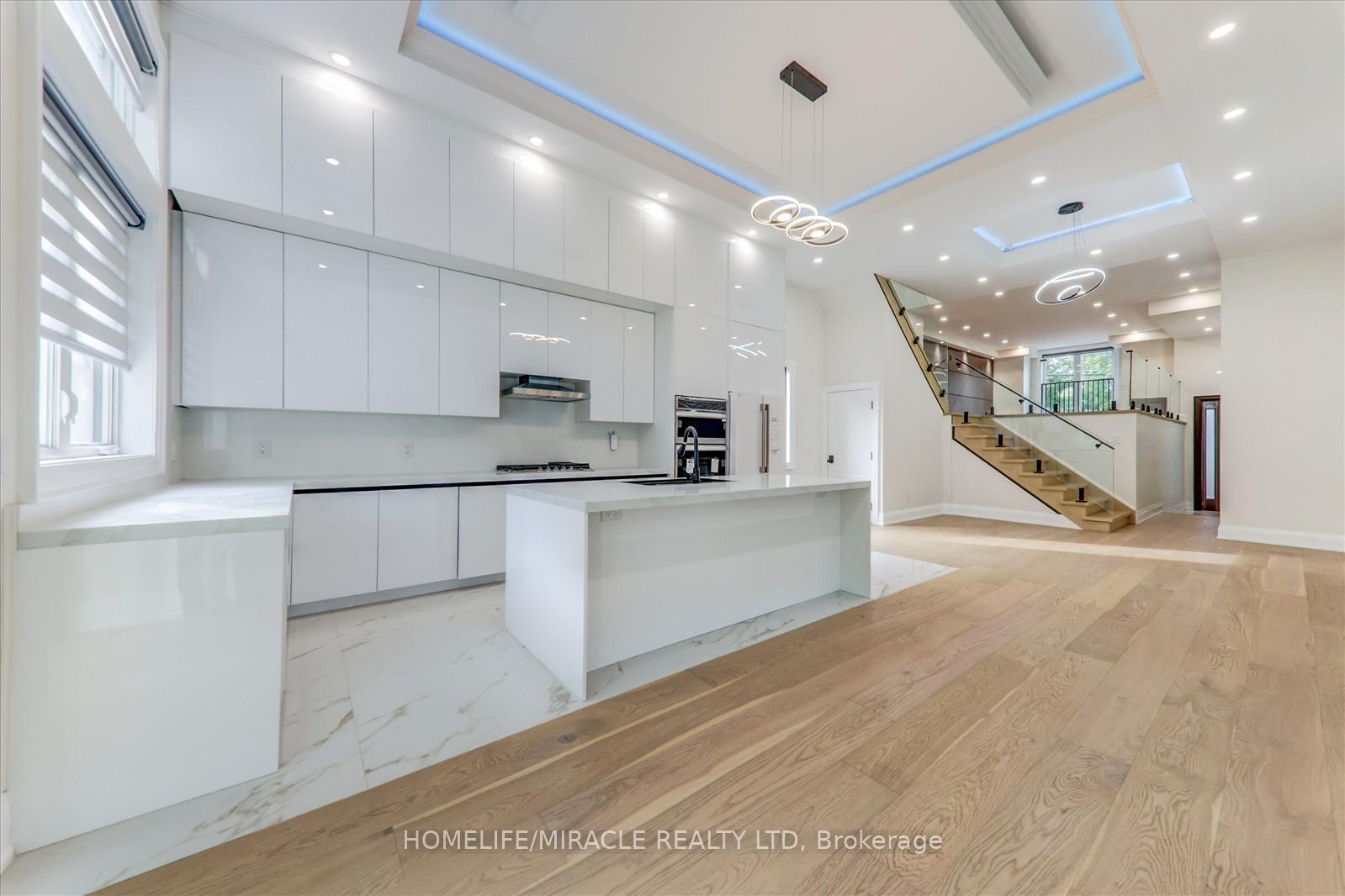 Welcome to 245 Ferris Rd, Toronto, an exquisite Parisian-inspired masterpiece that seamlessly blends classic European sophistication with modern luxury. This brand-new residence spans 2,163 square feet, offering elegantly curated spaces throughout. The light-filled rooms, paneled walls, and soaring ceilings create a serene ambiance, while the grand foyer and skylight further enhance its striking beauty. The main floor features an elegant family room, dining area, and a chef's kitchen equipped with top-of-the-line appliances, quartz countertops, and an island with integrated sinks overlooking the garden. The mezzanine floor offers a living room with a distinct accent wall. Upstairs, four expansive bedrooms, including a primary suite with a private walk-out and custom walk-in closet, provide luxurious retreats. The basement level, with a separate entrance, includes a finished legal unit with two walk-out bedrooms, 9-foot ceilings, a full bathroom, and an open-concept kitchen and living/dining area, ideal for an in-law suite or rental unit. Conveniently located near TTC and GO, this property offers walkable access to local amenities, cafes, shops, parks, and green spaces.