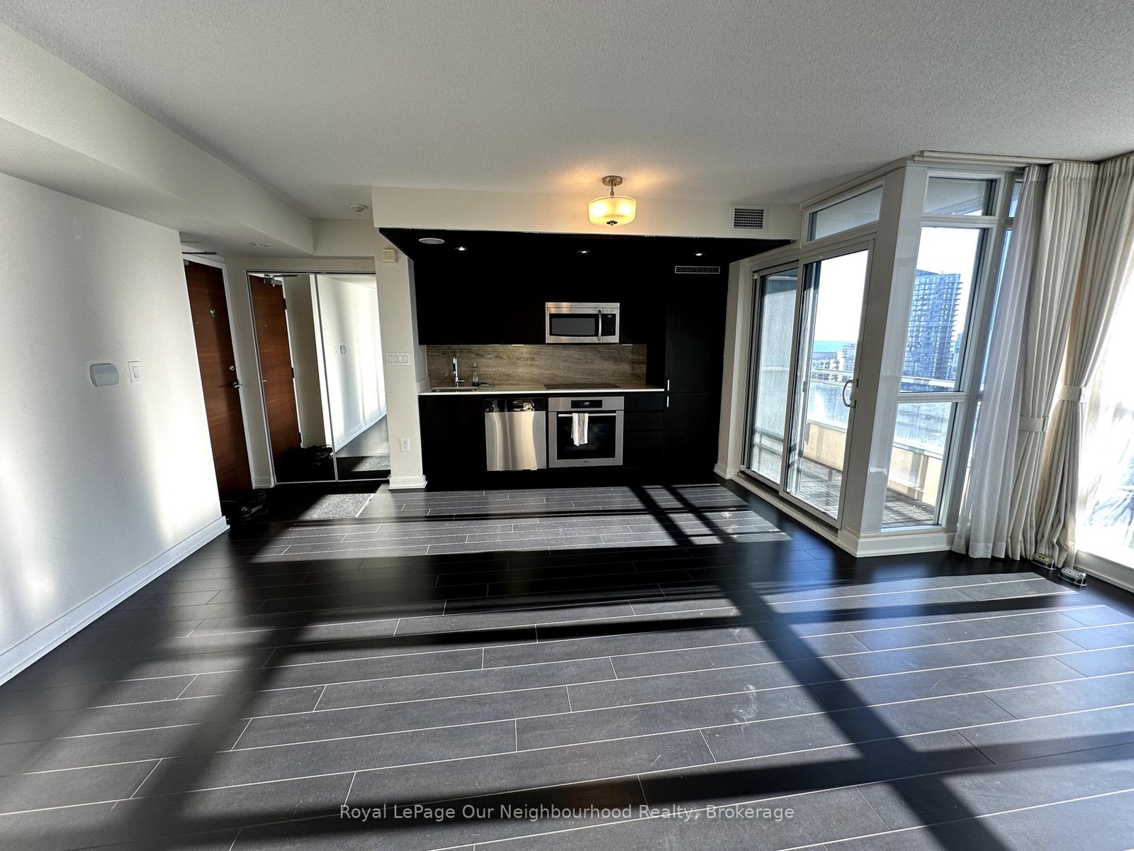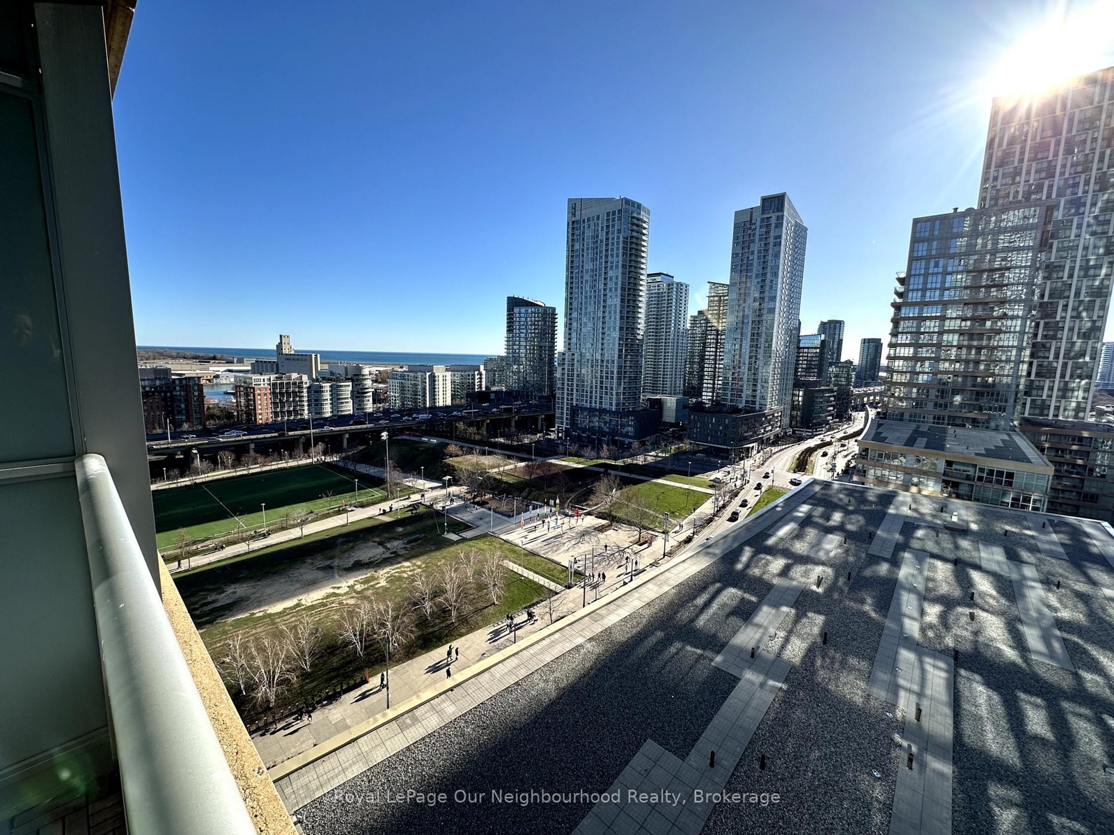 Feels much bigger than the square footage, great floor plan with no wasted space. View of the sunset to the west and the lake to the south, over the community centre field and park. Great light throughout the afternoon, and great proximity to the supermarket, community centre/park, and transit. Some pictures from previous listing to show light. Comes with Locker and Parking!