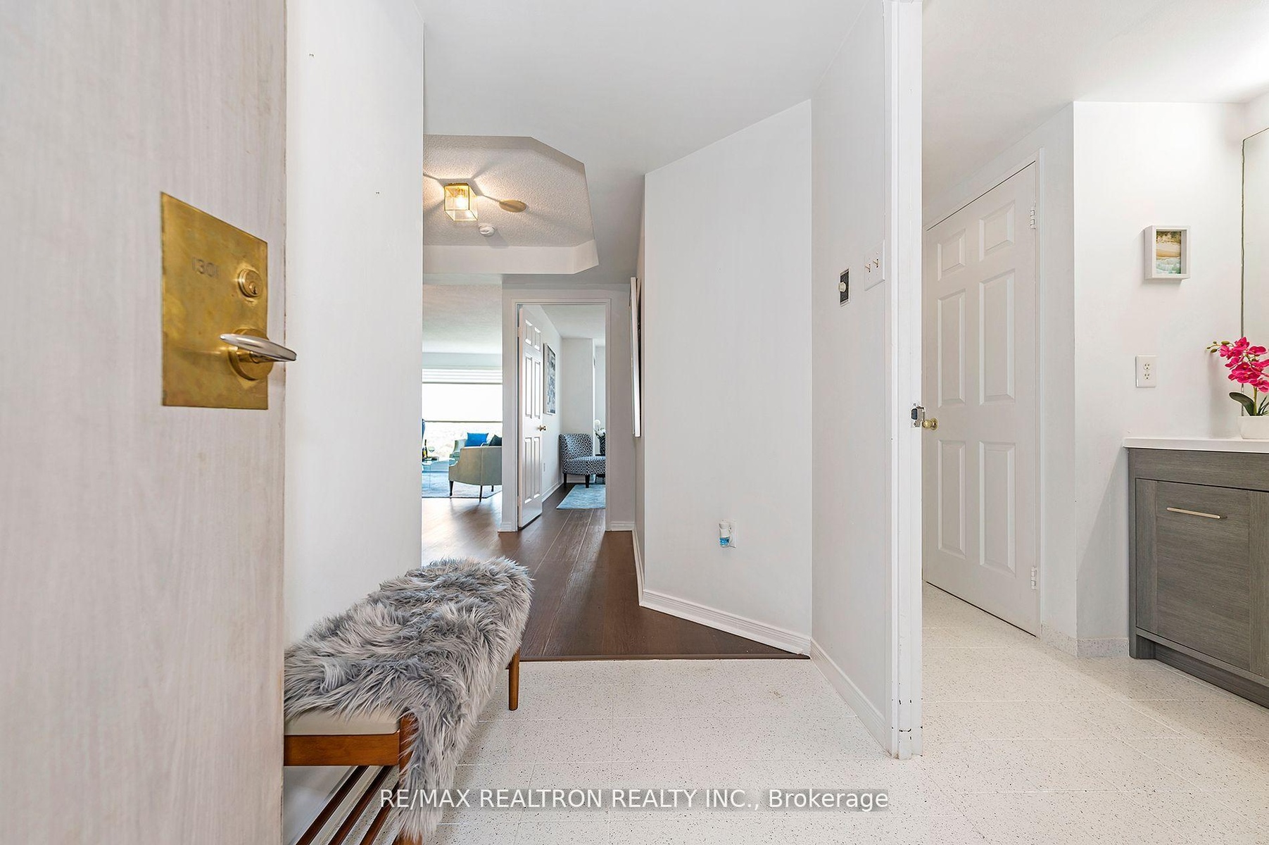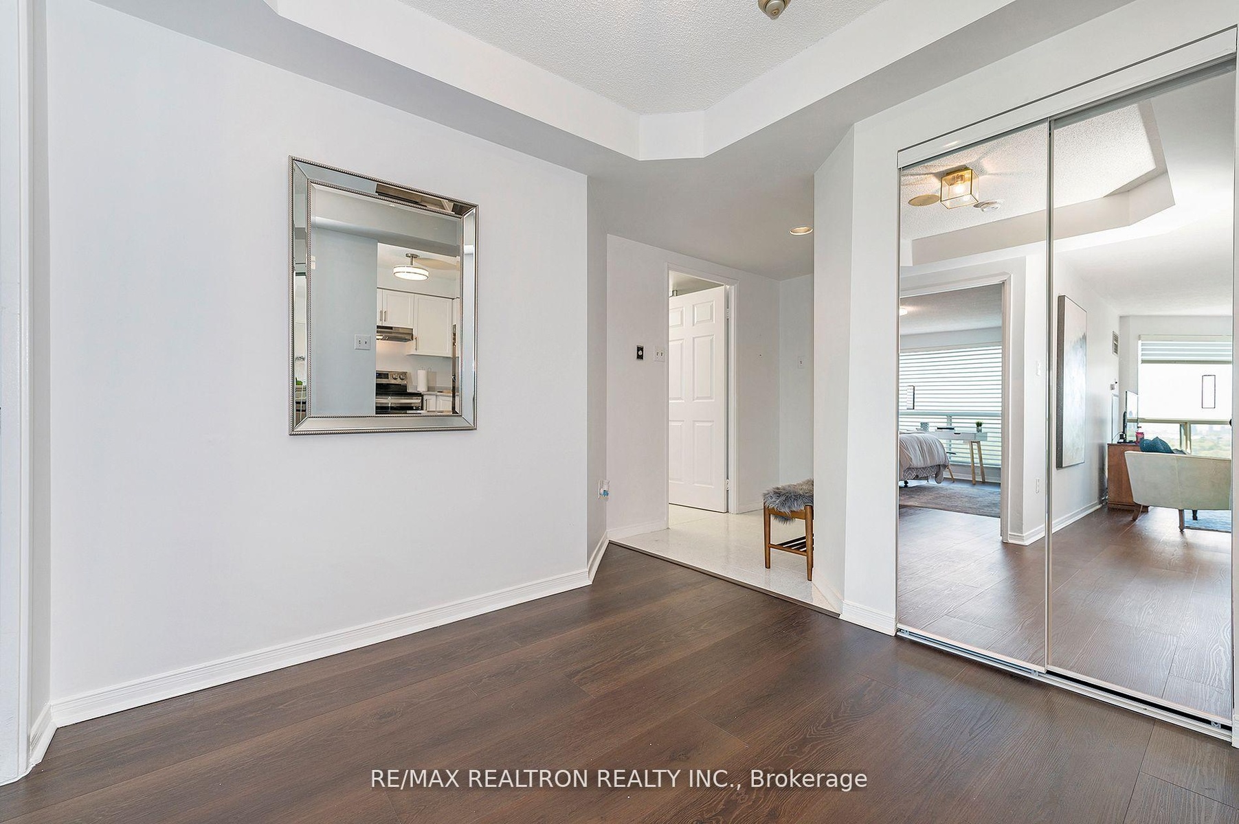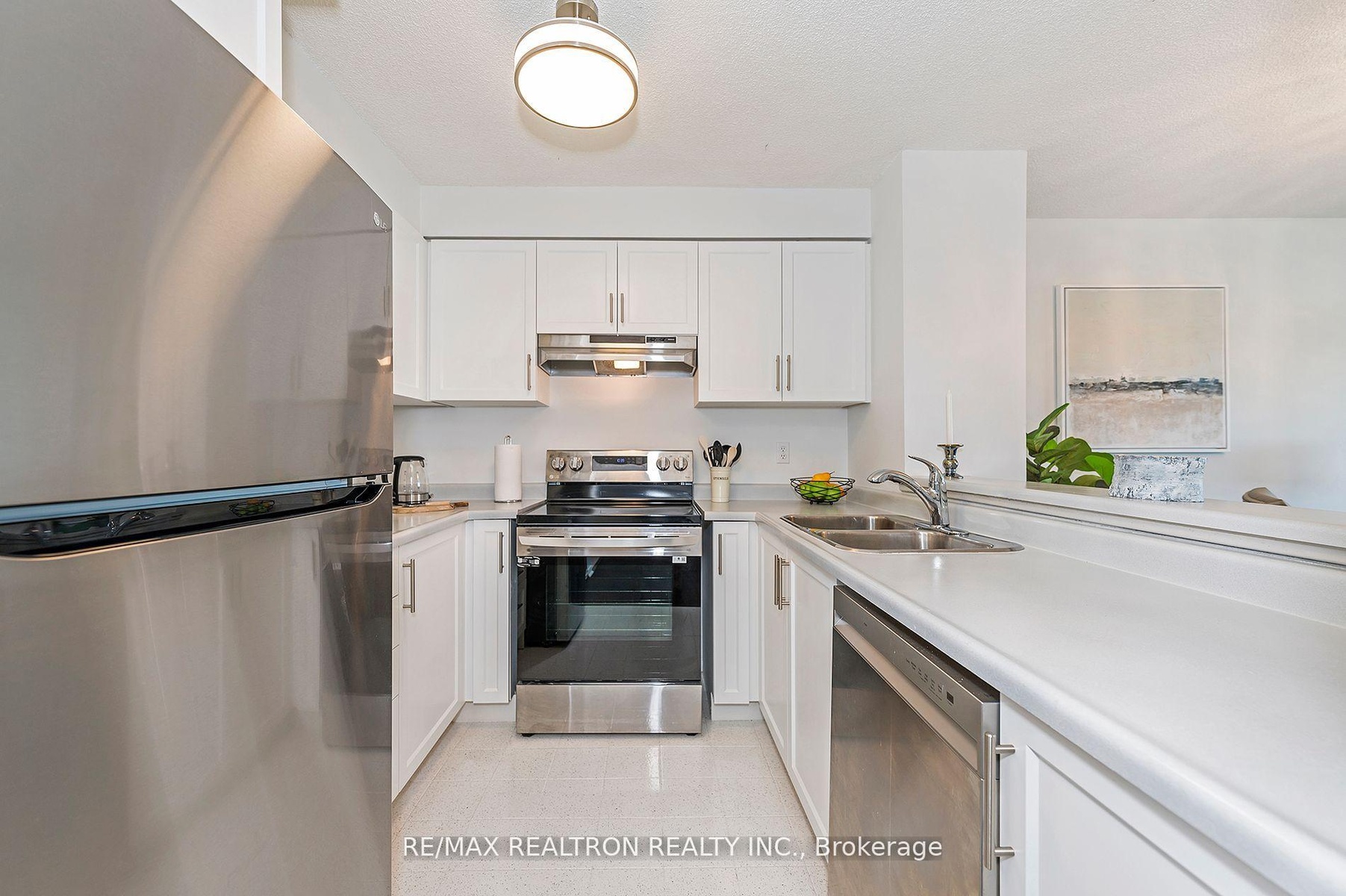 Welcome to Eagle Ridge Condominiums-a well-established community nestled in a safe, gated neighbourhood with 24-hour security. Peacefully set amid beautifully landscaped gardens, this serene enclave is perfectly situated across from South Common Mall, making daily errands a breeze. Commuters will appreciate the quick access to Highway 403, while others will love being just minutes from Credit Valley Hospital. We are proud to present one of the larger one-bedroom, one-bathroom suites, offering 793 sq ft of functional living space! This east-facing unit is ideally positioned to showcase sweeping views of nature, the CN Tower, and even a glimpse of the lake in the distance. Inside, the smart layout features: A welcoming foyer with front closet, Open-concept kitchen with ample cabinetry & breakfast bar, a Dedicated dining area & spacious living room perfect for entertaining, Bright, generously sized primary suite with his & her mirrored closets and a semi-ensuite bath with in-suite laundry. Highlights include: Expansive windows with stunning views & natural light, East exposure that helps keep the unit cool in the summer, Updated flooring, mirrored closet doors, modern hardware, Stainless steel appliances, frameless glass shower & updated vanity. Step outside your suite and enjoy the resort-style recreation center including: Lap pool & whirlpool, Saunas, Squash & basketball courts, Fully equipped gym, Library & lounge, Outdoor picnic & BBQ areas. This unit truly offers comfort, convenience, and community-everything you need for a balanced and fulfilling lifestyle!