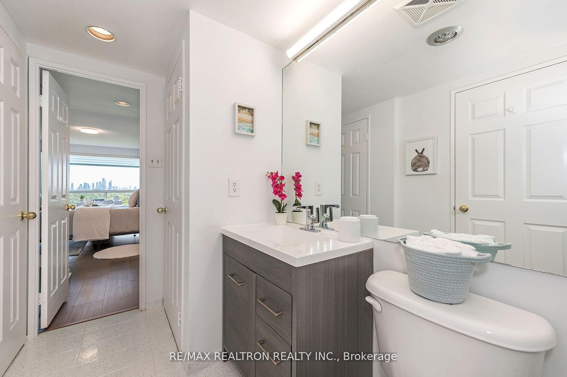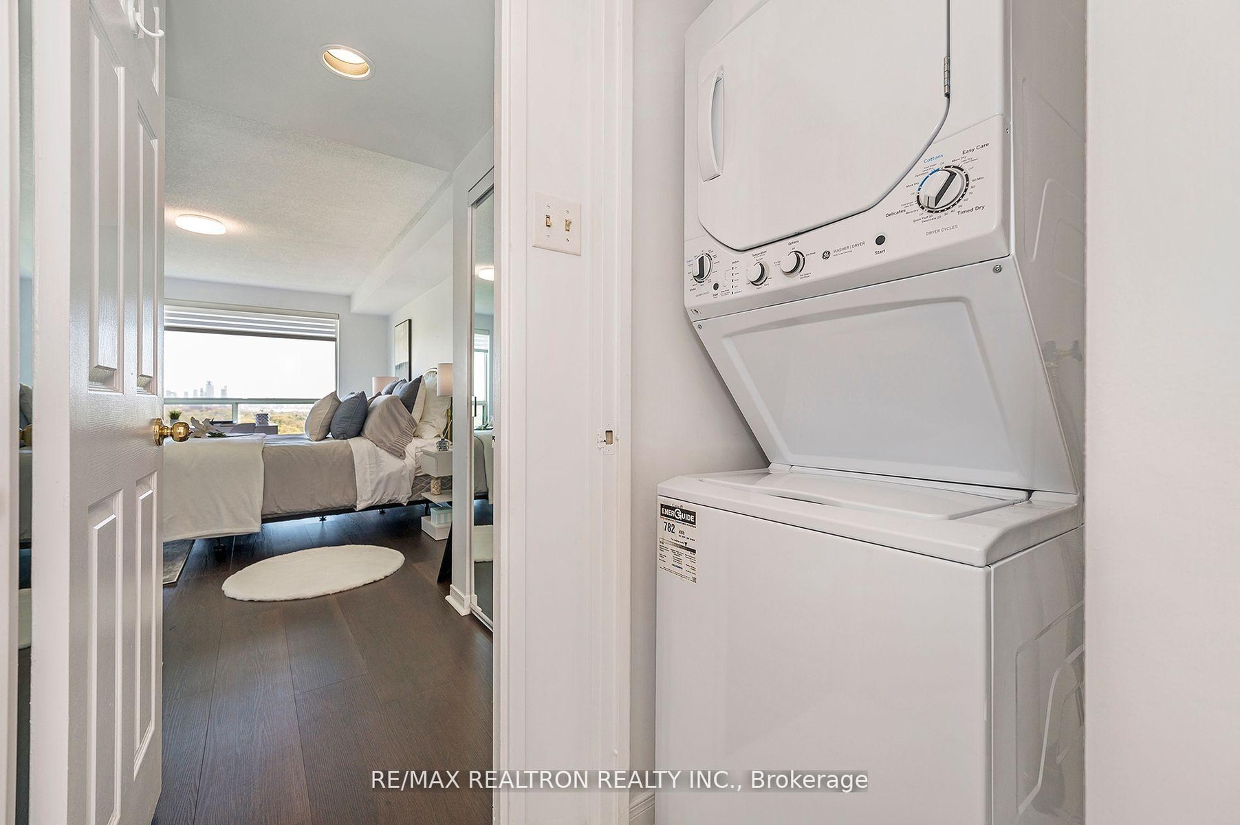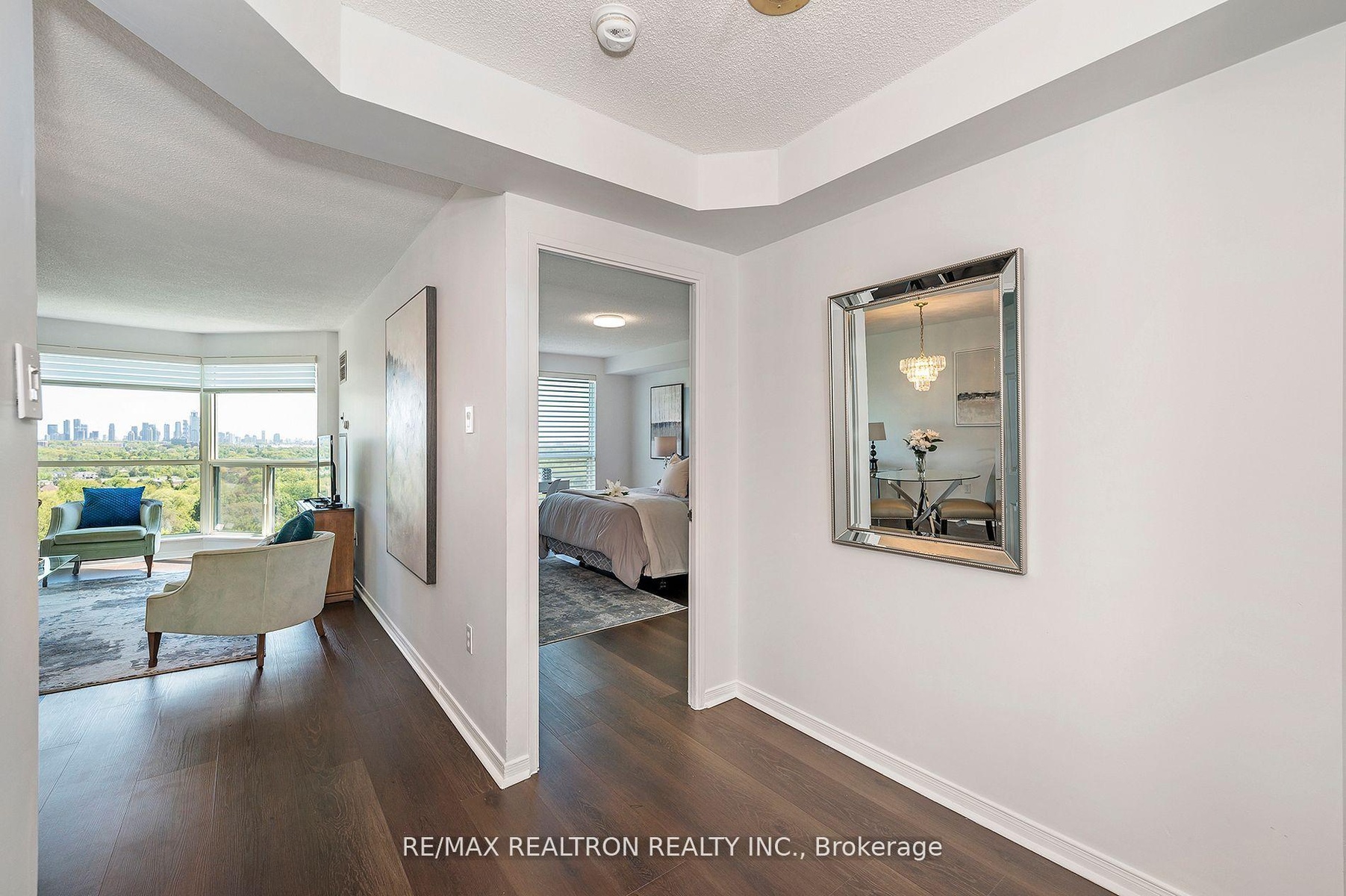 Welcome to Eagle Ridge Condominiums-a well-established community nestled in a safe, gated neighbourhood with 24-hour security. Peacefully set amid beautifully landscaped gardens, this serene enclave is perfectly situated across from South Common Mall, making daily errands a breeze. Commuters will appreciate the quick access to Highway 403, while others will love being just minutes from Credit Valley Hospital. We are proud to present one of the larger one-bedroom, one-bathroom suites, offering 793 sq ft of functional living space! This east-facing unit is ideally positioned to showcase sweeping views of nature, the CN Tower, and even a glimpse of the lake in the distance. Inside, the smart layout features: A welcoming foyer with front closet, Open-concept kitchen with ample cabinetry & breakfast bar, a Dedicated dining area & spacious living room perfect for entertaining, Bright, generously sized primary suite with his & her mirrored closets and a semi-ensuite bath with in-suite laundry. Highlights include: Expansive windows with stunning views & natural light, East exposure that helps keep the unit cool in the summer, Updated flooring, mirrored closet doors, modern hardware, Stainless steel appliances, frameless glass shower & updated vanity. Step outside your suite and enjoy the resort-style recreation center including: Lap pool & whirlpool, Saunas, Squash & basketball courts, Fully equipped gym, Library & lounge, Outdoor picnic & BBQ areas. This unit truly offers comfort, convenience, and community-everything you need for a balanced and fulfilling lifestyle!