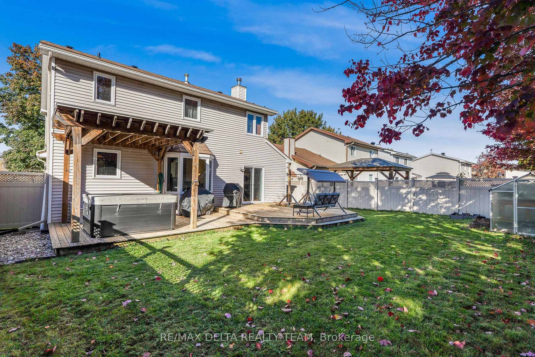 Beautiful 4-bedroom family home with a double car garage. This spacious layout offers a formal living and dining room, a sunken family room with hardwood flooring and wood burning fireplace, a bright eating area off the kitchen, and main-floor laundry. The partly finished basement provides extra living or storage space. Upstairs features 4 generous bedrooms, including a primary suite with walk-in closet and ensuite bath. No popcorn ceilings anywhere. Recent upgrades include: renovated kitchen, updated bathrooms, fresh paint throughout, and new carpet on stairs. Additional features: PVC fencing, pergola with hot tub, green house, lifetime metal roof with gutter shield. Walking distance to Ray Friel Centre, schools, shopping, restaurants, and easy access to Hwy 174. 24hr Irrevocable