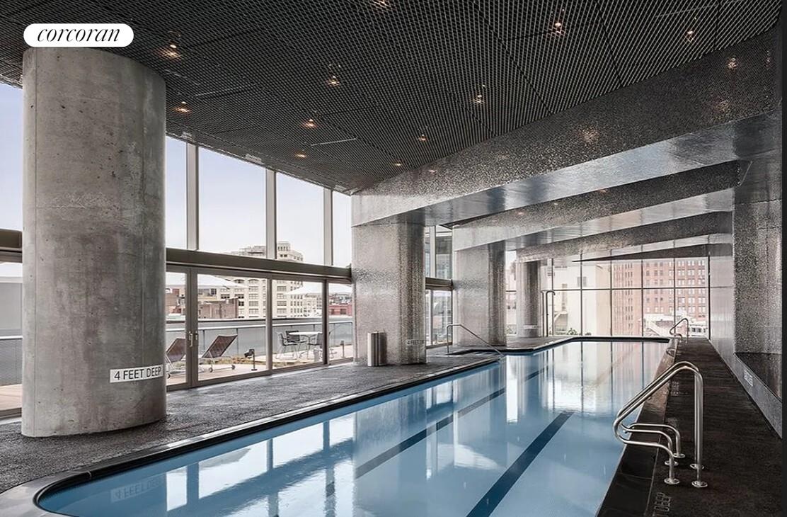 One of the most exciting and fascinating luxury condominiums in Manhattan, 56 Leonard was designed by architects Herzog & de Meuron, and reflects a unique design. There are 145 unique residences, all with outdoor space, abundant light and breathtaking views of the cityscape, rivers, bridges and beyond. This full service building has a live-in super, 24/7 doorman, and concierge, and has 17,000 square feet of amenities, including an indoor 75' lap pool that leads to a sundeck, a steam room and sauna, a fully equipped gym-with a view, a screening room, a lounge, a dining room and a playroom, as well as an on-site parking garage.