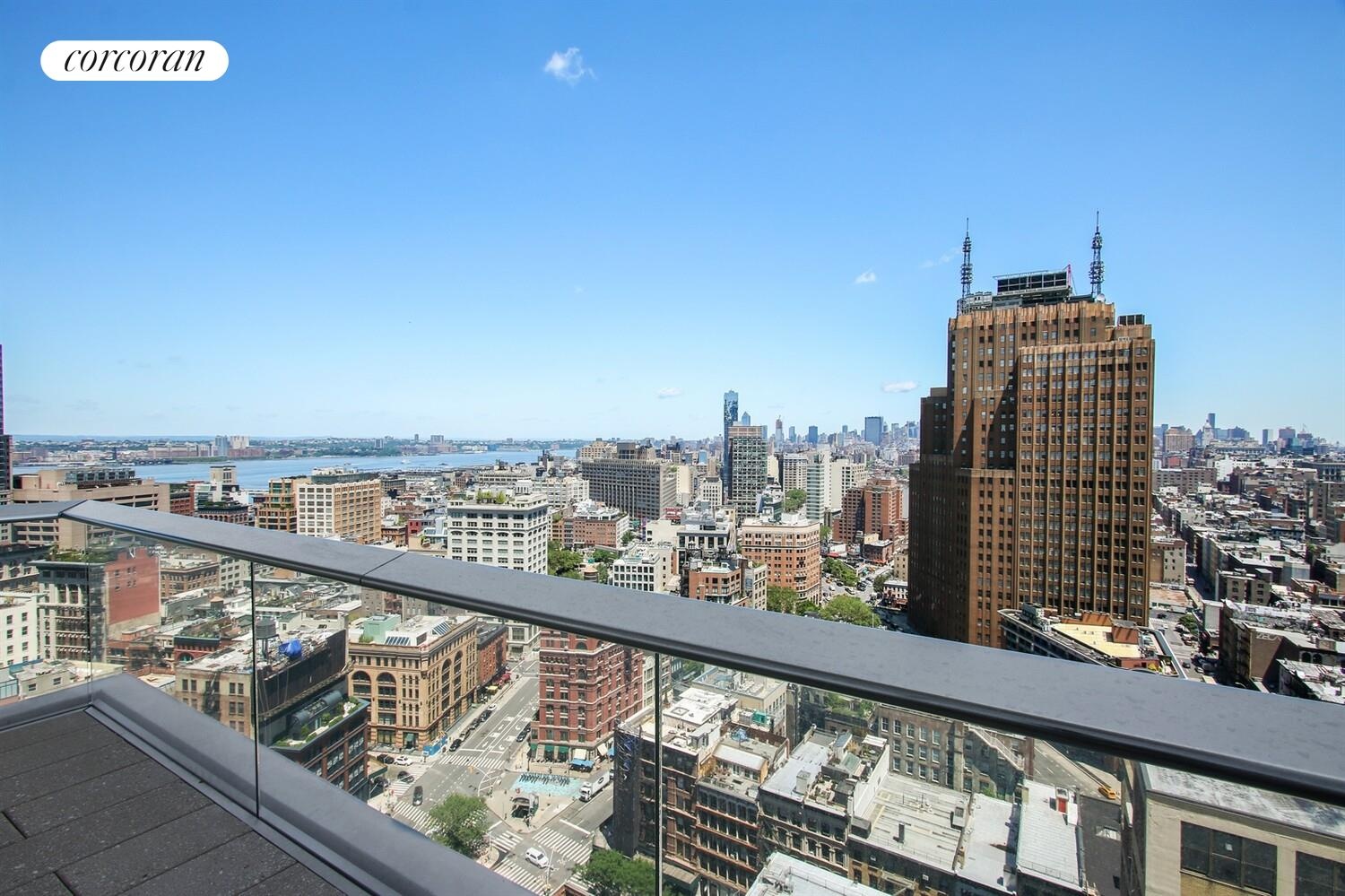 Views, views, and more views! This is a rare opportunity to reside in this luxurious, huge, sunny 3 bedroom, 3.5 bathroom high floor corner apartment in the much revered 56 Leonard! Be wowed by spectacular views of the Hudson River and New York City's most beautiful skyline from floor to ceiling windows throughout the entire apartment as well as from two balconies.