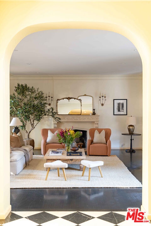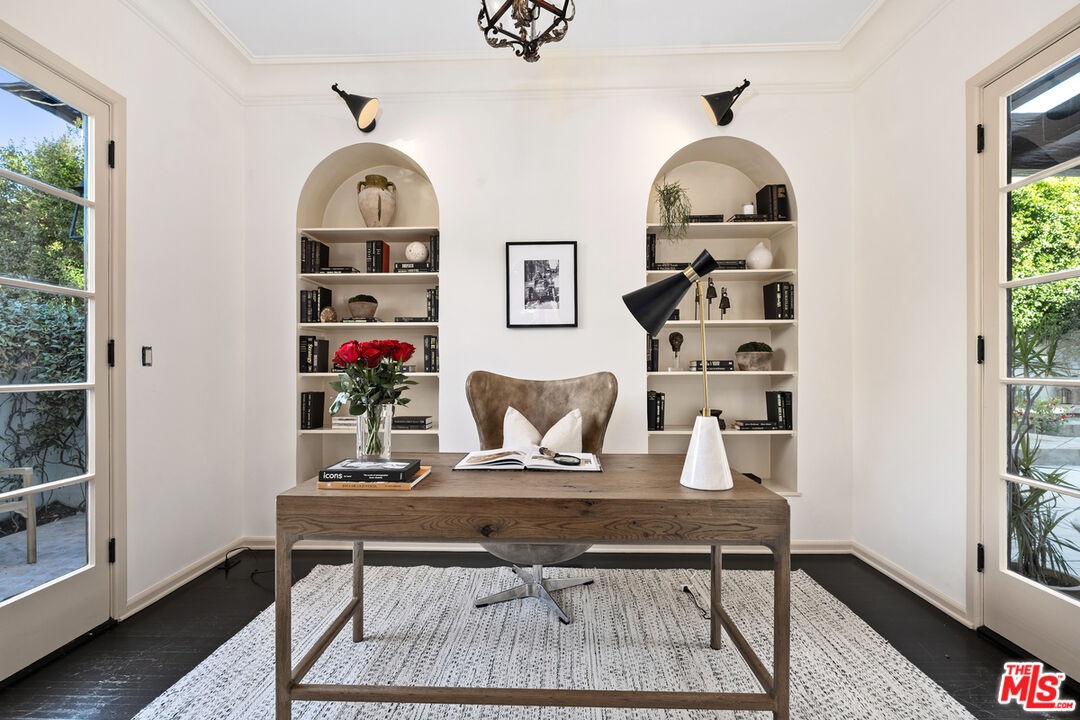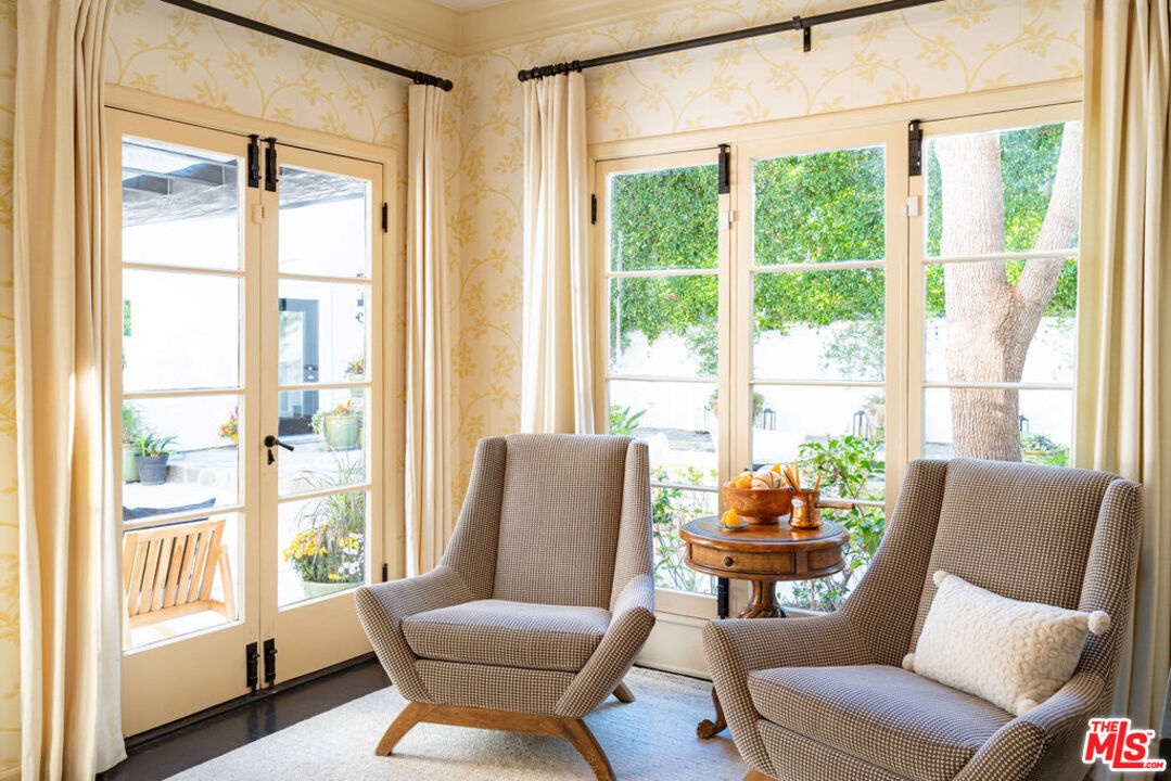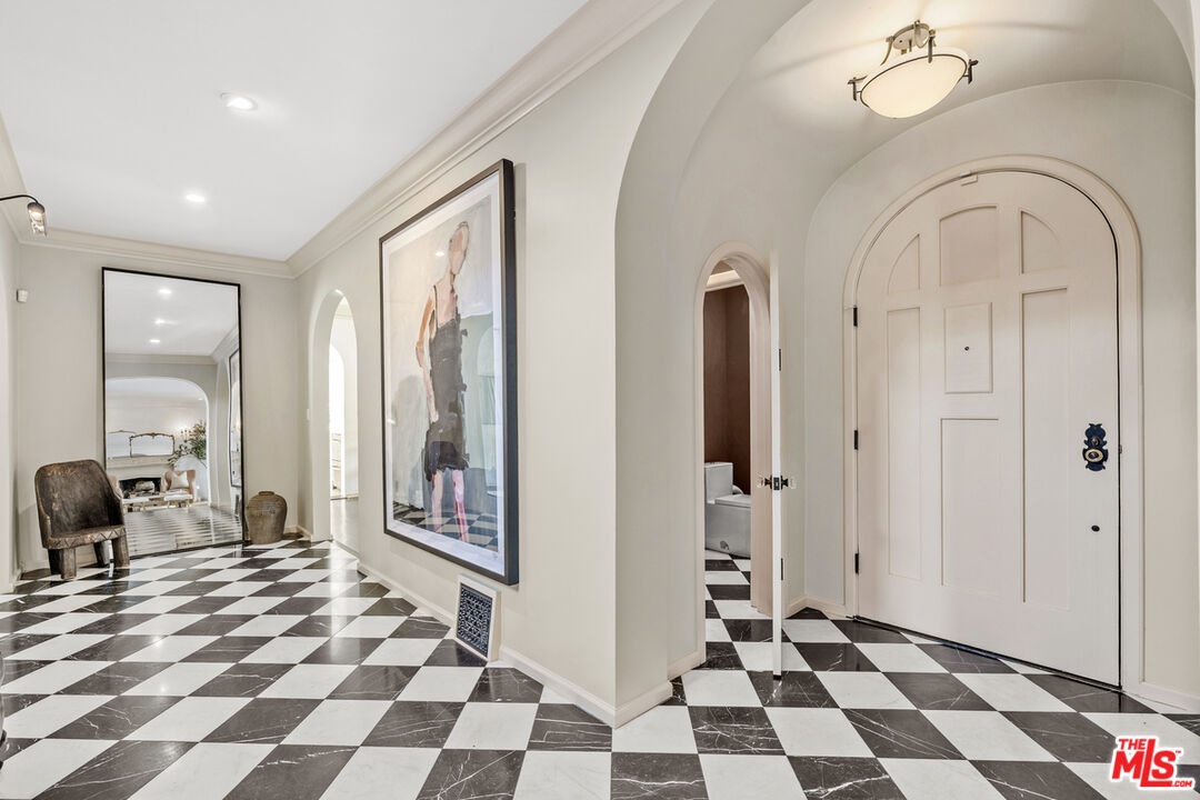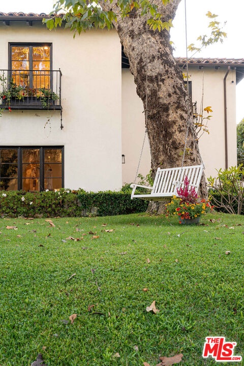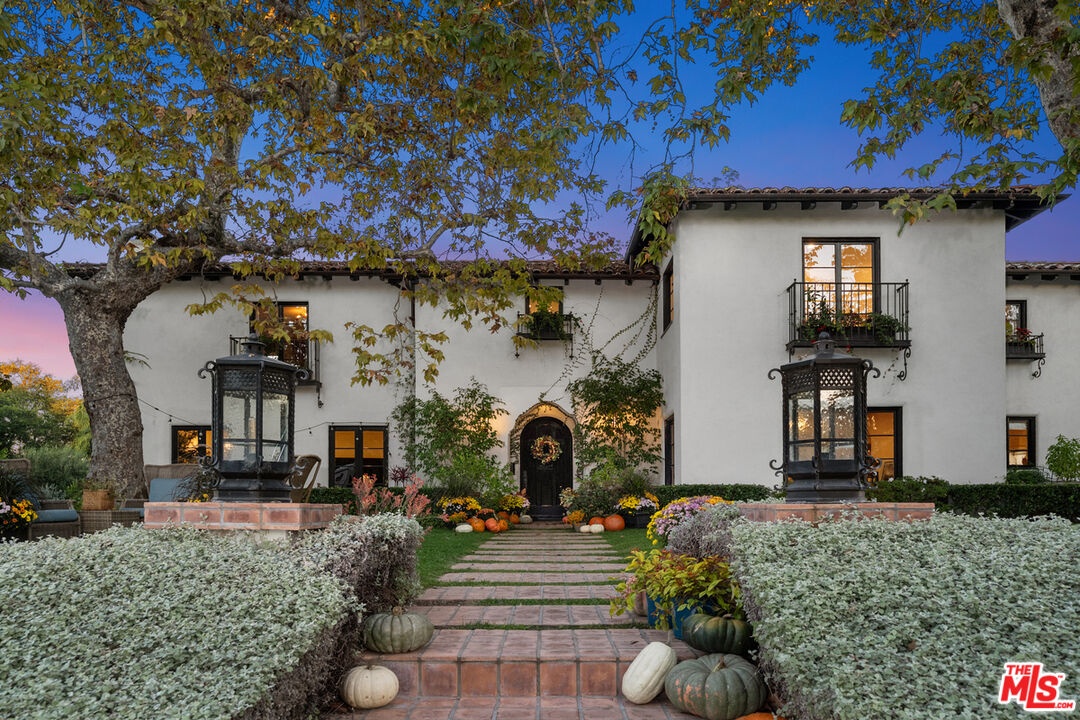 Designed by famed architect Clarence J. Smale in 1928, this timeless Mediterranean home blends historic character with modern comfort on one of Windsor Square's most coveted blocks. Gracefully set back from the street and framed by mature sycamores, the residence offers a rare sense of tranquility and presence.A beautiful arched entry leads to a striking foyer with black-and-white stone floors. The grand step-down living room, illuminated by two exposures, opens through French doors to the backyard. A charming library/office enjoys its own private patio, while the formal dining room - with garden views- doubles as a welcoming family space. The den, opening to the backyard, functions equally well as a breakfast room or cozy retreat.The chef's kitchen is updated with a large honed marble island, generous pantry (formerly a bedroom), laundry room, and adjacent full bath. A stylish powder room completes the first floor. Upstairs, the primary suite offers elegance and serenity with a stone fireplace, private terrace, remodeled bath, generous walk-in closet, and separate office or dressing area. Two additional ensuite bedrooms line a light-filled hallway. An entertainer's dream backyard is hedged in and private with a pool, spa and outdoor kitchen. Above the detached two-car garage, a flexible guest suite/gym/office includes its own bath. A rooftop deck crowns the space, offering unexpected views of Griffith Observatory and the Hollywood Hills. Located in the 3rd St elementary school district, moments from Larchmont Village's Farmers Market, beloved restaurants, shops and yoga studio, this home captures the perfect balance of architectural romance and urban sophistication in a close-knit community.
