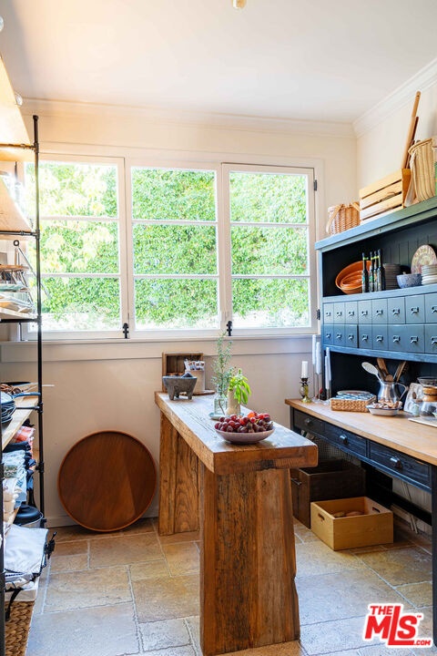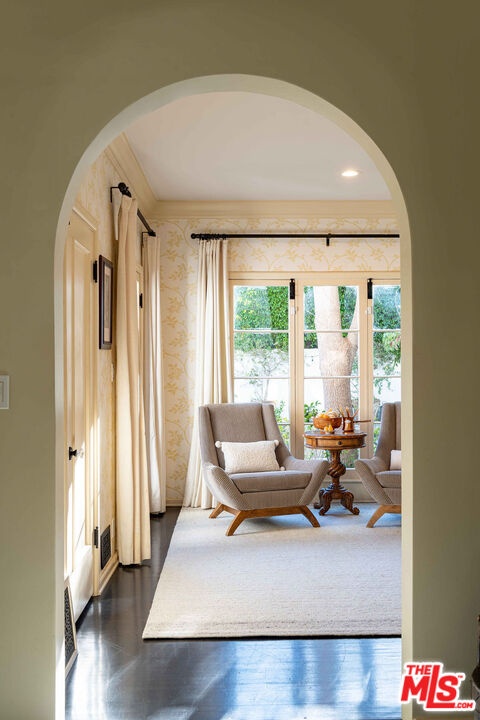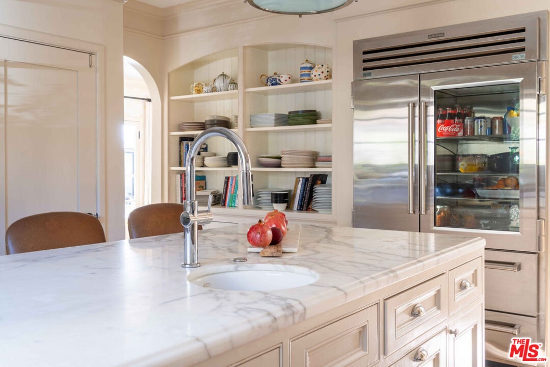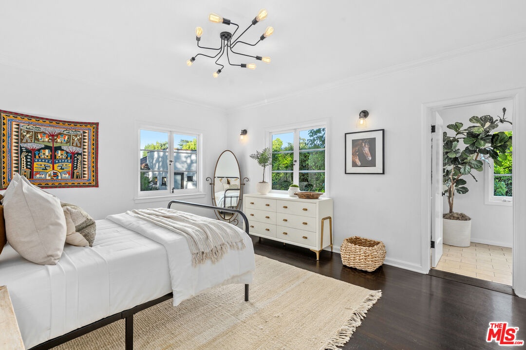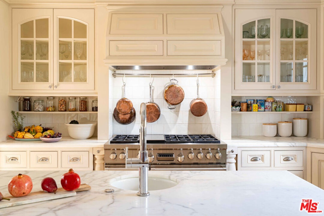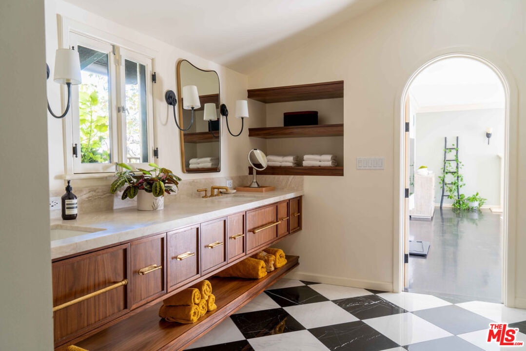 Designed by famed architect Clarence J. Smale in 1928, this timeless Mediterranean home blends historic character with modern comfort on one of Windsor Square's most coveted blocks. Gracefully set back from the street and framed by mature sycamores, the residence offers a rare sense of tranquility and presence.A beautiful arched entry leads to a striking foyer with black-and-white stone floors. The grand step-down living room, illuminated by two exposures, opens through French doors to the backyard. A charming library/office enjoys its own private patio, while the formal dining room - with garden views- doubles as a welcoming family space. The den, opening to the backyard, functions equally well as a breakfast room or cozy retreat.The chef's kitchen is updated with a large honed marble island, generous pantry (formerly a bedroom), laundry room, and adjacent full bath. A stylish powder room completes the first floor. Upstairs, the primary suite offers elegance and serenity with a stone fireplace, private terrace, remodeled bath, generous walk-in closet, and separate office or dressing area. Two additional ensuite bedrooms line a light-filled hallway. An entertainer's dream backyard is hedged in and private with a pool, spa and outdoor kitchen. Above the detached two-car garage, a flexible guest suite/gym/office includes its own bath. A rooftop deck crowns the space, offering unexpected views of Griffith Observatory and the Hollywood Hills. Located in the 3rd St elementary school district, moments from Larchmont Village's Farmers Market, beloved restaurants, shops and yoga studio, this home captures the perfect balance of architectural romance and urban sophistication in a close-knit community.