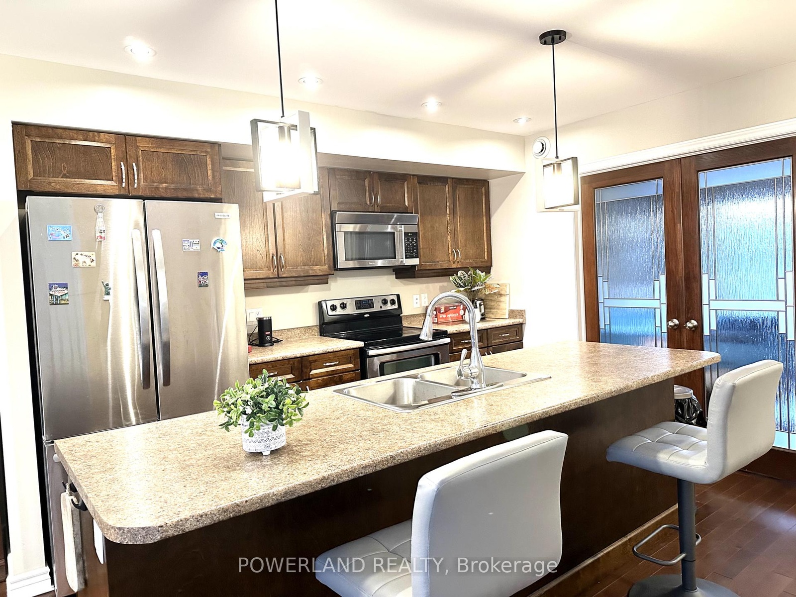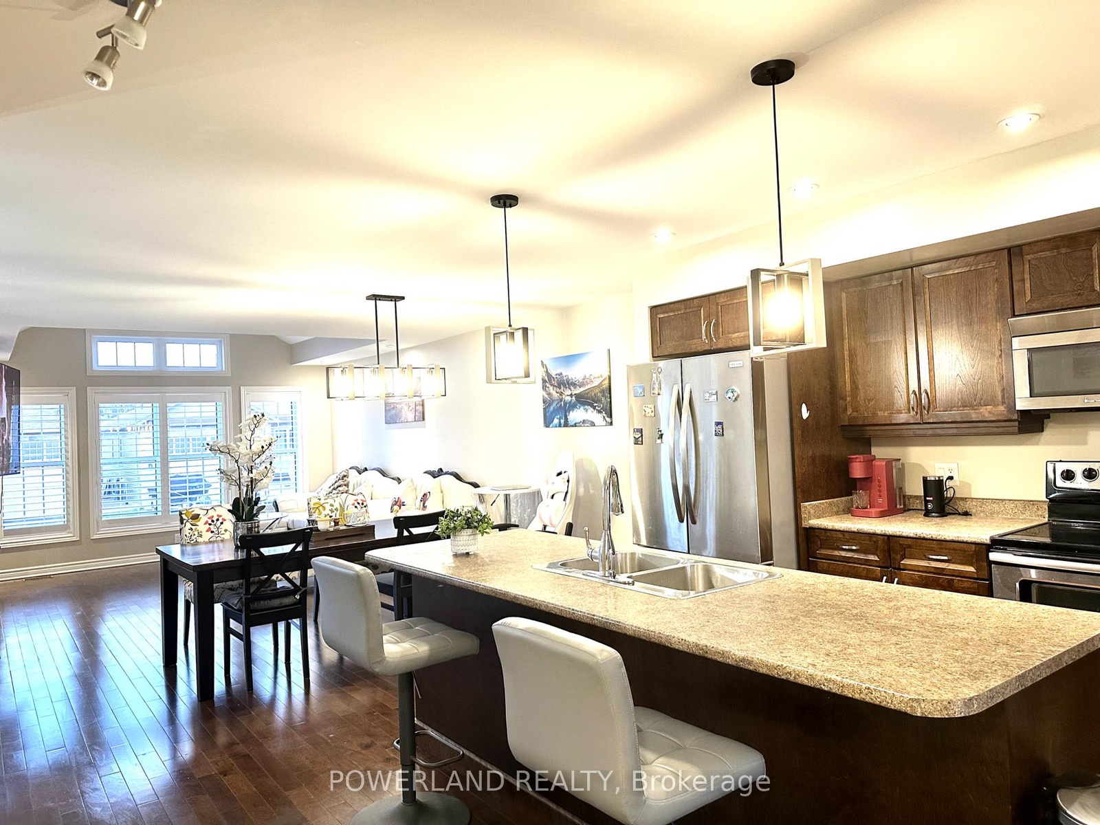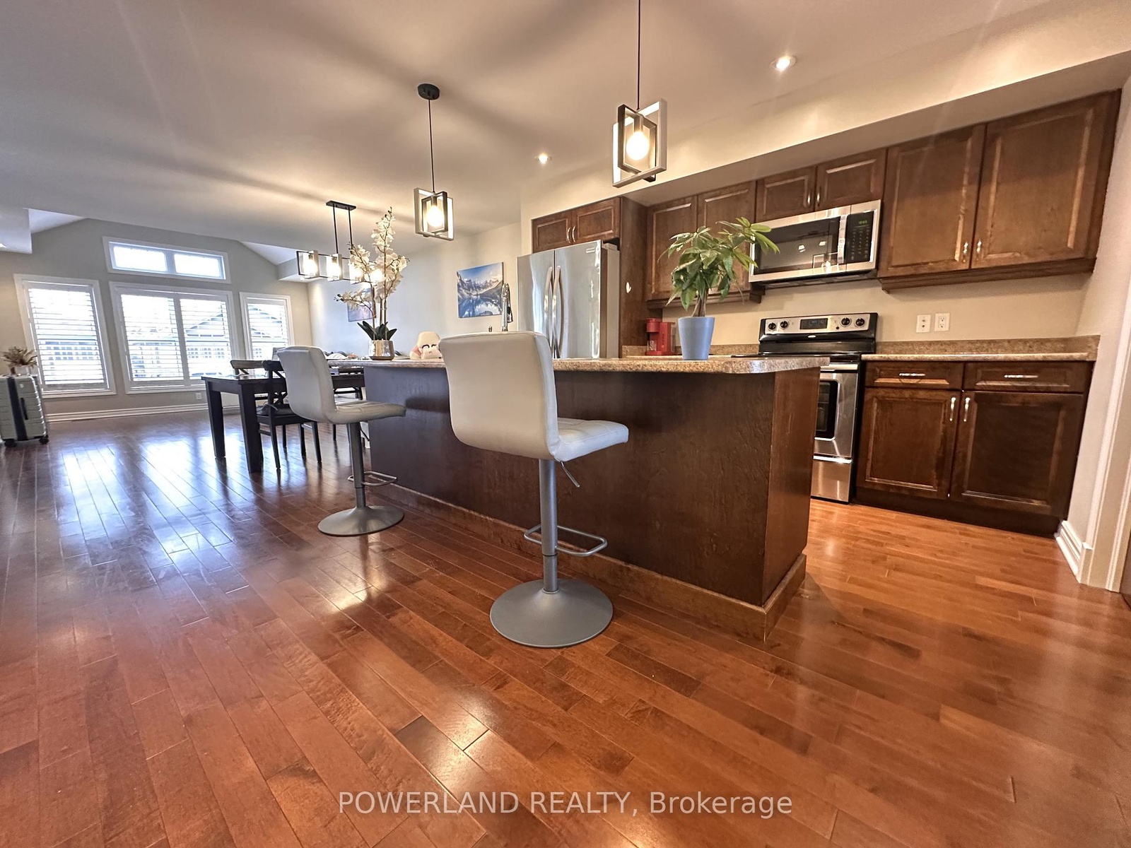 21 Brookland - Home built by Kenalex Builders. 1156 sq' Bungalow with 900 sf walk-out finished basement, Sitting on well landscaped big lot 46*108 Feet with walkout from rec room to fully fenced rear yard. Spacious entry with high ceiling leading to wood stairs to matching hardwood floors to living room with vaulted ceilings. Open concept kitchen with large center island all stainless appliances & large dining area. Master bedroom with window seat. 1-4pc bath and 2nd bedroom with walk-out glass sliding doors to covered deck. Lower level features 25x12 rec room, 2 other bedrooms & 1-3pc with corner shower. Laundry room with washer, dryer, central vac, air conditioning and forced air gas furnace. Owned hot water tank. Single garage with built in loft. Paved double drive way very spacious enough to park additional 4 cars.A prime location in a family oriented neighborhood, this well maintained home combines space, functionality, and style, making it an excellent choice for your next move(Avg Monthly Hydro $77.82 Avg Monthly Gas $131.58 Avg Monthly Water $101 According to the Last 12 Month Record).