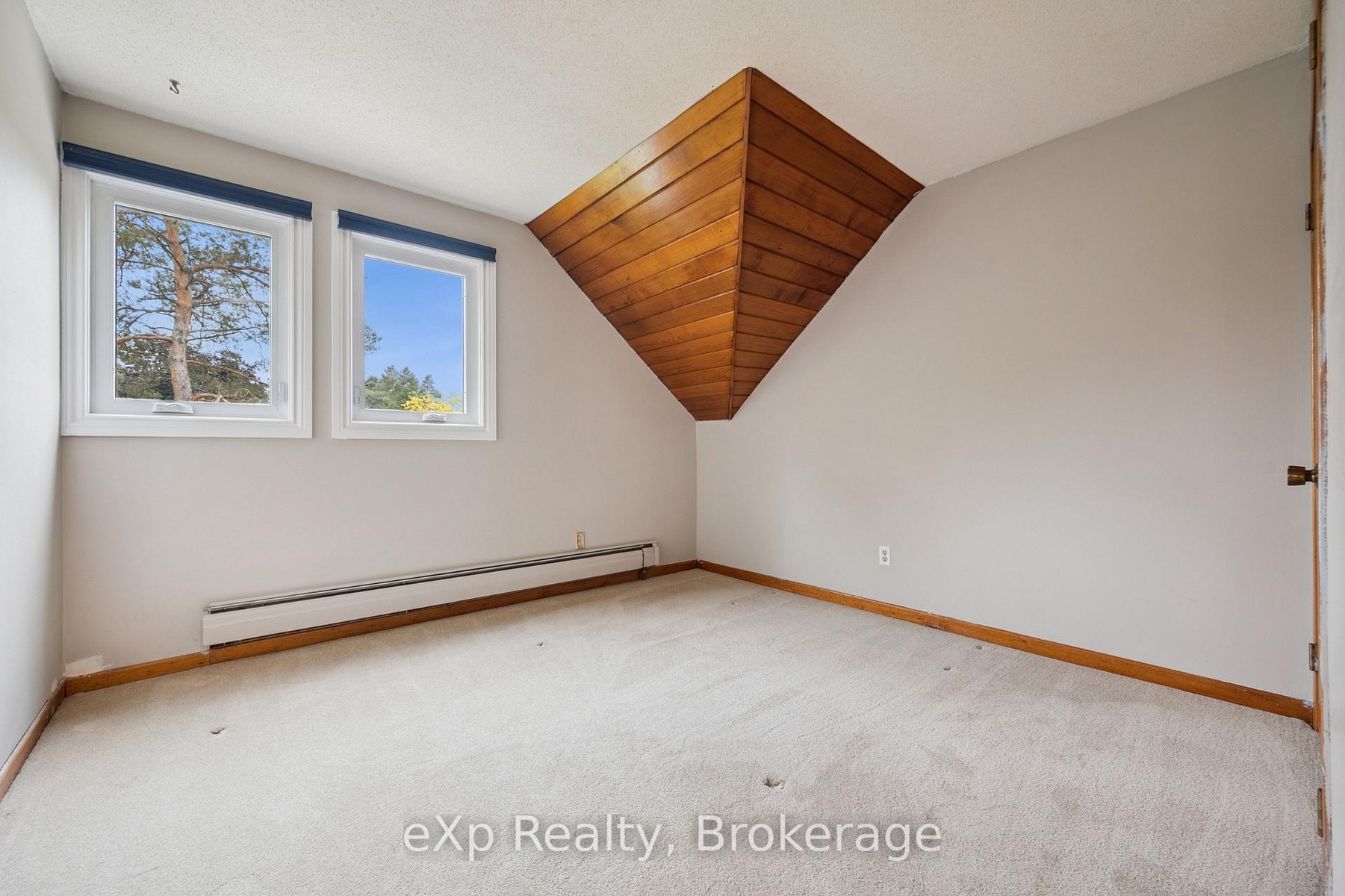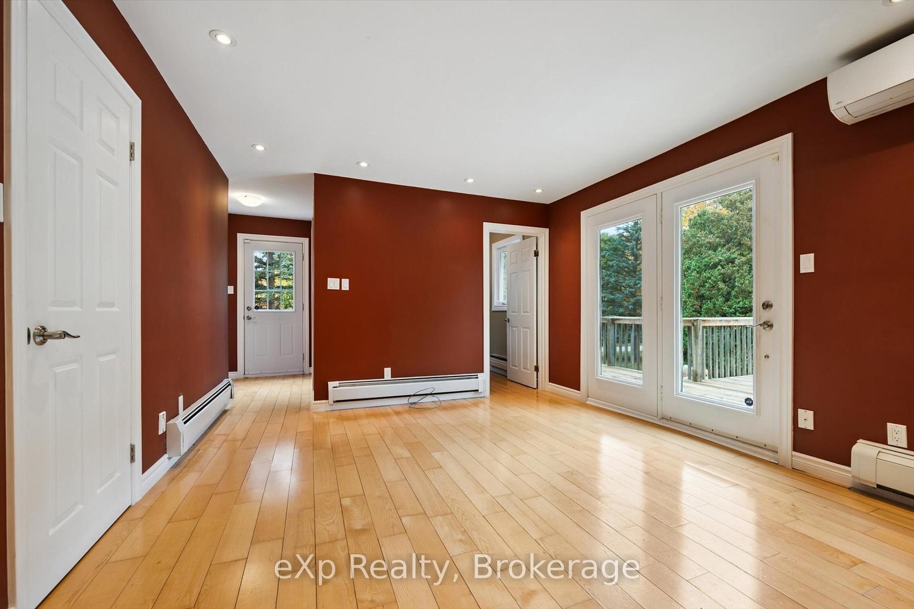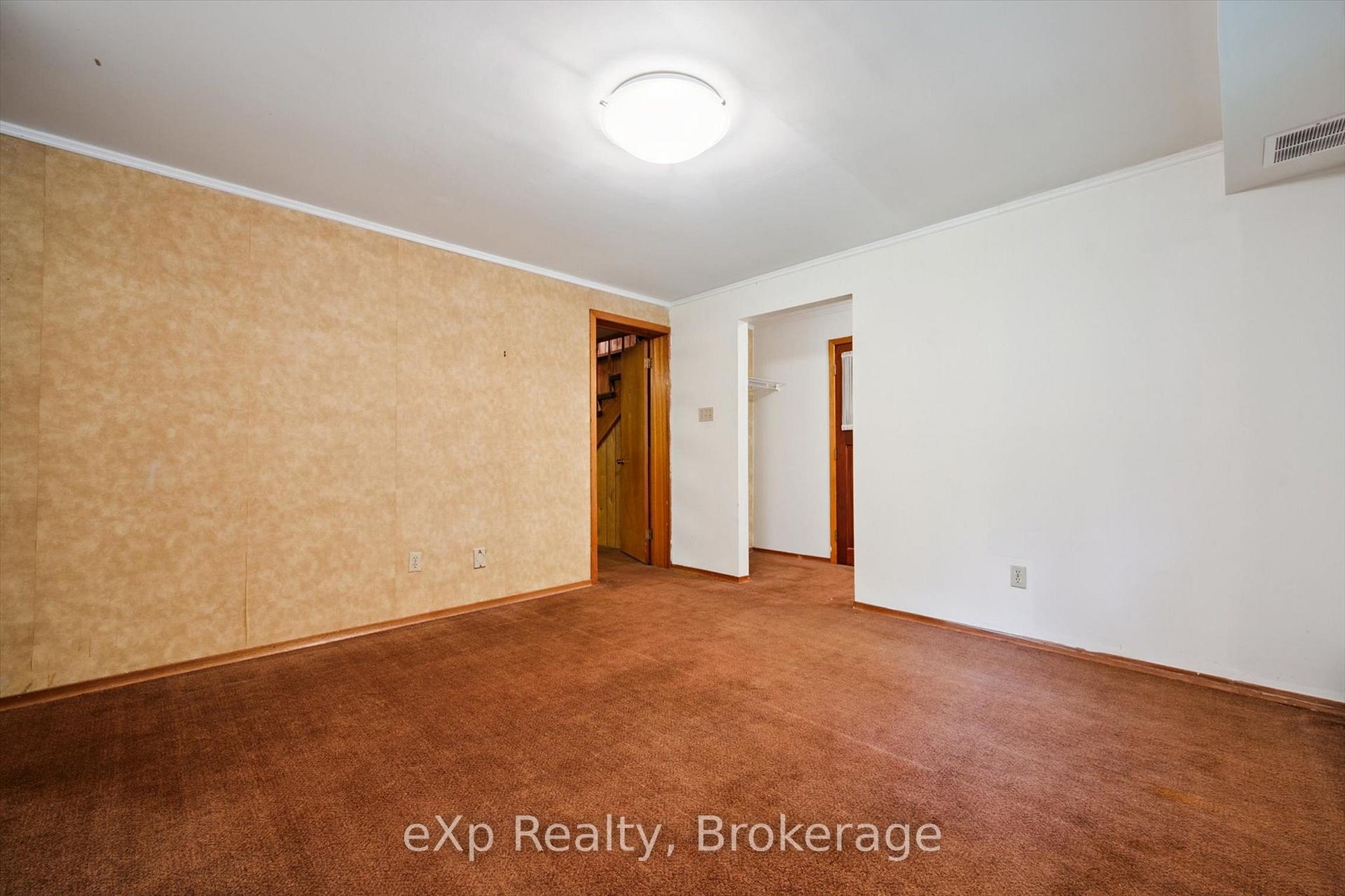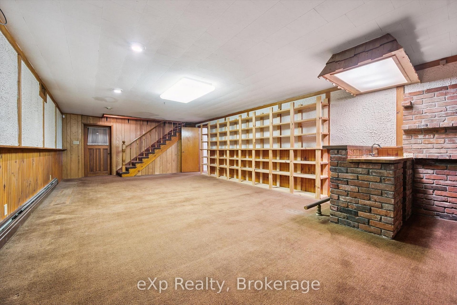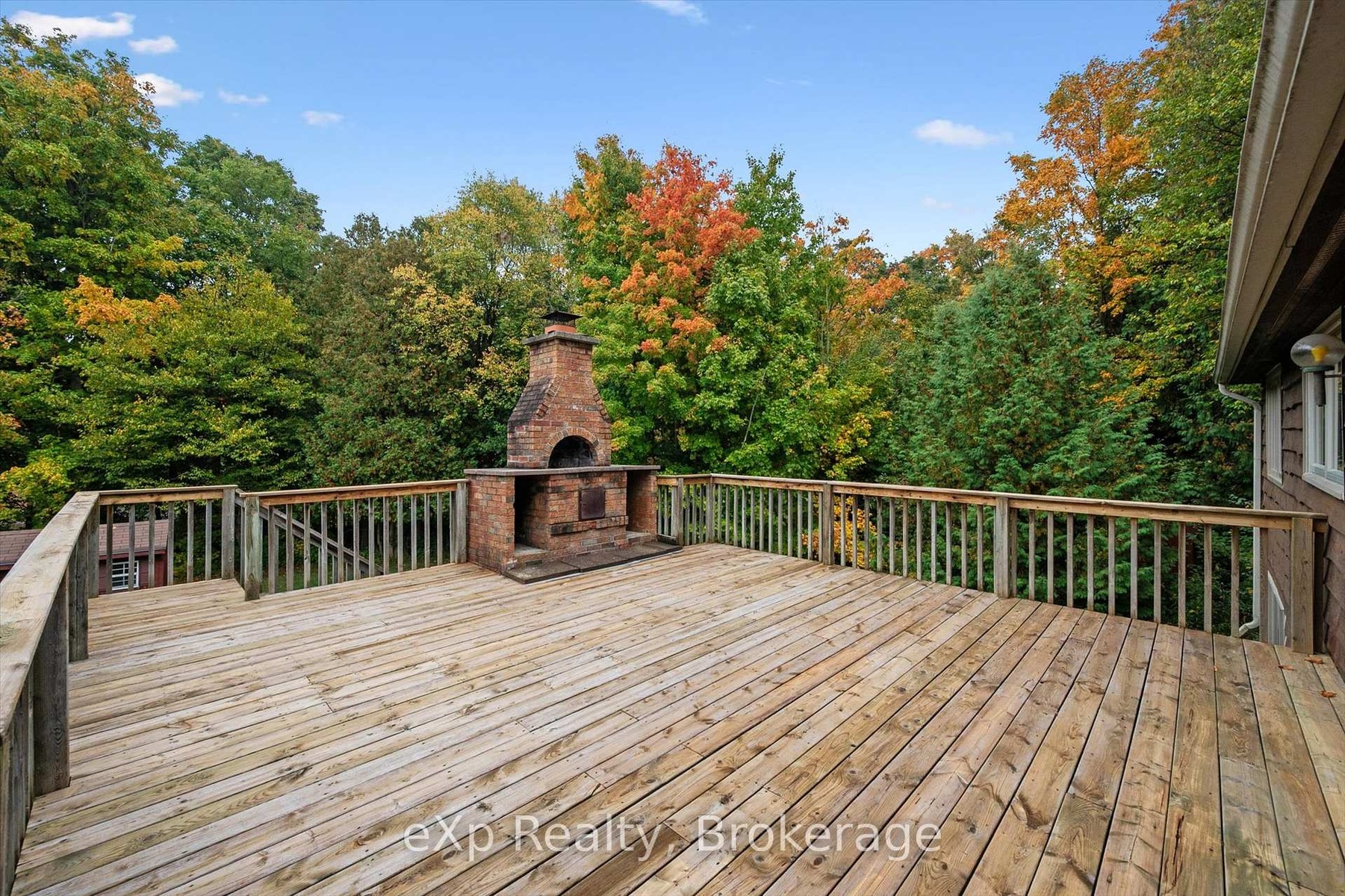 Lovely and private, this 2-acre property with a forested backdrop is nestled in a peaceful rural type setting on the edge of Guelph. Blending vintage charm with incredible potential, it offers endless possibilities whether for multi-generational living, home-based business, or transforming it into your dream home. The well-planned 2,113 sq. ft. two-storey home is full of character and unique design features. From the road you'll find two separate driveways at different grade levels, each leading to its own garage. An attached single garage on the upper level and another at the basement walkout level. Inside, the main and bedroom levels follow a traditional layout with generous principal rooms. The kitchen is beautifully appointed with wood cabinetry, granite countertops, an under mount sink, built-in stainless steel appliances, jenn-air counter top range and a very spacious dinette area. A convenient main-floor laundry room adds to the functionality. Upstairs, you'll find three comfortable bedrooms plus a distinctive cedar-panelled office featuring a retro orange wood-burning fireplace easily converted into a fourth bedroom. A full main bath and a 3-piece ensuite complete the level, along with large newer windows framing private views. The fully finished basement presently offers a recreation room, office, 3-piece bath and a bonus room with second walk-out to yard. This one-of-a-kind home must be seen to fully appreciate its features, character, and the opportunity it offers to bring your vision to life.
