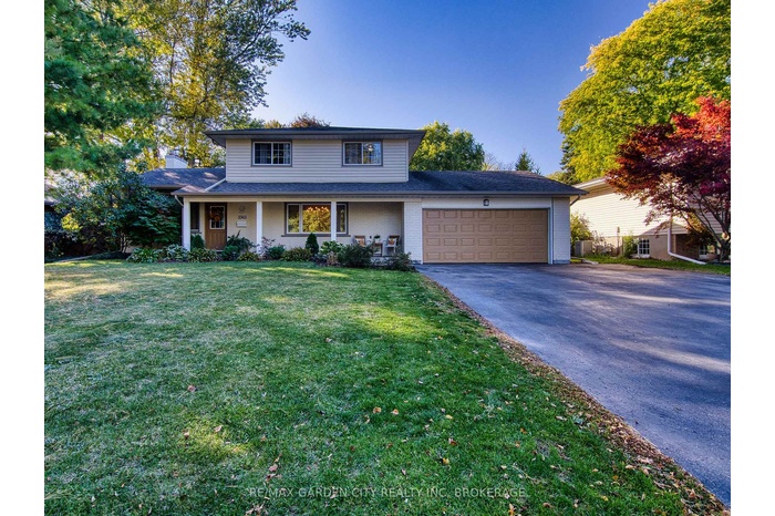 Desired Rolling Acres area. Walk to your choice of schools, park, minutes to the QEW for the commuter and all amenities. Solid, spotless, 3+1 bedroom brick family home with attached double car garage and paved, double private driveway. Fully fenced, large backyard with covered concrete patio/BBQ area overlooking the sunken above ground pool and deck. Garden shed, landscaped. Covered tiled front porch entryway to foyer. Great floor plan with oversized, bright replacement windows throughout. Inviting hardwood floored living room with gas fireplace, large, formal dining room. Open concept dinette, kitchen with walkout to backyard. Redone 3 piece bathroom with spacious walk-in shower plus a newer 4 piece bathroom upstairs. 3 bedrooms and a walk-in pantry. Comfortable, cozy rec room, high ceilings and pot lights. 4th bedroom, laundry room, storage room, 8 year new FAG furnace and CA unit. 200-amp breakers having enough power for that backyard hot tub you've always dreamed of. Start or move your family into a neighbourhood where you can leave your doors unlocked! This is it!