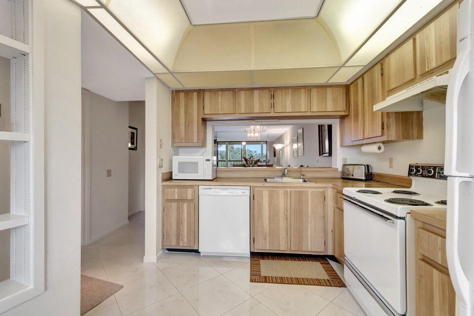 Welcome to 14475 Strathmore Ln 405, a gem in the Active ADULT COMMUNITY (55+) of Huntington Lakes in Delray Beach, FL. Step right into this sizeable Buckingham Condo model, the largest in the community. The gradual grandeur of beautiful diagonal porcelain flooring that streaks throughout the living areas emphasizes the array of significant comforts. As you progress deeper into the unit, enjoy the plush, comforting carpet underfoot in the two bedrooms, which epitomizes domestic comfort. The condominium presents an airy, broad layout. When you enter, you'll find a convenient coat closet and a dedicated linen closet in the laundry room equipped with a full-sized washer and dryer to manage your daily chores efficiently.