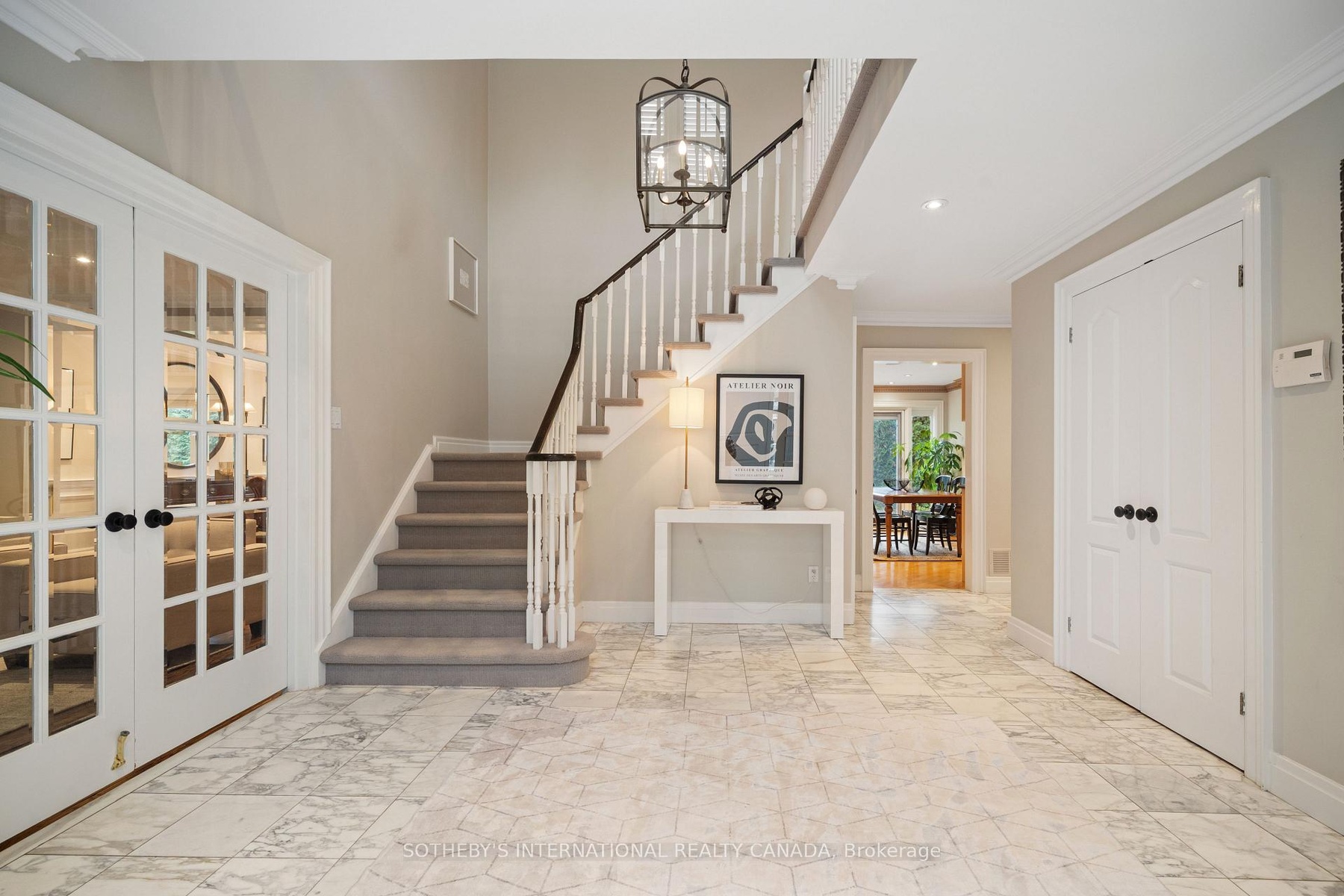Bright, expansive and perfect for everyday living. Nestled on a quiet tree-lined crescent where families strive and community runs strong, walk to Denlow school and Banbury community centre and park. Fabulous landscaped front garden full of perennials. Lovely double door entrance, skylight, marble floors and 3 double hall closets. It also boasts formal living and dining rooms with hardwood floors and built-in sound system. This larger than most 4 + 2 bedroom home with 5 bathrooms, 2 ensuites ,offers recent updates and graceful functionality with its extra 4 foot addition across the back of the kitchen and family room. As a result you get modern family living with an extra large eat-in kitchen with a walk-out to back garden and a larger family room with gas fireplace. The most recent upgrades, refreshed laundry room with separate side door entrance, brand new main floor powder room and basement finished with a large recreation/tv room and 2 more bedrooms, 3 piece bathroom, a walk-in cedar closet among the ample storage. The Large primary has a wall to wall built-in closet with drawers, shelves and hanging, walk-in closet and newer ensuite with heated floors and a heated towel rack. Three more bedrooms, one with a built-in desk, drawers and shelves and another with a newer ensuite. All three are a good size and have double closets.Fabulous family home in the coveted Denlow area.