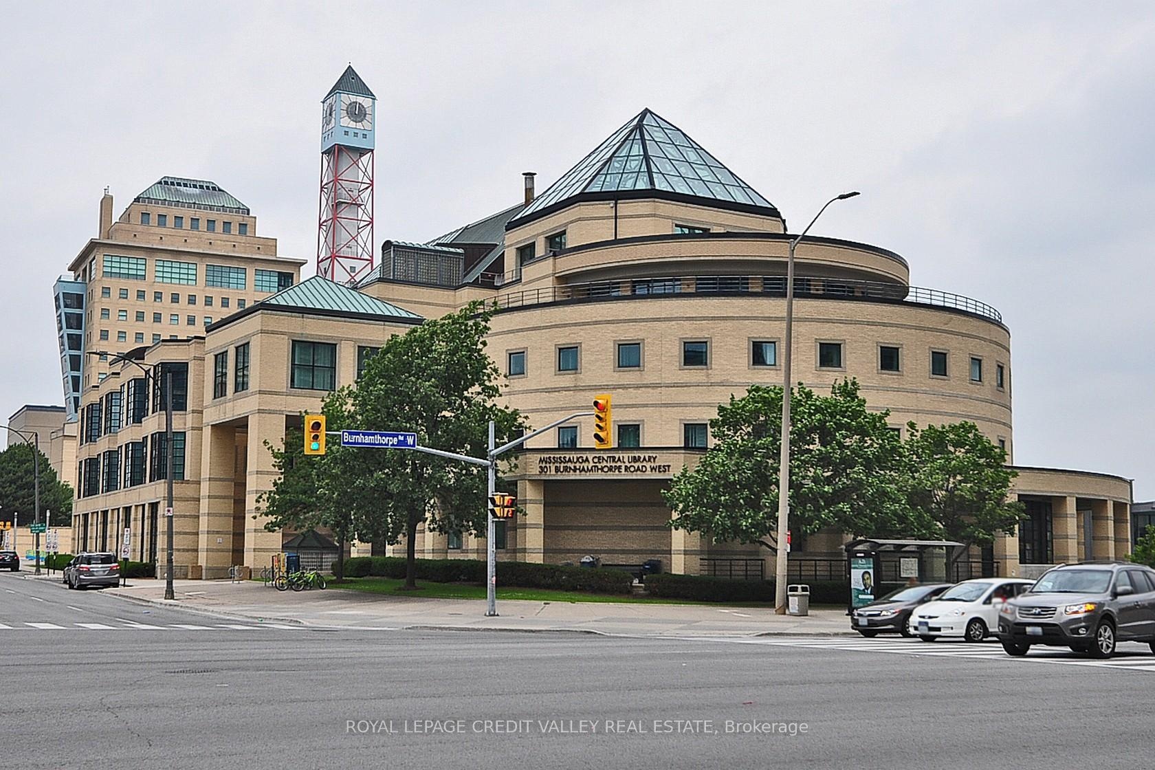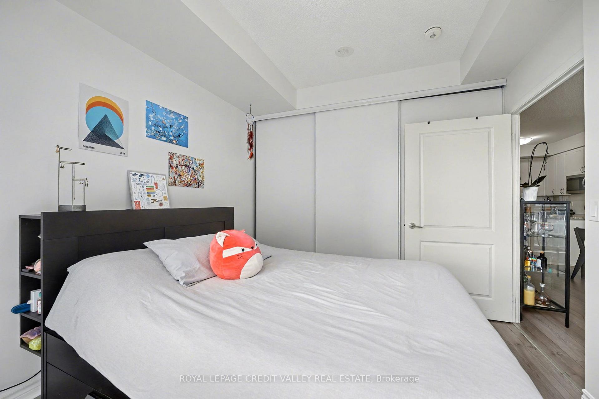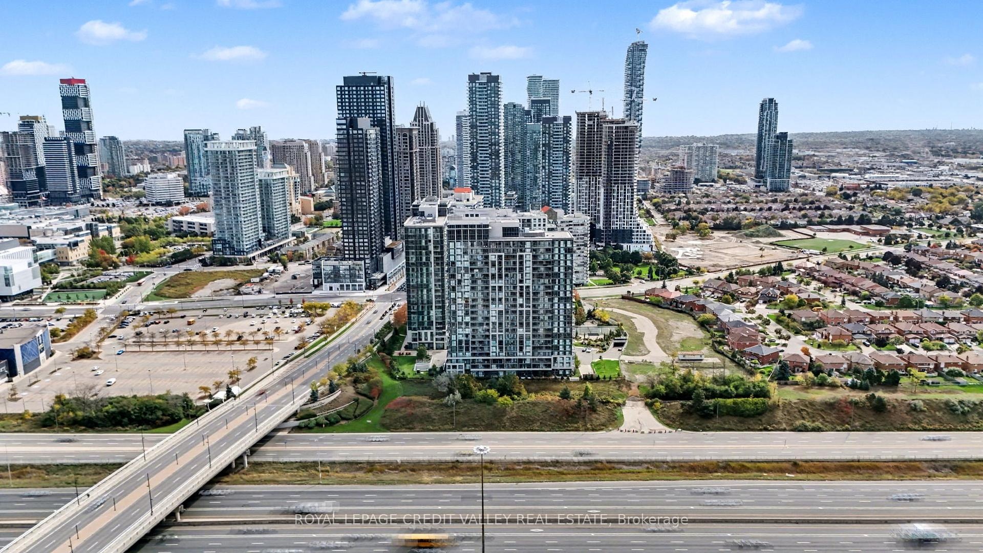 Built in 2021, this modern 1-bedroom + den, 1-bathroom condo offers 645 sq. ft. of bright and open living space & a private balcony in the heart of Mississauga. The stylish kitchen features ample storage, stainless steel appliances, sleek white cabinetry, quartz countertops, and a double sink with a breakfast area. The open-concept of living and dining space flows seamlessly to a walkout balcony, filling the unit with natural light. The primary bedroom boasts a three door closet and large windows, while the versatile den, complete with a light and vent, can function as a home office or second bedroom. A spa-like 4-piece bathroom, carpet-free flooring throughout, freshly painted (2025) and the convenience of en-suite laundry add to the units appeal. Located just steps from Square One Mall, GO Transit, Cineplex & Sheridan College. Strolling distance to Celebration Square, Living Arts Centre & the YMCA, this unit offers unbeatable convenience. With easy access to major highways, commuting is effortless. Don't miss this fantastic opportunity to live in one of Mississauga's most vibrant communities. Unit comes with 1 Underground Parking & 1 Storage Locker. Building Amenities Include - Tennis Court, Bowling Alley ,Gym & Aerobics Room, Guest Suites, Conference Room, Party Room w Kitchen, Movie Theatre, Cards & Table Tennis & Billiard Room, Indoor Pool & Sauna, Hot Tub/Jacuzzi , 24hrs security, Outdoor Entertainment Area with a Park and Visitors Parking.