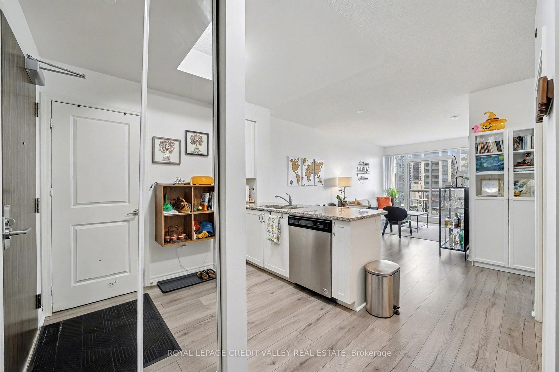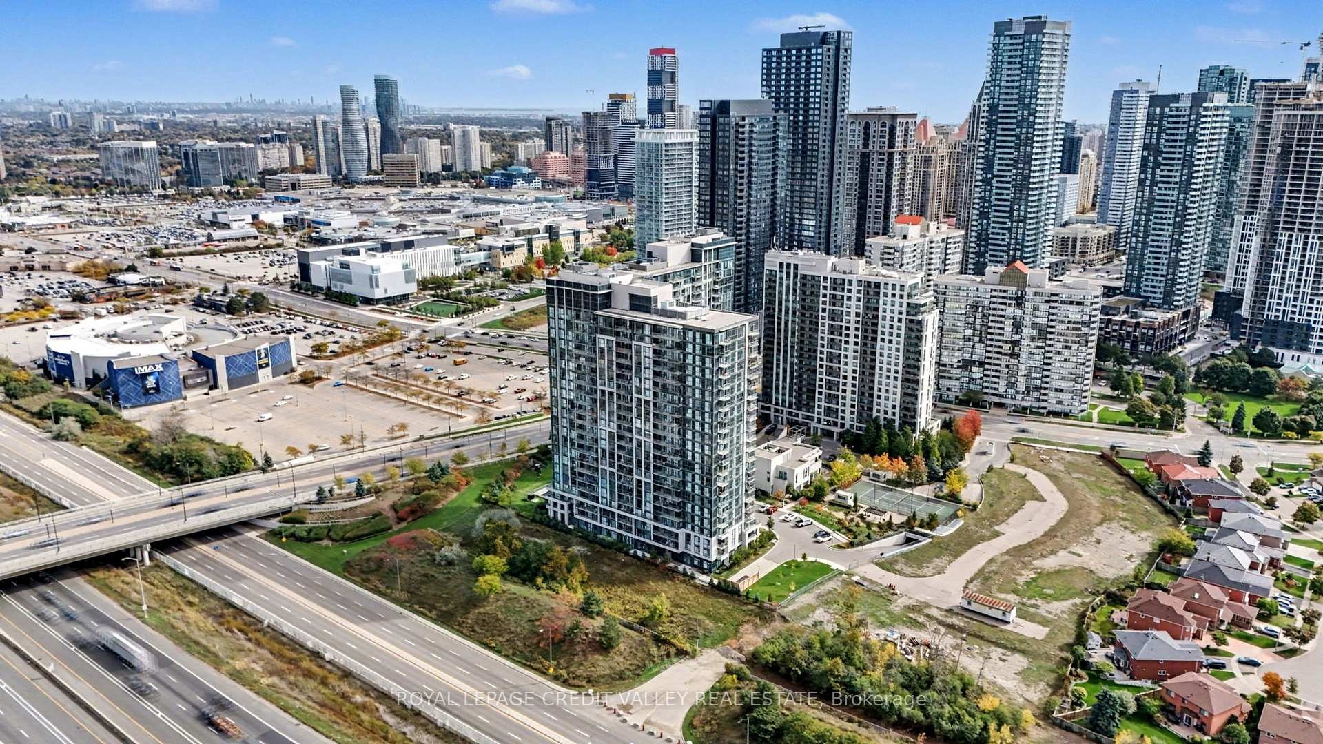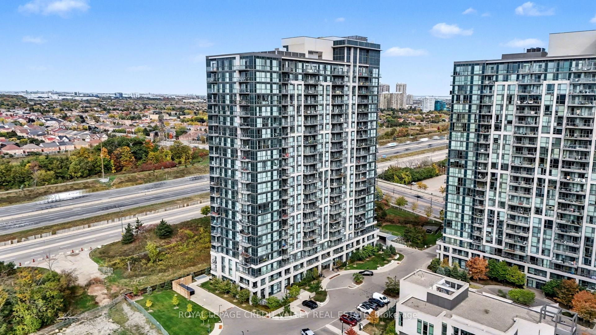 Built in 2021, this modern 1-bedroom + den, 1-bathroom condo offers 645 sq. ft. of bright and open living space & a private balcony in the heart of Mississauga. The stylish kitchen features ample storage, stainless steel appliances, sleek white cabinetry, quartz countertops, and a double sink with a breakfast area. The open-concept of living and dining space flows seamlessly to a walkout balcony, filling the unit with natural light. The primary bedroom boasts a three door closet and large windows, while the versatile den, complete with a light and vent, can function as a home office or second bedroom. A spa-like 4-piece bathroom, carpet-free flooring throughout, freshly painted (2025) and the convenience of en-suite laundry add to the units appeal. Located just steps from Square One Mall, GO Transit, Cineplex & Sheridan College. Strolling distance to Celebration Square, Living Arts Centre & the YMCA, this unit offers unbeatable convenience. With easy access to major highways, commuting is effortless. Don't miss this fantastic opportunity to live in one of Mississauga's most vibrant communities. Unit comes with 1 Underground Parking & 1 Storage Locker. Building Amenities Include - Tennis Court, Bowling Alley ,Gym & Aerobics Room, Guest Suites, Conference Room, Party Room w Kitchen, Movie Theatre, Cards & Table Tennis & Billiard Room, Indoor Pool & Sauna, Hot Tub/Jacuzzi , 24hrs security, Outdoor Entertainment Area with a Park and Visitors Parking.