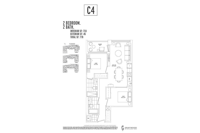 Direct from builder, spacious 733 sqft North facing 2 bedroom w Balcony.