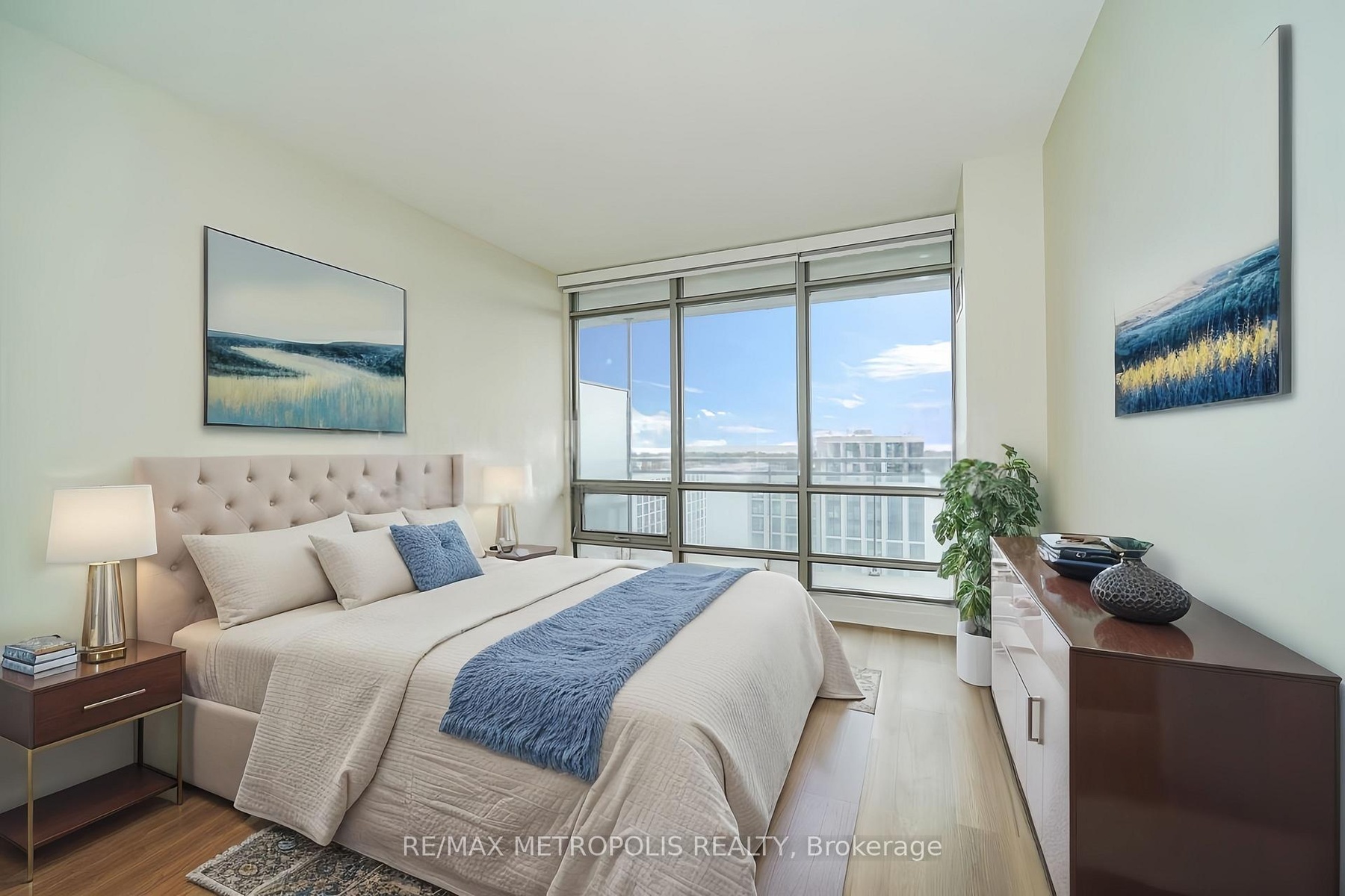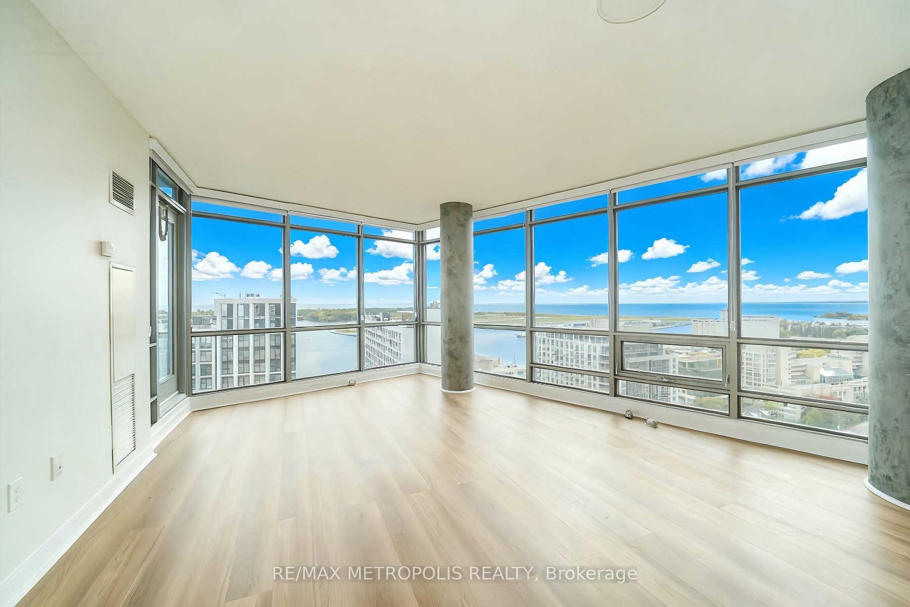Million-dollar views meet downtown sophistication in this exceptional corner suite at Harbourview Estates. Soaring above the city, this 2-bedroom plus den residence spans over 1,260 sq. ft., showcasing panoramic southwest vistas of the lake, islands, and skyline through floor-to-ceiling windows. The den is a fully enclosed space, ideal as a third bedroom or a quiet home office. Recently updated with new wide-plank laminate floors throughout, this bright and carpet-free layout offers both comfort and style.The modern kitchen is designed with function and flair, featuring an island with breakfast bar seating, sleek built-in appliances, and an adjacent pantry for added storage. The primary bedroom enjoys unobstructed views, a generous walk-in closet, and a spa-inspired ensuite bath. The open balcony invites you to take in breathtaking sunsets and marina breezes.Residents have access to the 30,000 sq. ft. SuperClub: enjoy a 25m indoor pool, full gym, spin & yoga studios, basketball and squash courts, tennis, bowling, billiards, ping pong, and more - plus BBQ terraces and a children's play zone. Included are one owned parking space, a storage locker, high-speed internet, and Bell Fibe TV.This is lakeside living redefined - where luxury meets lifestyle, just steps from the waterfront and downtown vibrancy.