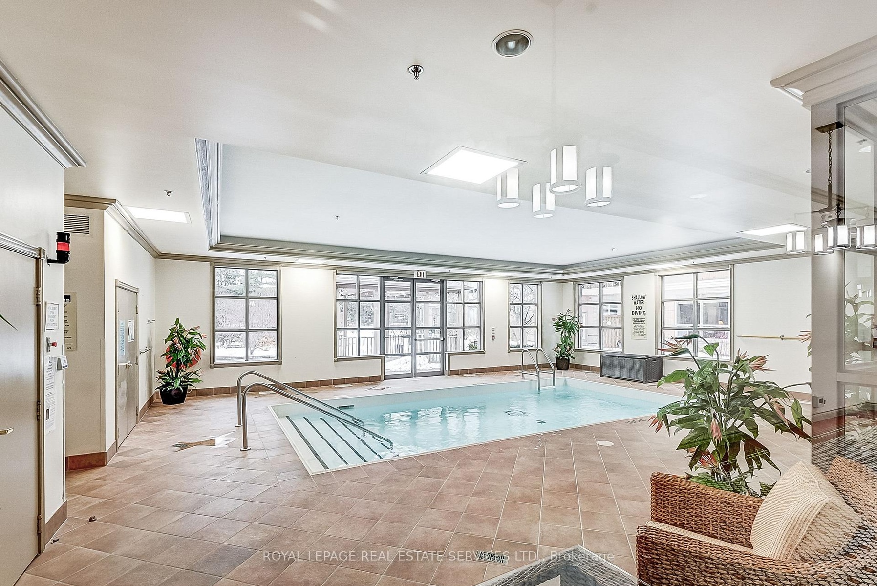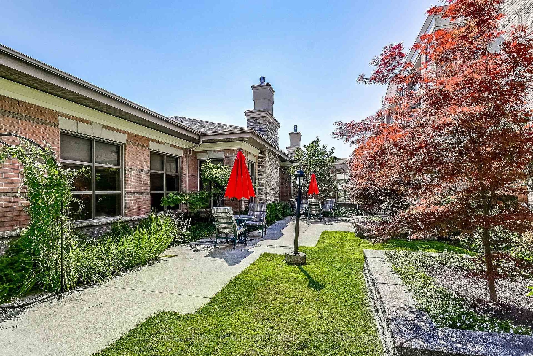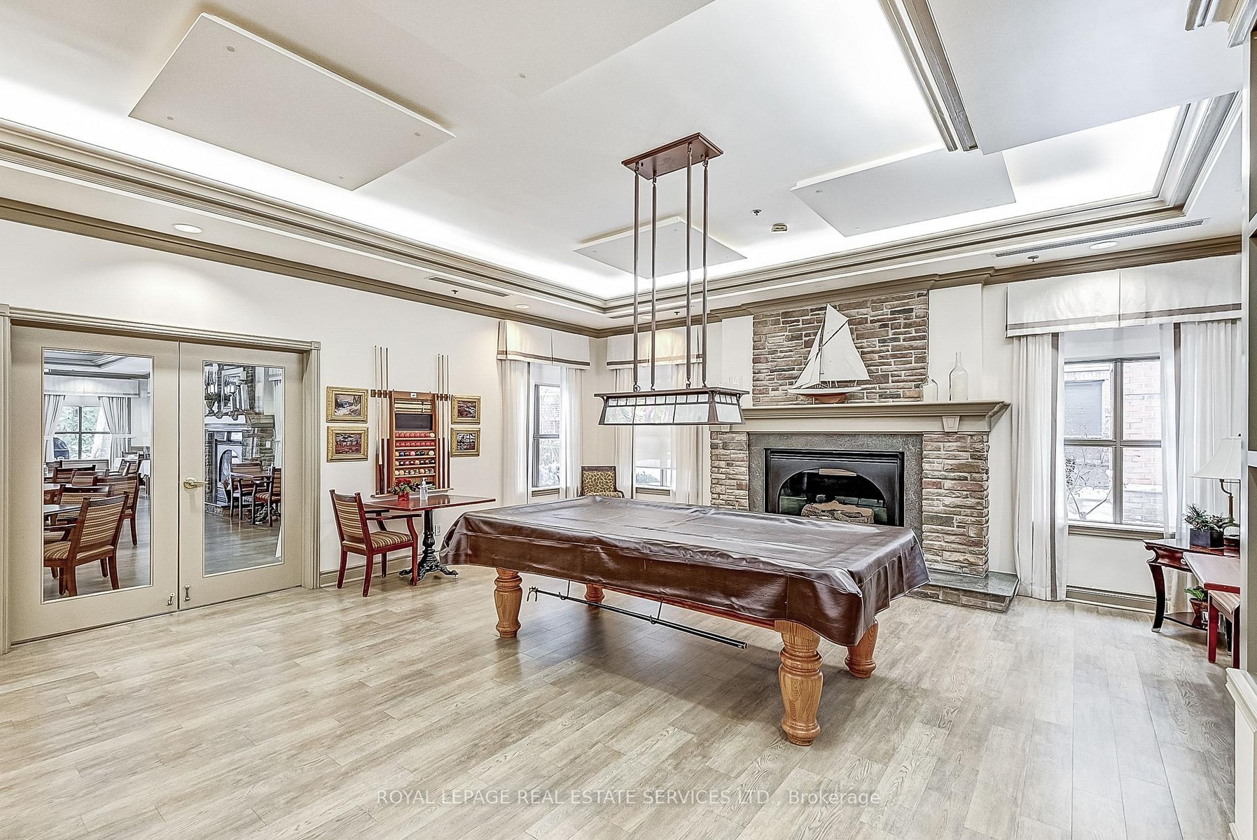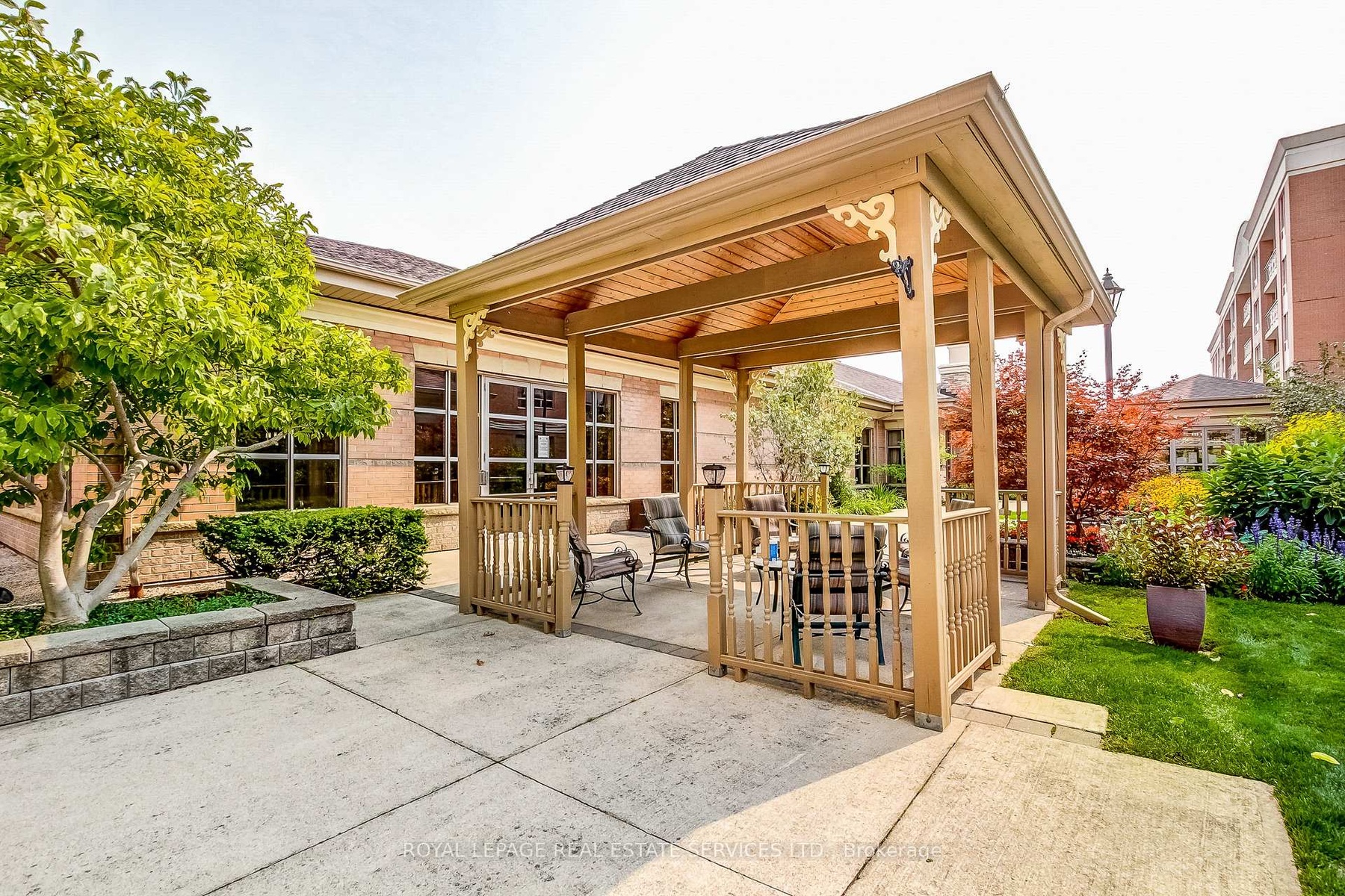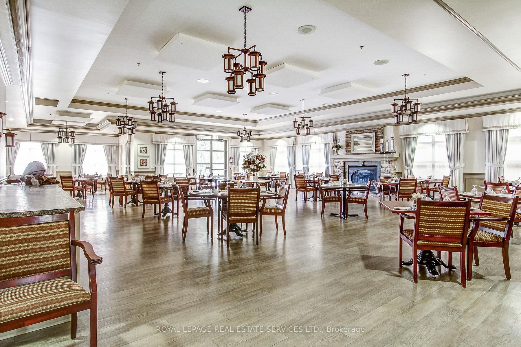 Experience Luxury Retirement Living at Hearthstone by the Lake! Welcome to this stunning top-floor 1 Bedroom + Den suite, perfectly designed for comfort and elegance. Enjoy a spacious open floor plan with soaring 9 ft ceilings and a walkout balcony offering peaceful views of mature trees and a charming side view of Lake Ontario. Beautifully refreshed with modern updates including quartz countertops, Stainless Steel Appliances, upgraded bathroom, luxury vinyl plank flooring, stylish light fixtures, and fresh paint, this suite blends timeless charm with contemporary design. As a valued member of the Hearthstone Club, you'll enjoy resort-style amenities such as a concierge, indoor saltwater pool, lounge, library, billiards room, and 24-hour emergency support. Take part in social, recreational, and educational programs, shopping shuttles, housekeeping, and wellness services. Dine with friends using your included Club meal credit, or host a special gathering in the historic "Pig and Whistle" restaurant. Nestled on four beautifully landscaped acres with award-winning gardens, Hearthstone by the Lake is directly across from Lake Ontario, scenic parks, and the Waterfront Trail. This is luxury retirement living at its finest - where comfort, community, and convenience come together effortlessly. Club Membership/ Basic Service Package provides both security and peace of mind, including a $260/month dining credit, housekeeping, 24/7 emergency nursing, an emergency call system, and on-site handyman services