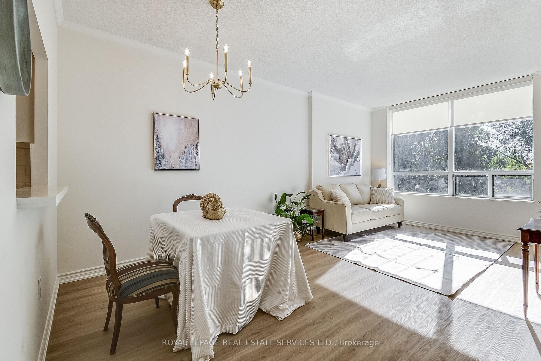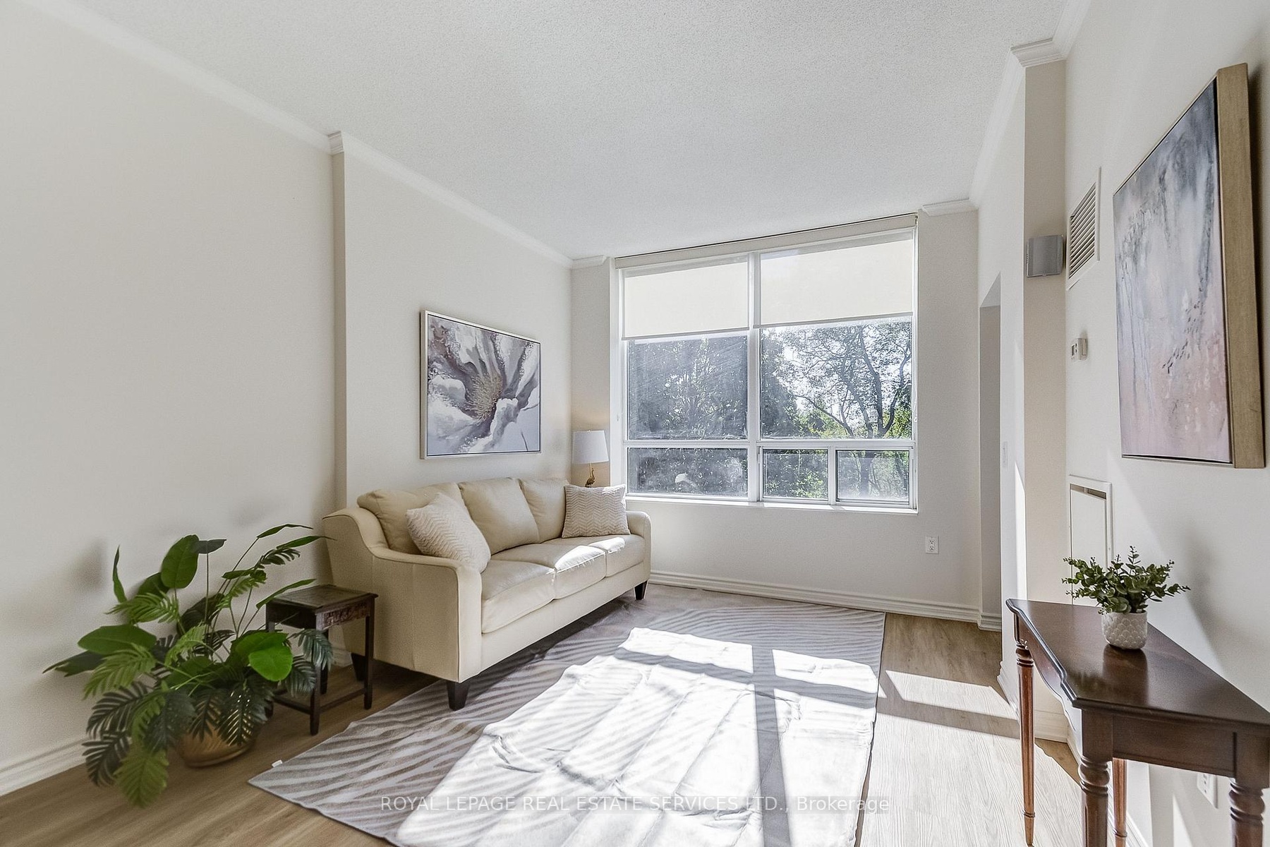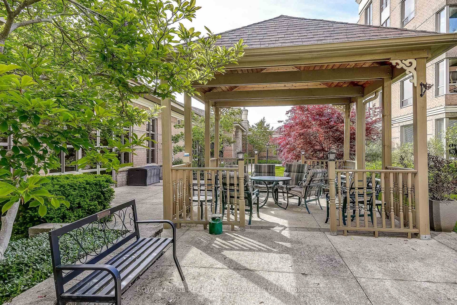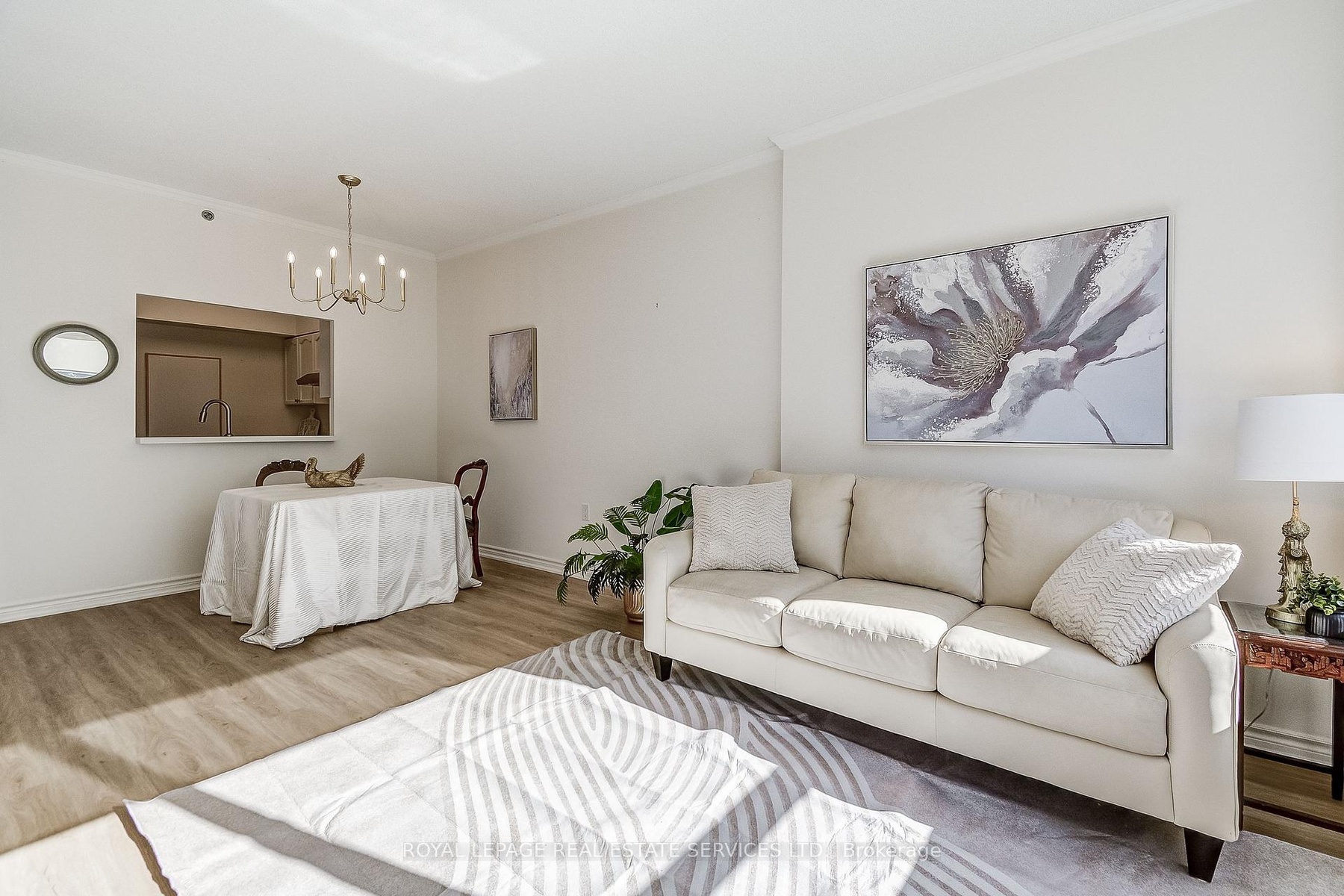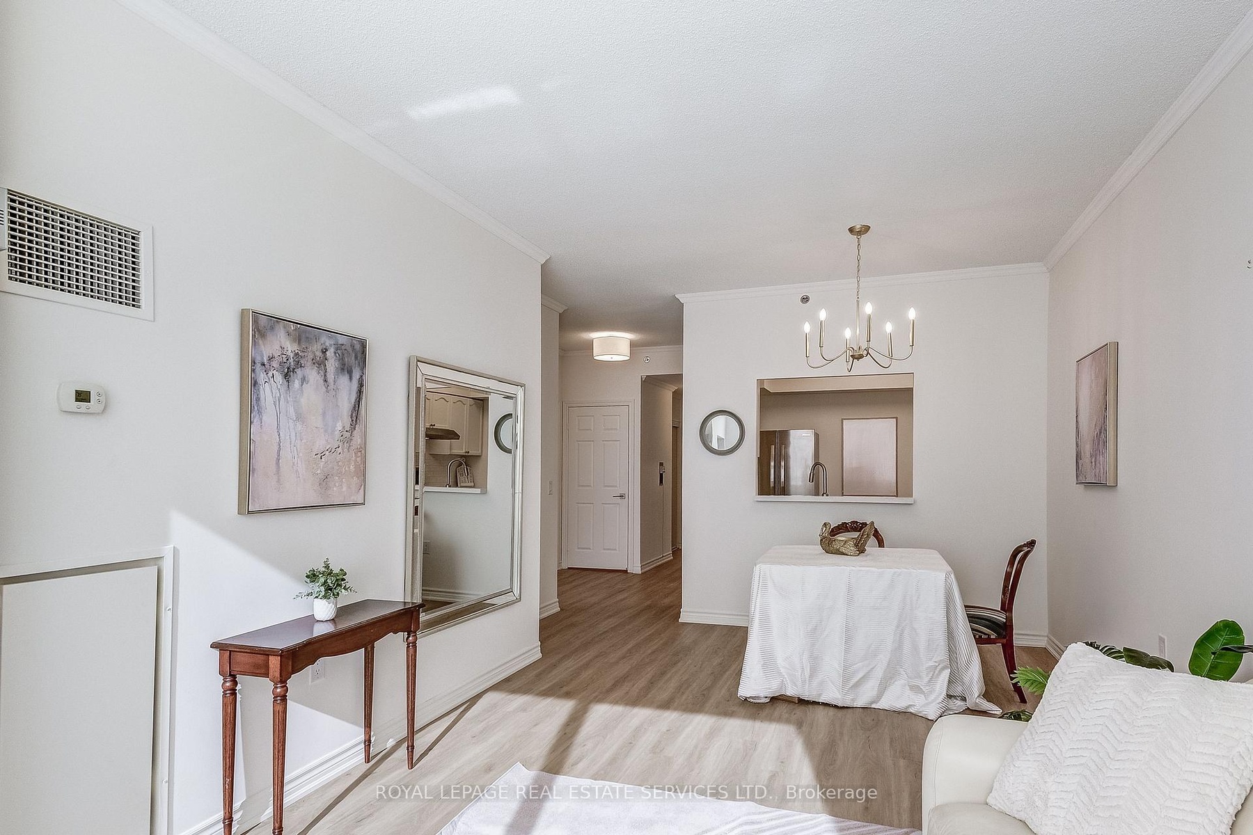 Experience Luxury Retirement Living at Hearthstone by the Lake! Welcome to this stunning top-floor 1 Bedroom + Den suite, perfectly designed for comfort and elegance. Enjoy a spacious open floor plan with soaring 9 ft ceilings and a walkout balcony offering peaceful views of mature trees and a charming side view of Lake Ontario. Beautifully refreshed with modern updates including quartz countertops, Stainless Steel Appliances, upgraded bathroom, luxury vinyl plank flooring, stylish light fixtures, and fresh paint, this suite blends timeless charm with contemporary design. As a valued member of the Hearthstone Club, you'll enjoy resort-style amenities such as a concierge, indoor saltwater pool, lounge, library, billiards room, and 24-hour emergency support. Take part in social, recreational, and educational programs, shopping shuttles, housekeeping, and wellness services. Dine with friends using your included Club meal credit, or host a special gathering in the historic "Pig and Whistle" restaurant. Nestled on four beautifully landscaped acres with award-winning gardens, Hearthstone by the Lake is directly across from Lake Ontario, scenic parks, and the Waterfront Trail. This is luxury retirement living at its finest - where comfort, community, and convenience come together effortlessly. Club Membership/ Basic Service Package provides both security and peace of mind, including a $260/month dining credit, housekeeping, 24/7 emergency nursing, an emergency call system, and on-site handyman services