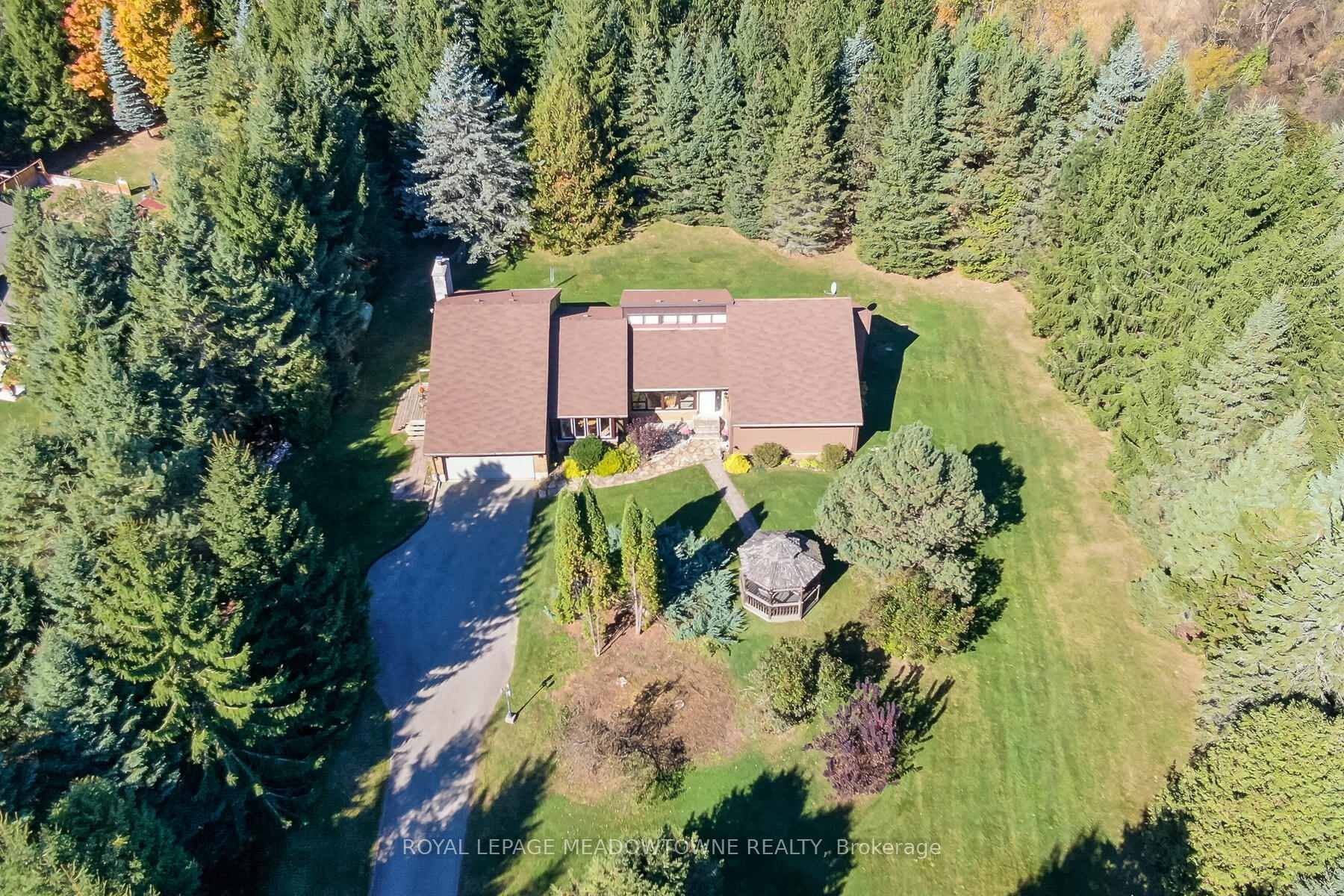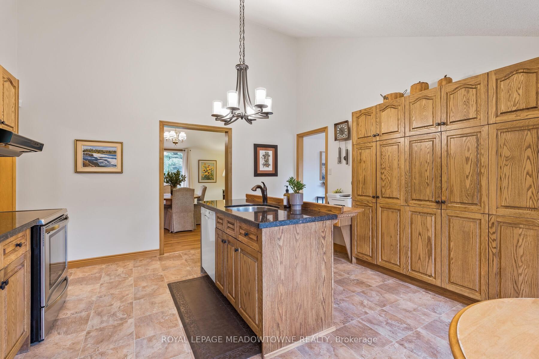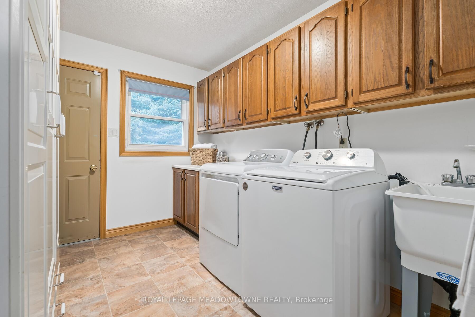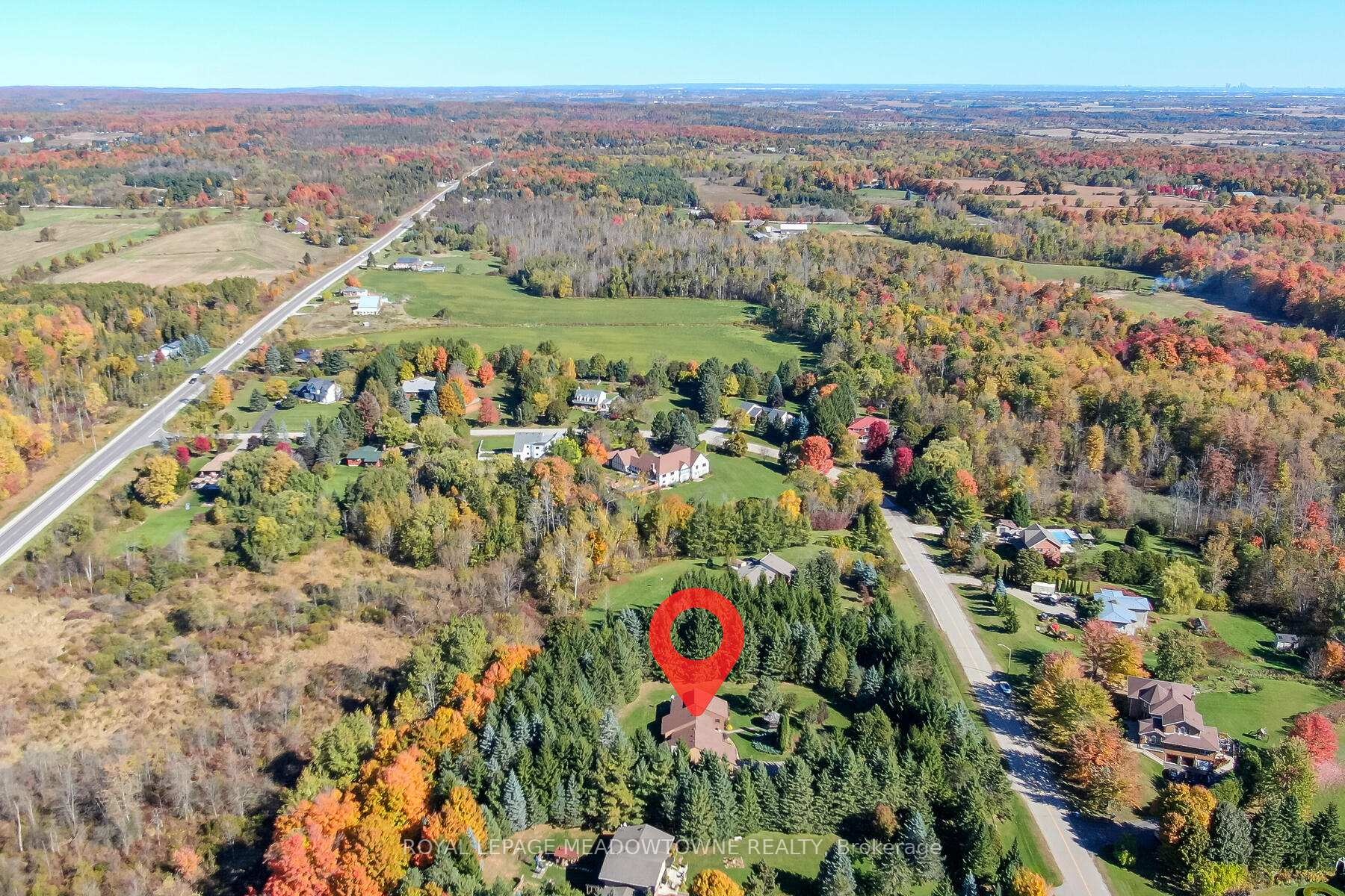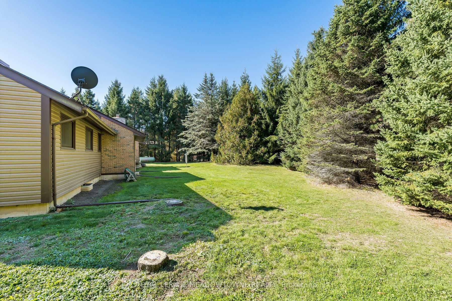 Fabulous bungalow on private 2 acre lot in prime location in Halton Hills. Quiet pocket of custom homes just minutes to Georgetown, Acton, the Limehouse kilns and Bruce trail. Lovingly cared for by original owners. The principal rooms are quite large and all have gorgeous country views. The family room features a wood-burning fireplace and gleaming hardwood floors. Enjoy the sun-filled eat-in kitchen with granite counters and a huge wall-to-wall pantry. The primary suite offers a walkout to the yard plus a 4-pc ensuite and two closets. Main floor laundry with garage and side door entrance. There is a massive lower level that is currently finished as a rec room with loads of room for the large pool table, exercise area and it also features a separate room ideal for a bedroom or storage space. Nature abounds this beautiful property with numerous evergreens and its own little backyard forest with trails. The two-car garage is oversize and there is a super long driveway for all your guests' vehicles and your toys too. Shingles 2018, Furnace rebuilt 2023, many updated windows. Survey available. Enjoy the peace and quiet of the country living just minutes to town.