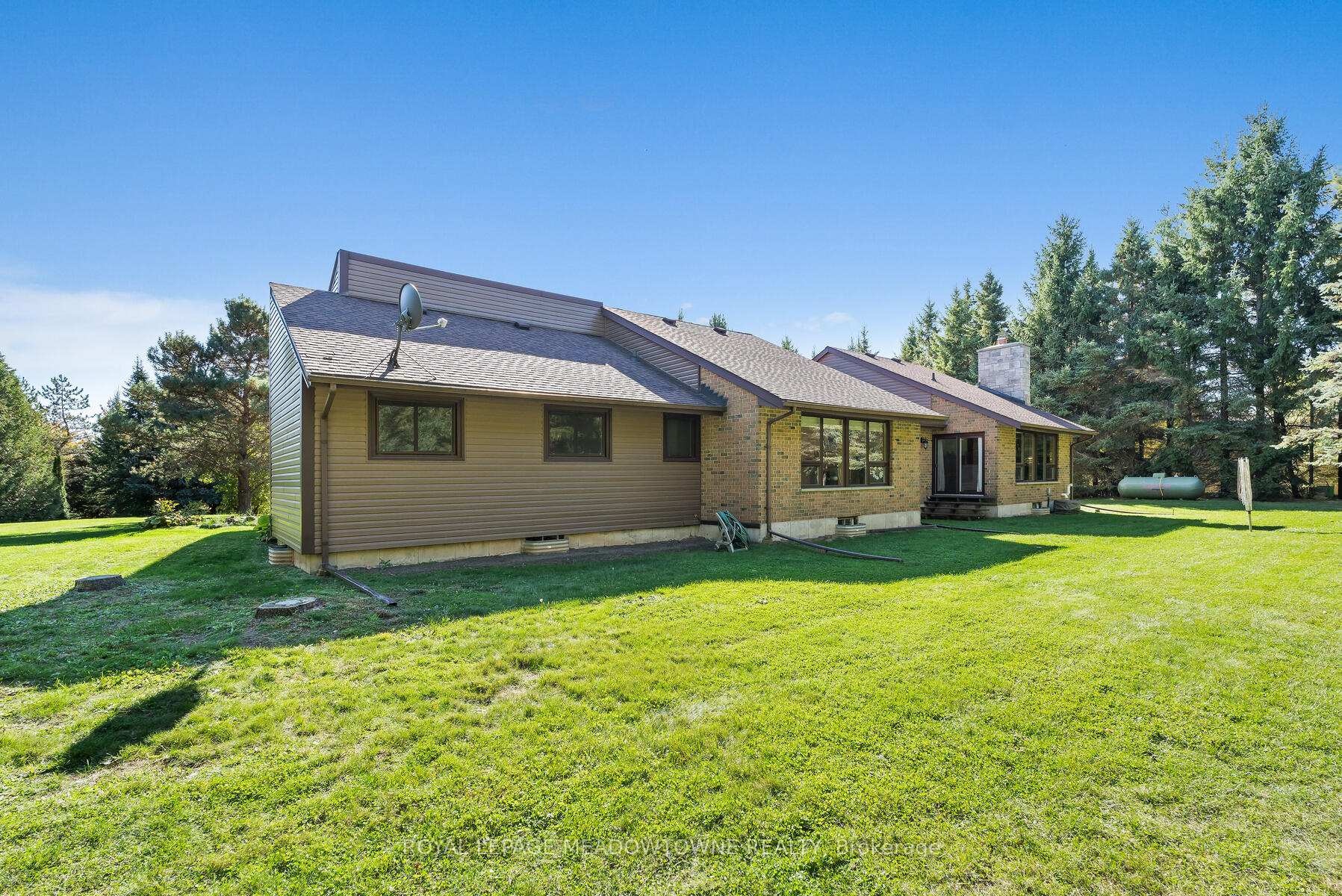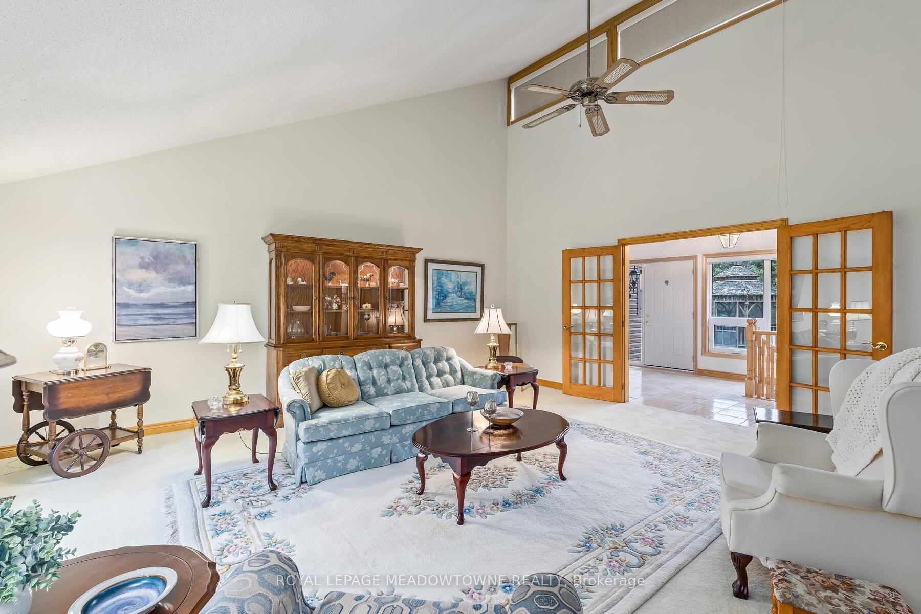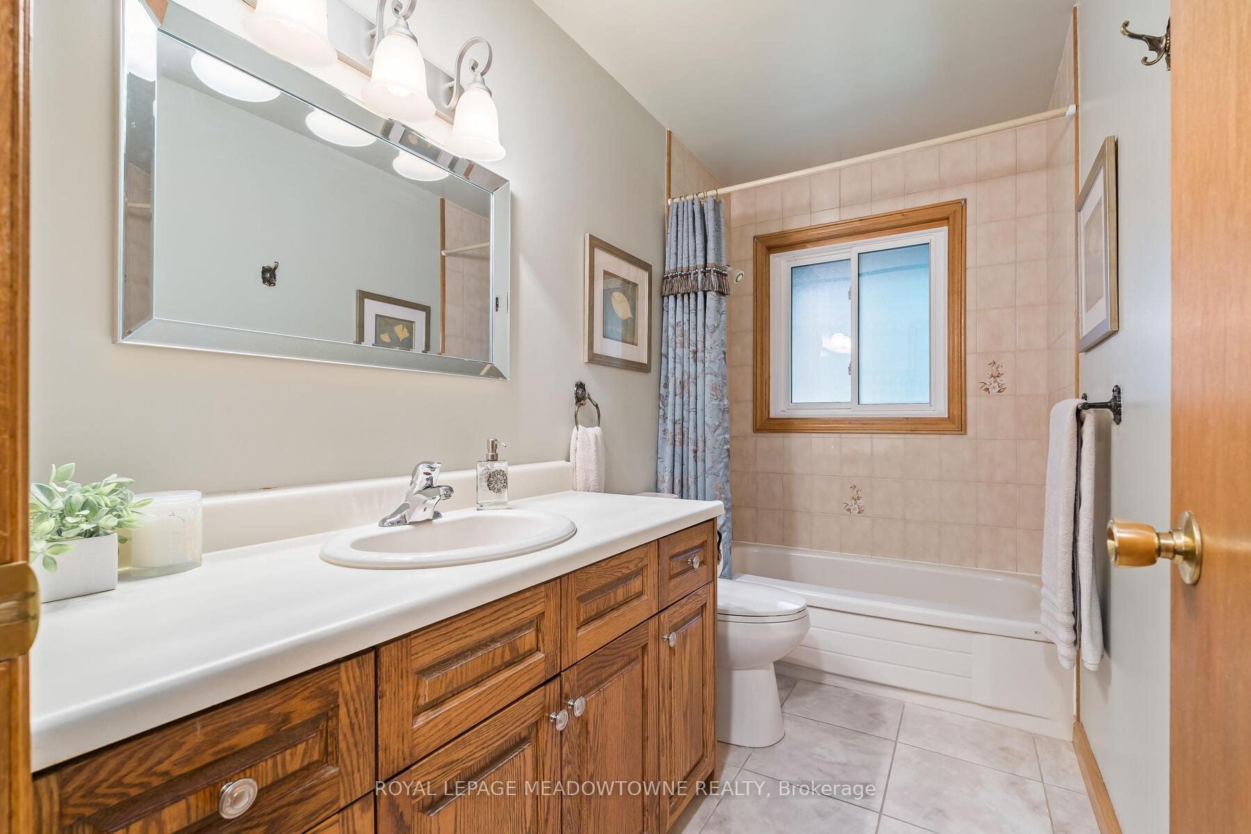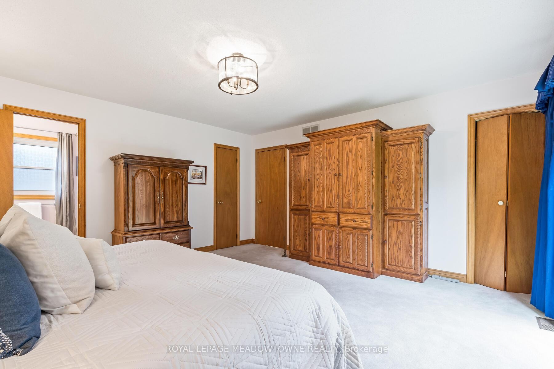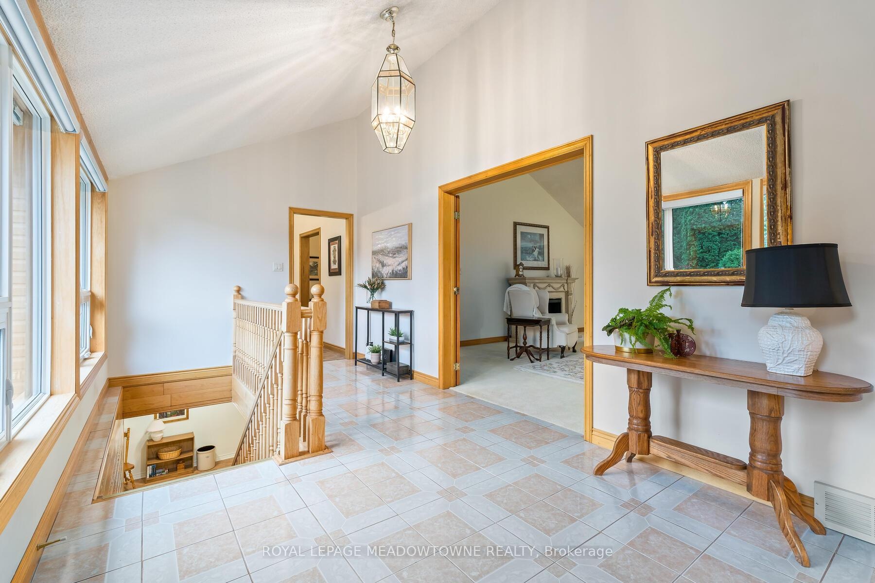 Fabulous bungalow on private 2 acre lot in prime location in Halton Hills. Quiet pocket of custom homes just minutes to Georgetown, Acton, the Limehouse kilns and Bruce trail. Lovingly cared for by original owners. The principal rooms are quite large and all have gorgeous country views. The family room features a wood-burning fireplace and gleaming hardwood floors. Enjoy the sun-filled eat-in kitchen with granite counters and a huge wall-to-wall pantry. The primary suite offers a walkout to the yard plus a 4-pc ensuite and two closets. Main floor laundry with garage and side door entrance. There is a massive lower level that is currently finished as a rec room with loads of room for the large pool table, exercise area and it also features a separate room ideal for a bedroom or storage space. Nature abounds this beautiful property with numerous evergreens and its own little backyard forest with trails. The two-car garage is oversize and there is a super long driveway for all your guests' vehicles and your toys too. Shingles 2018, Furnace rebuilt 2023, many updated windows. Survey available. Enjoy the peace and quiet of the country living just minutes to town.