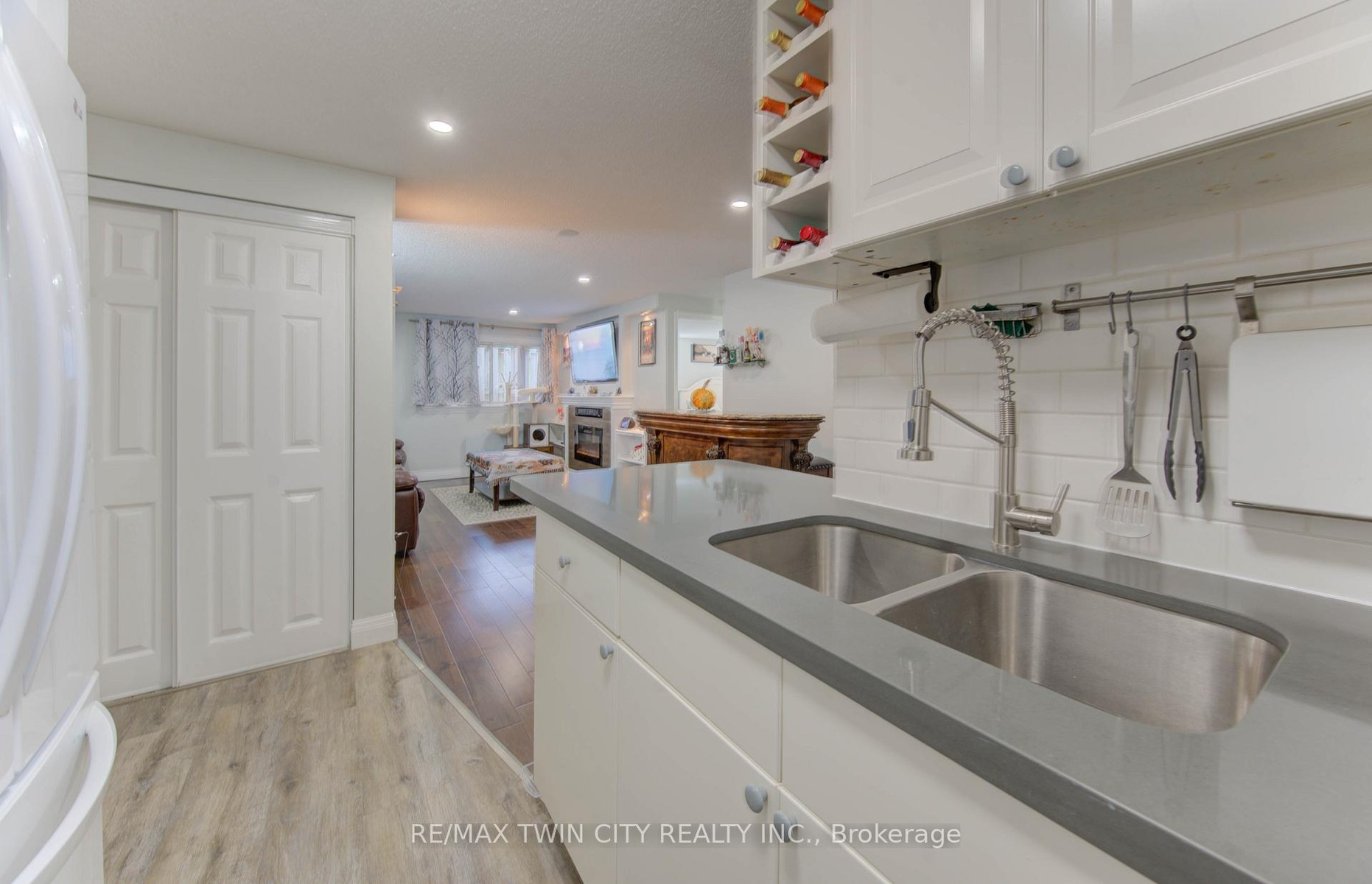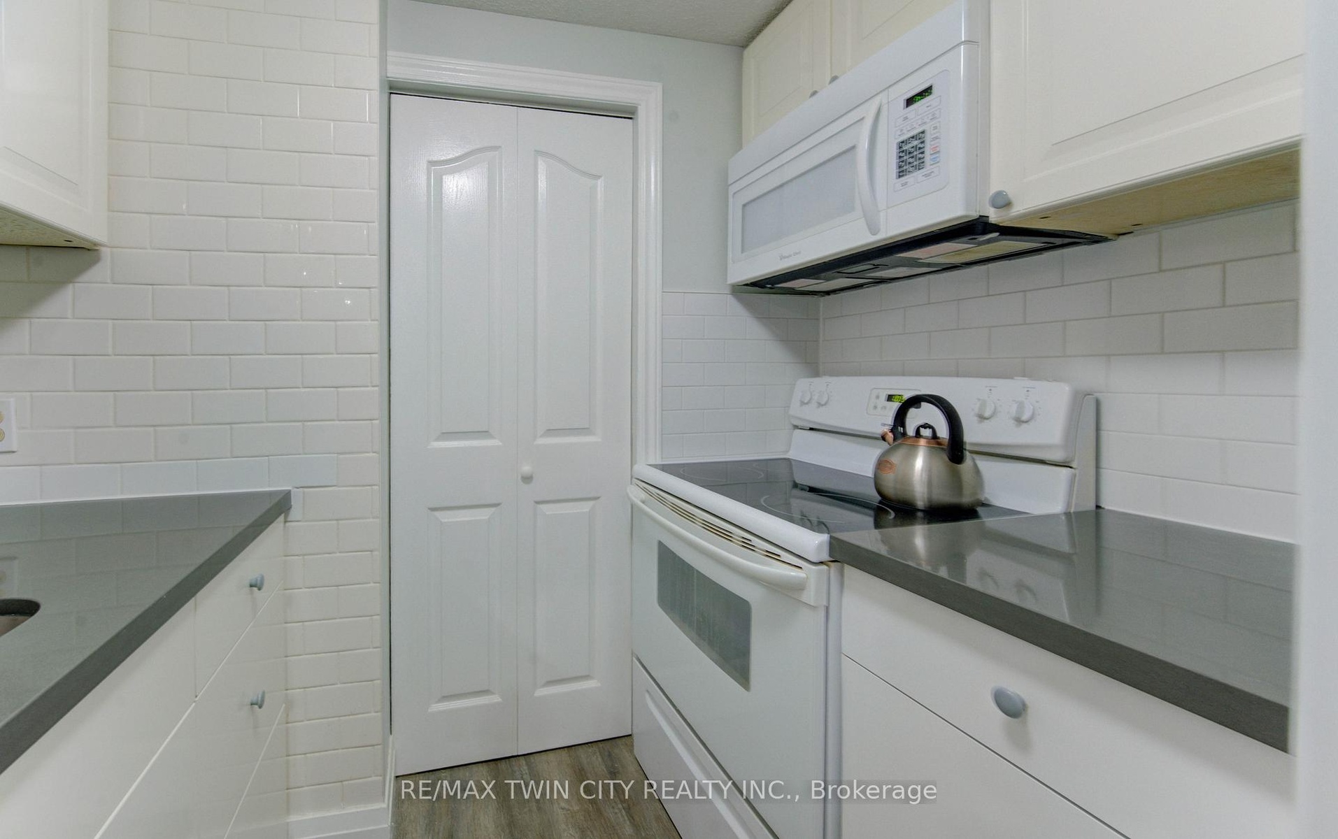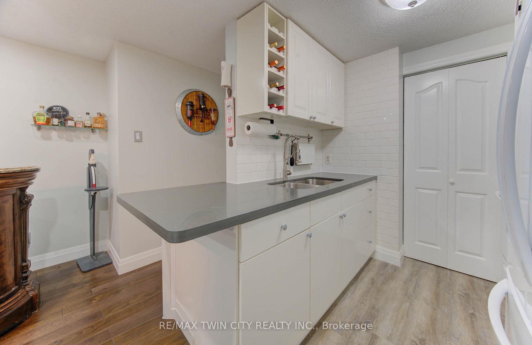 Step into this beautifully renovated 2-bedroom lower-level unit, offering 810 sq. ft. of bright, modern living space. Thoughtfully updated throughout, this home features pristine ceramic tile flooring, fresh contemporary pot lighting, and a built-in electric fireplace that adds warmth and style to the living area.The kitchen boasts brand-new quartz-style countertops, a subway tile backsplash, and new appliances including a fridge and microwave (2025). Enjoy the convenience of in-suite laundry and one exclusive parking space.Ideally located with quick access to the Conestogo Expressway, public transit, schools, shopping, and restaurants - plus the Grand River Trail system just minutes away for those who love the outdoors.Whether you're an empty nester, a first or second-time home buyer, or a savvy investor, this bright, turnkey property offers incredible value and low-maintenance living in a fantastic location.