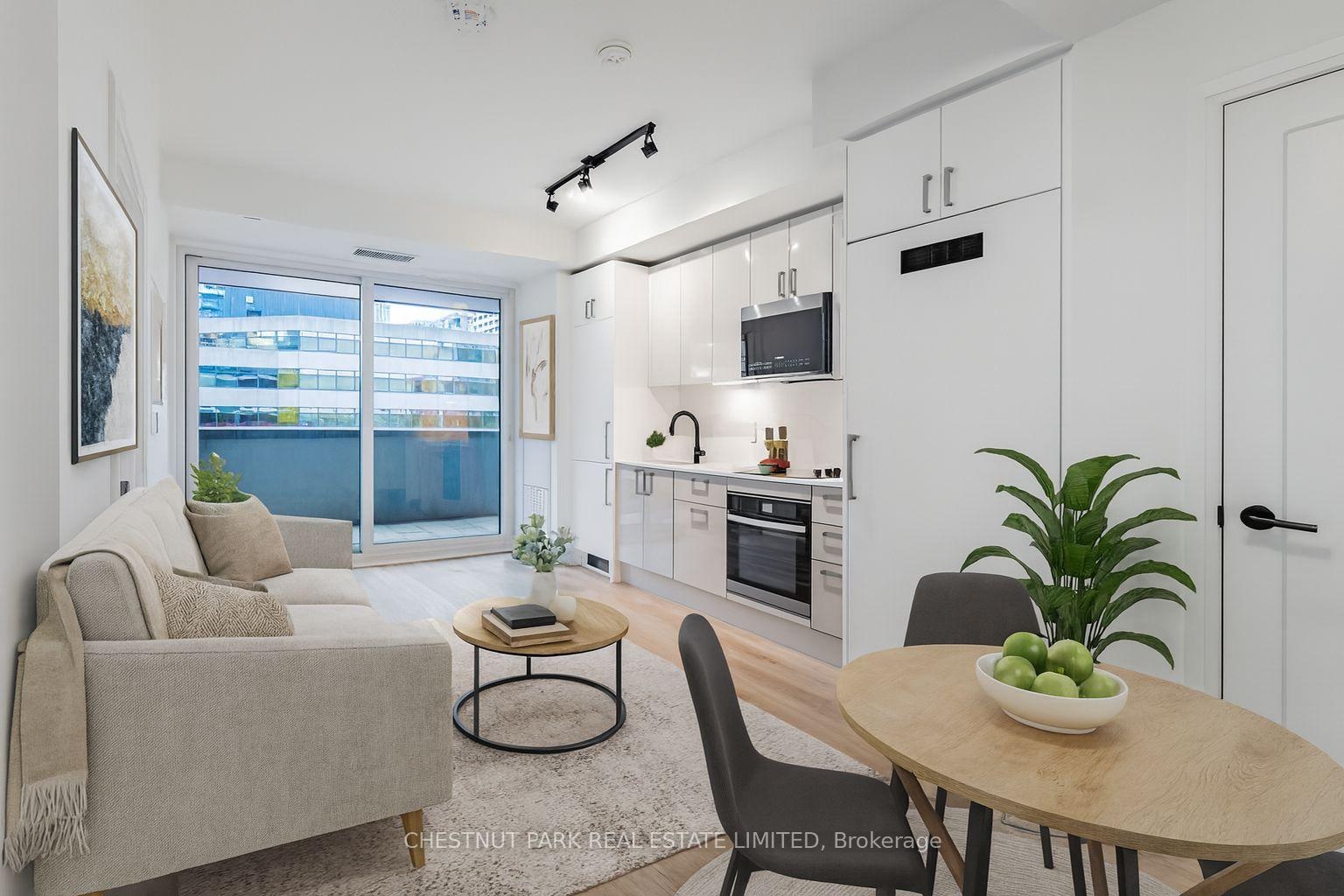 Step into elevated city living with this beautifully designed 1-bedroom, 1-bath suite at the brand-new Artistry Condos by Tribute Communities. This east-facing suite overlooks the quiet charm of St. Patrick Street, offering peaceful views and abundant natural light - a calm retreat in the heart of downtown.The open-concept layout showcases floor-to-ceiling windows, sleek contemporary finishes, and a modern kitchen with built-in stainless steel appliances and quartz countertops, plus full size in-suite laundry for added convenience. Enjoy seamless indoor-outdoor living with a rare 150 sq. ft. covered terrace (much larger outdoor space than other units with the same floor plan), ideal for relaxing or entertaining year-round. Experience world-class amenities including a rooftop lounge and BBQ area, fitness centre, yoga studio, party room, private dining lounge with full kitchen, art room with CN Tower views, billiards room, guest suite, TV lounge, grand lobby, and 24-hour concierge. Perfectly situated across from the AGO, and just steps to the University subway line, Eaton Centre, and Toronto's major hospitals, this location blends tranquillity with urban convenience. Life doesn't get better than this. Make this your new home. Window Coverings will be installed.
