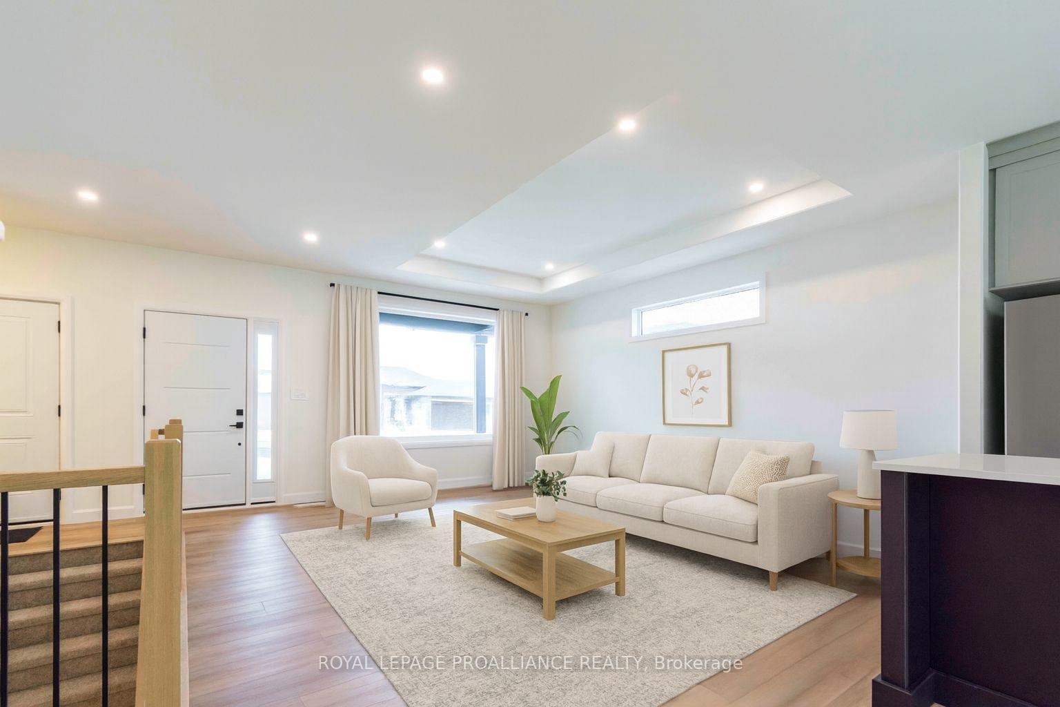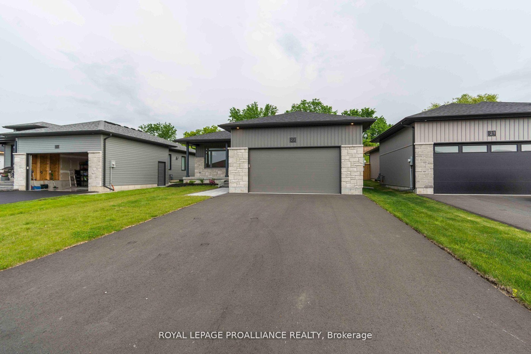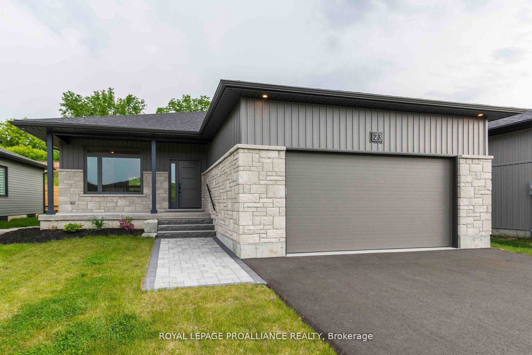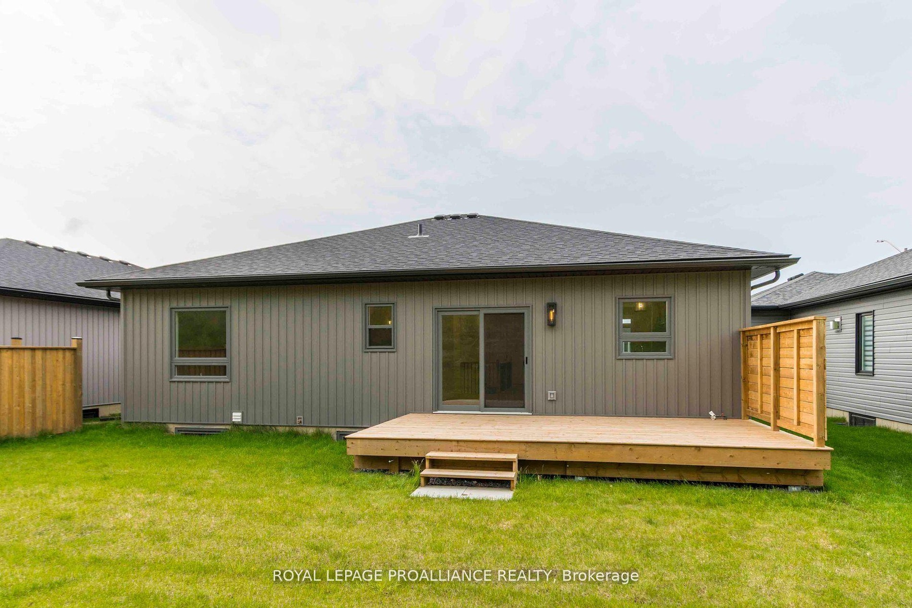 Better value than new AND it is new! This stunning & bright two bed two bath home sits on an extra deep and private lot with no neighbours behind. This gorgeous home offers - beautiful kitchen cabinets to the ceiling with crown moulding plus an island, 9 ft ceilings throughout main floor plus coffered ceiling in the living room, ensuite with gorgeous glass/tile shower and double vanity, main floor laundry, beautiful low maintenance flooring, huge rear deck, front porch, stone front walkway, paved driveway, sodded yard, double garage, 7 yr Tarion Warranty, plus lots lots more. Located in the very popular Orchard Lane subdivision with only single family detached homes with its own park. 10 minutes or less to CFB Trenton, Marina, Walmart, Golf Course, 401 & the Trent Severn Waterway. Ready for immediate possession! See it today - you will not be disappointed!
