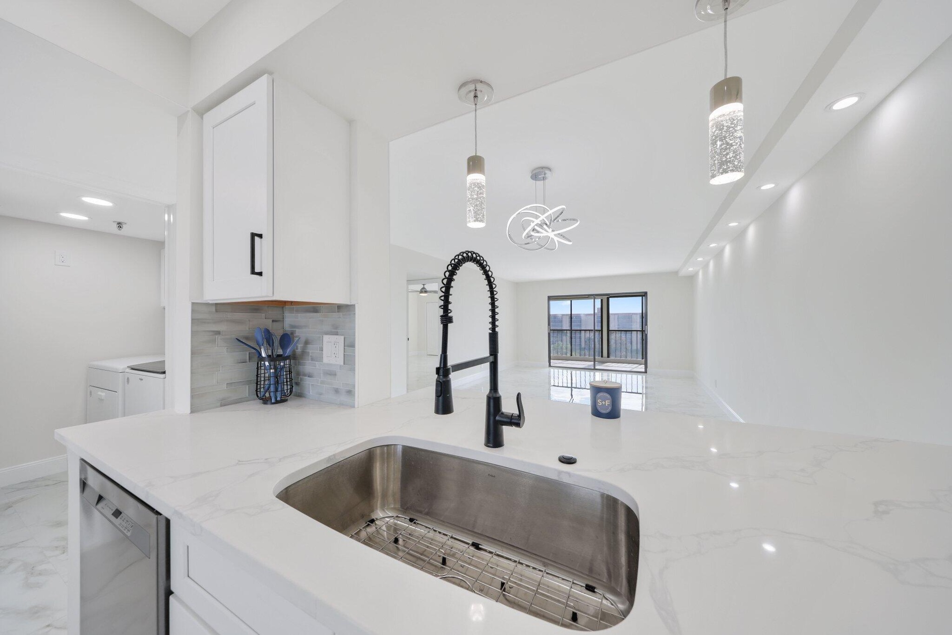 Welcome to your dream 2 bed, 2 bath LARGE FLOOR PLAN condo in a vibrant 55+ lifestyle community! This gem has undergone a full remodel, ensuring a modern living space where you will be the first resident. The open-concept kitchen is a showstopper, featuring stunning quartz countertops and custom cabinetry. Beautifully tiled floors add elegance throughout the home. Custom ceiling lighting brightens up the living area. Enjoy breathtaking 7th floor views of the lake and surrounding homes from your living space or balcony. Both bathrooms have been beautifully transformed with taste and functionality. Double vanity in the primary. The beautiful tile floors extend into the bedrooms as well as custom walk-in closets. No detail has been overlooked, from fresh paint to the smooth ceilings.