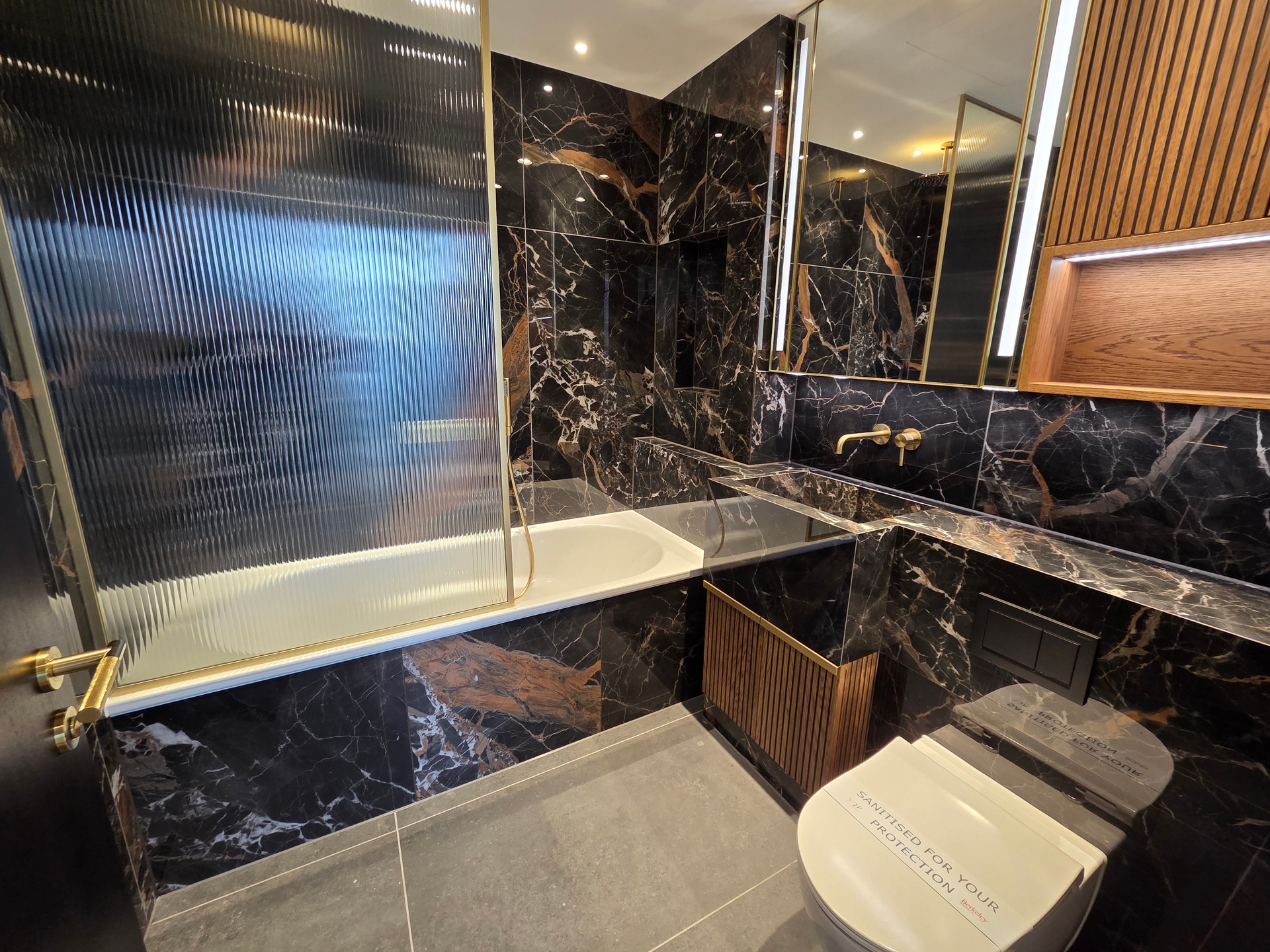 Upstairs, three further bedroom suites are arranged for comfort and privacy, each benefiting from its own stylish en-suite. The principal suite enjoys direct access to the terrace, abundant storage, and panoramic skyline views.