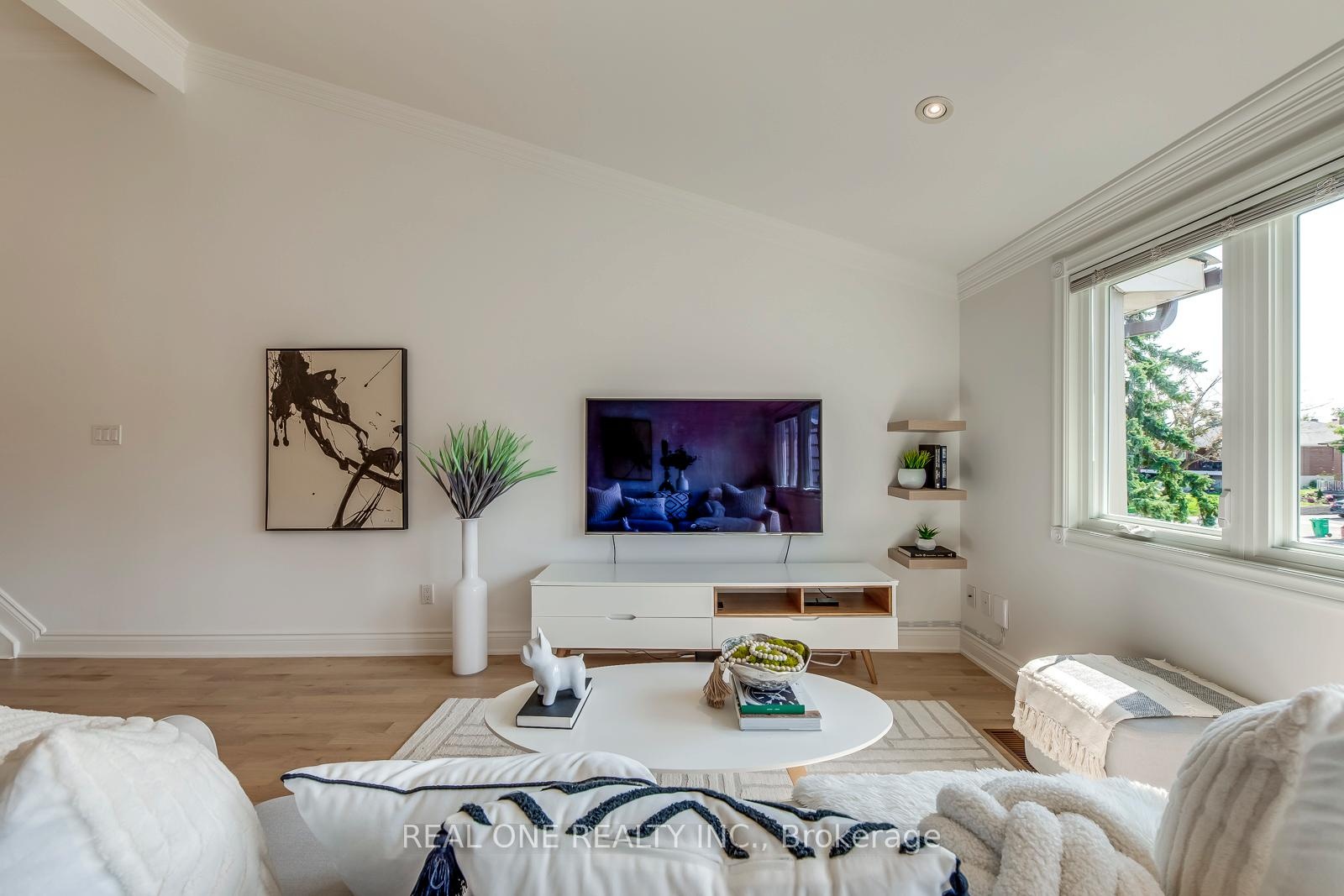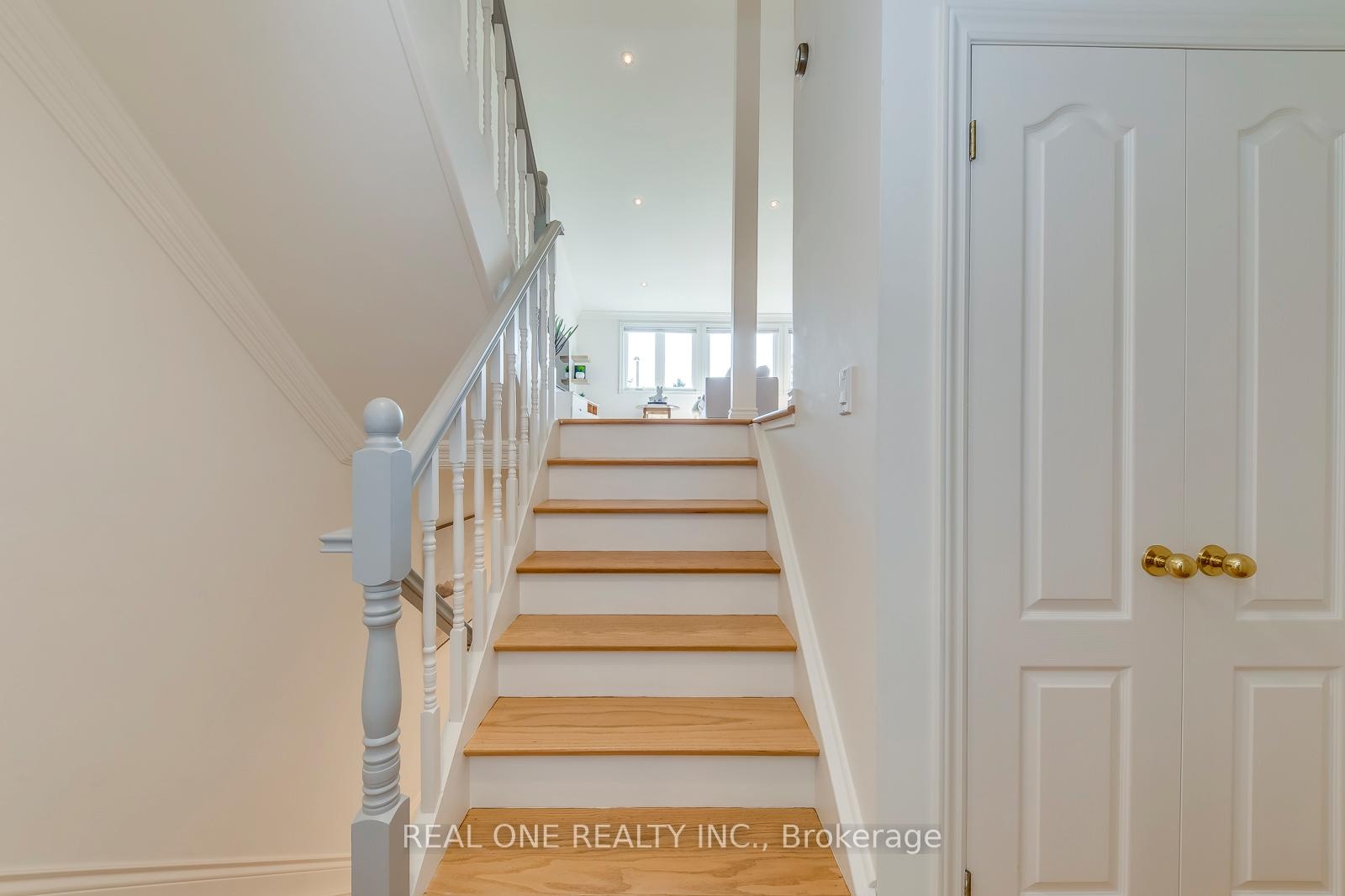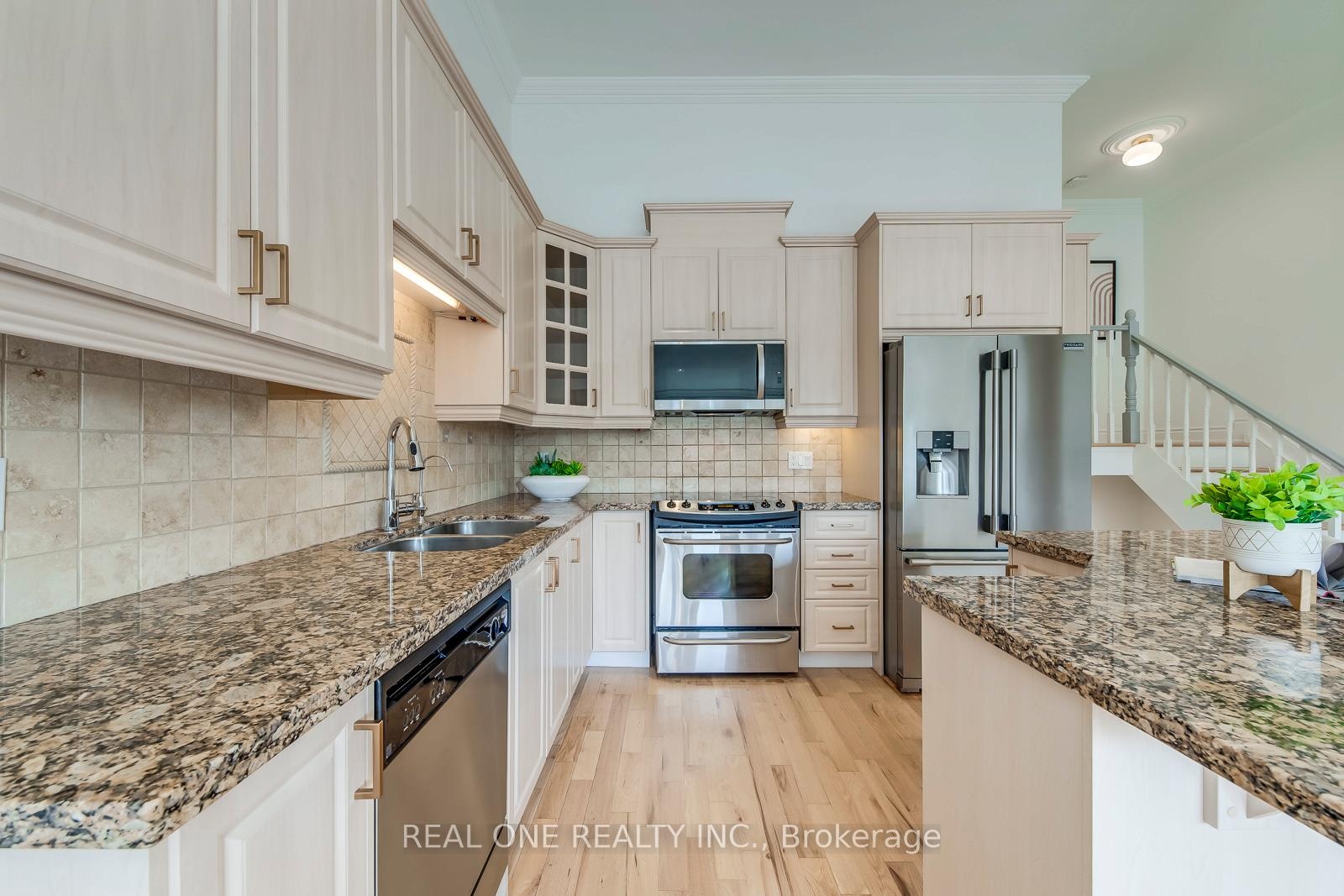 Beautifully renovated three-bedroom townhouse with over $120,000 invested in premium upgrades and convenient access to downtown Toronto. With a low maintenance fee of only $141/month, you get the benefits of freehold-style living without the high condo costs.The extra-long driveway accommodates parking for up to four vehicles-an exceptional feature rarely found in similar homes. This property offers a bright, stylish, and functional family-friendly layout, with no rental items-everything is fully owned, adding long-term value and peace of mind. The primary suite features a luxurious five-piece ensuite with high-end finishes, a modern design, and a custom oversized walk-in closet. The main floor offers an open-concept living and dining area with vaulted ceilings, recessed lighting, and hardwood flooring throughout. The custom chef's kitchen is a highlight, featuring stainless steel appliances, granite countertops, a designer backsplash, and a spacious breakfast bar perfect for gatherings. The five-level split floor plan is both child - and senior - friendly, maximizing space while providing privacy and easy access between levels. Bathrooms have been fully updated with contemporary finishes. The finished walk-out basement includes a separate entrance to the fully fenced backyard and a two-piece washroom, offering flexibility for extended family or personal use. The private backyard backs onto scenic green space and trails, ideal for outdoor dining, pets, gardening, or relaxation. This move-in-ready home close to major highways, shopping, parks, and GO Transit. With its extensive renovations, fully owned systems, spacious layout, and prime location, this townhouse represents outstanding value in today's market.