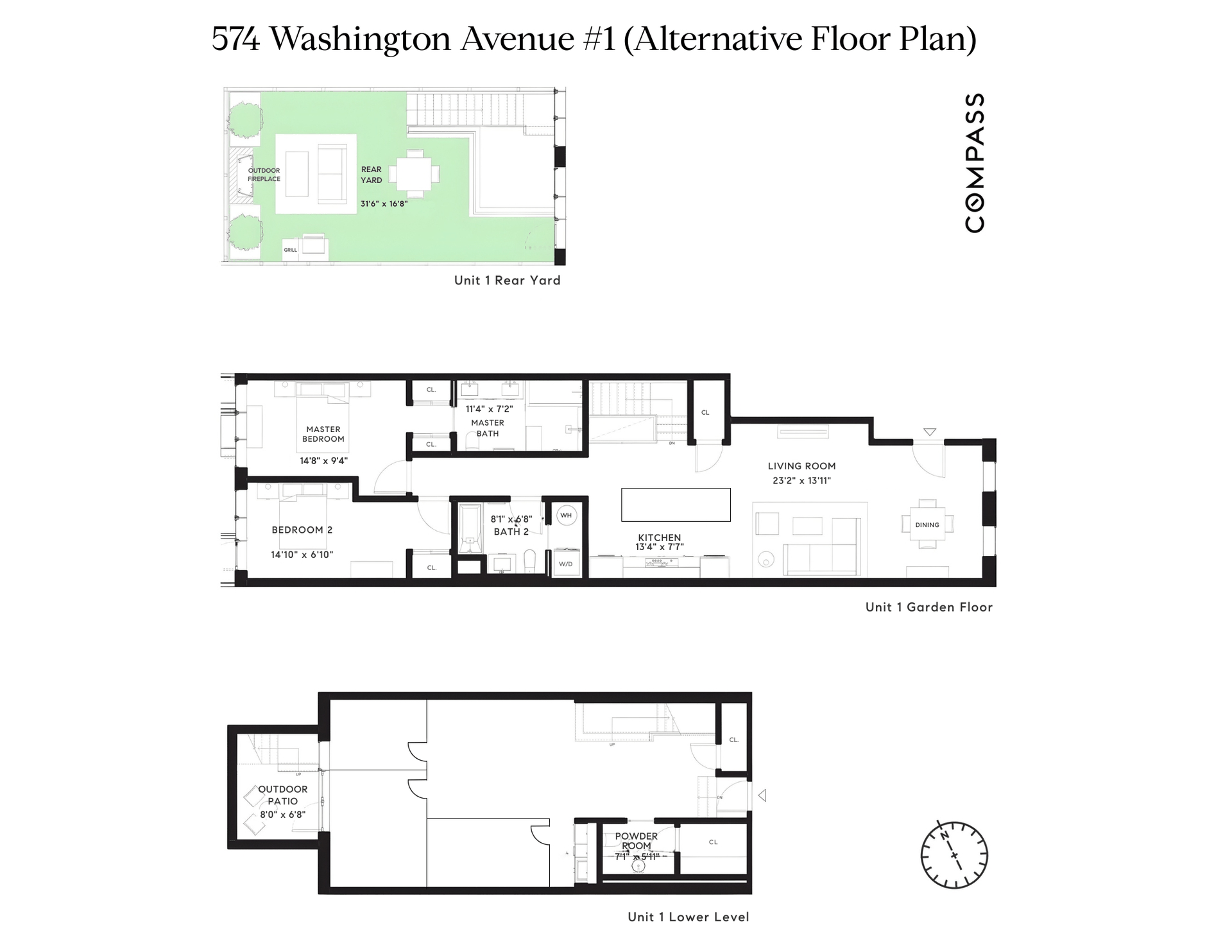 Welcome to spacious, modern, luxury living within a historic brownstone in coveted Clinton Hill! This sprawling duplex garden unit with its 2078 square feet of living space and large backyard oasis is the only home to become available among the four which were created four years ago within this stately 1899 Italianate mansion which was completely renovated and reimagined in 2021 on a tree-lined brownstone block of Washington Avenue. Built with the state-of-the-art in mind, the unit's expansive layout allows for customization of space to suit many lifestyles. Currently configured as a four-bedroom layout, the home offers two full-floor levels of elevated living, with expansive, open-plan living spaces on each level. The main level features high ceilings, open-plan living and dining area, and a spacious primary suite and large additional bedroom and full bath. The chefs kitchen is a triumph, featuring a top-of-the-line Miele appliance package that includes refrigerator, freezer, 5-burner gas range, exhaust hood, electric speed wall oven, convection wall oven, dishwasher, and wine refrigerator. Imported Italian oak cabinetry paired with natural honed white suede quartz counters and backsplash, zero-edge sink basin, Brizio matte black pull-down faucet, additional storage space, and breakfast bar. The unit's fully developed private backyard area is fitted with outdoor grill and gas-lit fireplace, lighting and landscaping, a perfect retreat for outdoor living and entertaining under the stars on peaceful Brooklyn evenings at home. Descending the gracious stairway, a large open space greets you with wet bar, its own private patio, and bath. There's ample space here to subdivide into additional rooms, or leave open as an amazing living and entertaining space. Each of the three stylish bathrooms include features such as Italian porcelain tiles, deep soaking tubs (in the main level baths), rain head thermostatic shower sets, floating vanities finished in Khaki wood, Laufen Kartell toilets and modern fixtures in a sophisticated matte black finish. The home is equipped with beautiful hardwood floors throughout, home automation, built-in speakers, central heating and cooling, washer and dryer, additional on-site storage space, Clinton Hill is a Brooklyn neighborhood rich in cultural diversity, known for a welcoming feel of its streets and inhabitants, and reputed for its abundance of historic Victorian architecture, and proximity to green space. the quintessential blend of quiet esthetic elegance of a historic past and a lively abundance of activity, arts, and entertainment. Public crown jewels such as The Brooklyn Museum, Brooklyn Botanical Gardens, the Brooklyn Central Library and sports and entertainment hub, Barclay’s Center, offer the local community amenities sought after far and wide. Grand Army Plaza, Prospect Park’s gateway to an array of art, free concerts, ballfields, playgrounds, public events, and greenmarkets. A myriad of independently owned eateries, and coffee shops include neighborhood notables like Maison May, Aita, The Finch, Speedy Romeo, Locanda Vini & Olii, Emily, Sisters, and Graziella’s are all within easy reach - while offering easy and direct connectivity via the C and G lines to anywhere in Brooklyn, Manhattan and beyond.