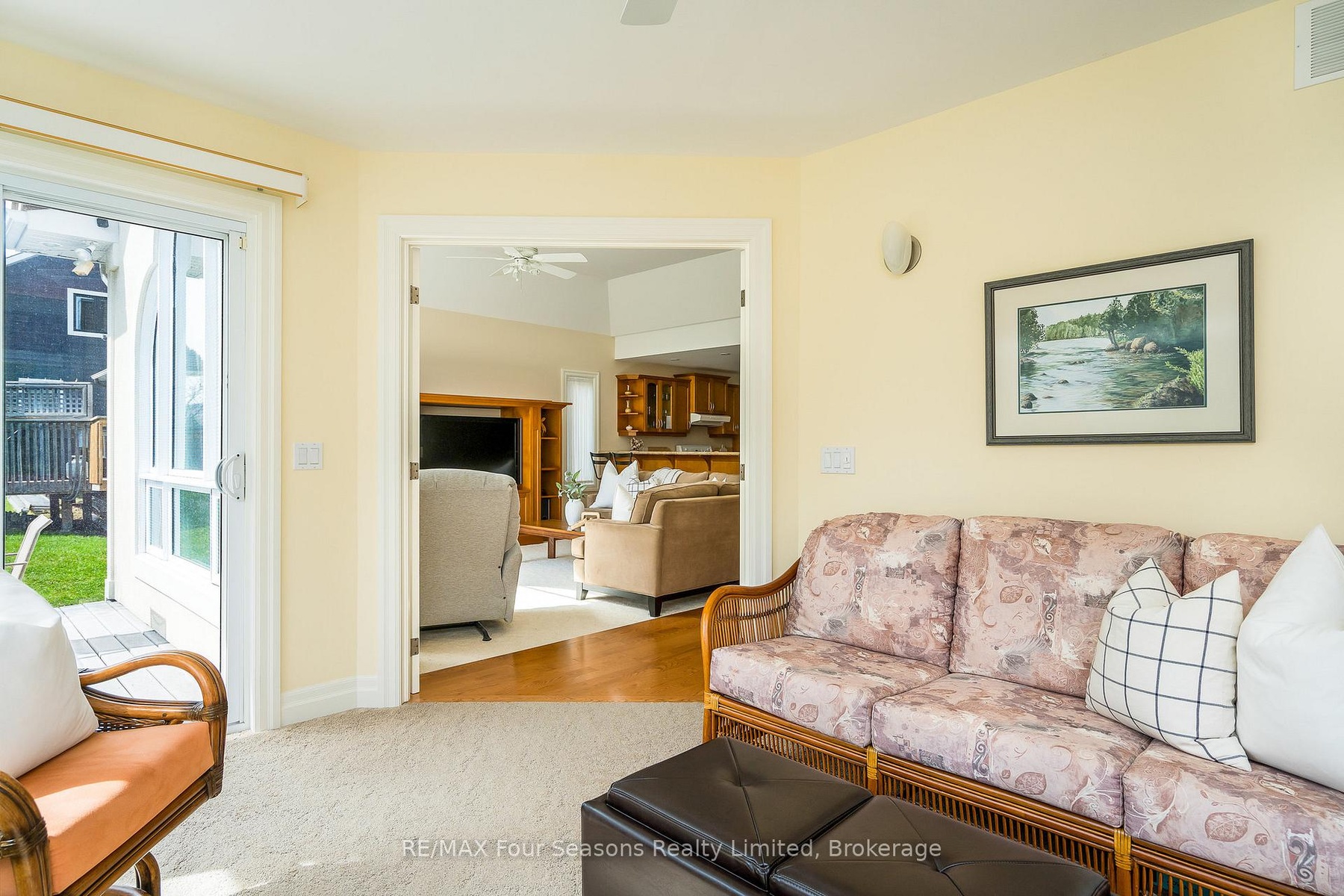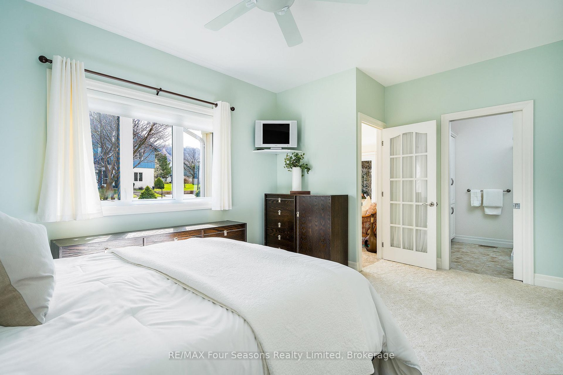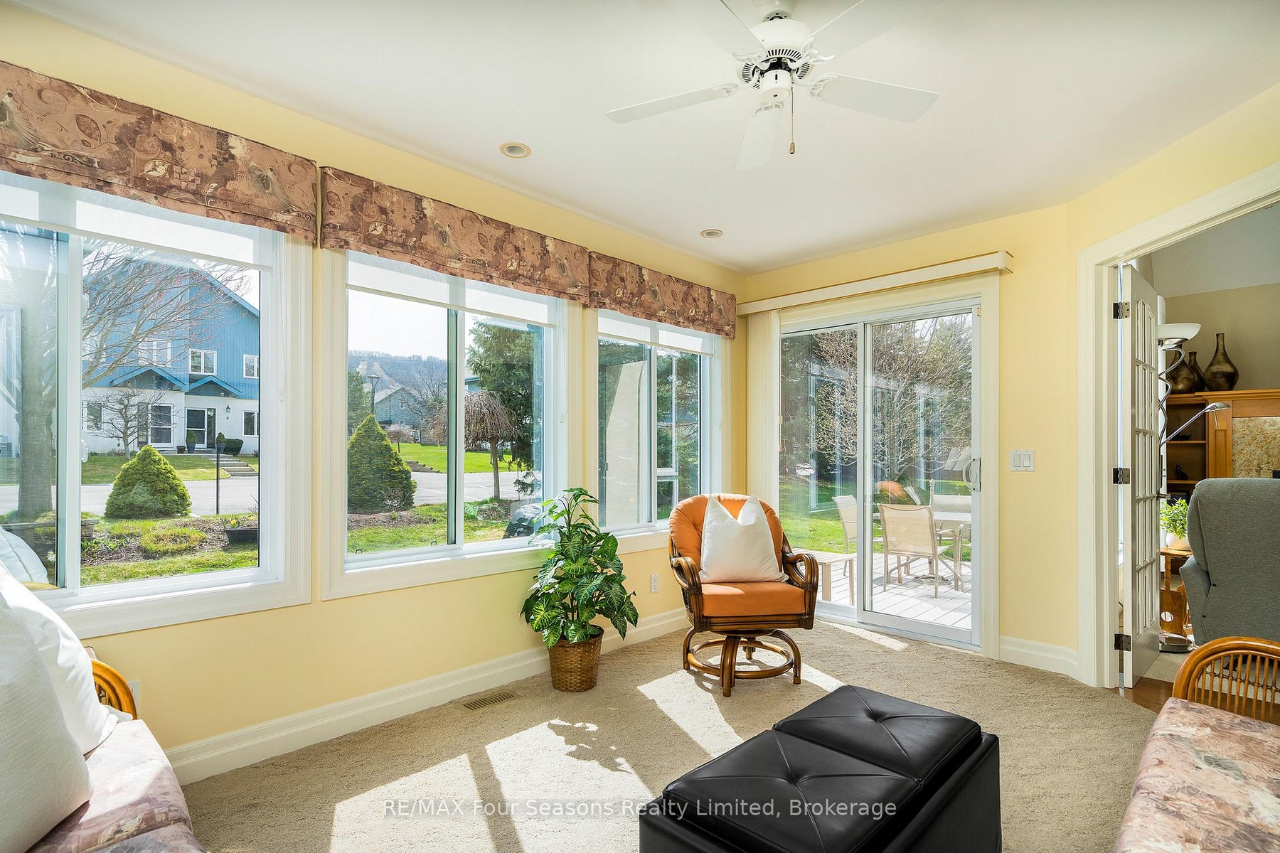 EXECUTIVE PORTER SKELTON CUSTOM HOME | 5 BEDS | 3 BATHS | 3200+ SQ FT (LIVING SPACE) | BLUE MOUNTAIN VIEWS | STEPS TO THE VILLAGE~ Four- season retreat in the heart of Ontario's premier recreational destination! This custom-built Residence offers over 3,200 sq ft of exquisitely finished living space, 5 bedrooms, 3 full bathrooms, and breathtaking views of Blue Mountain ~just a 5-minute walk to the iconic Village at Blue. Situated on an extensively landscaped 122' x 61' lot in a prestigious, quiet neighborhood, this home boasts gorgeous perennial gardens and a backyard oasis perfect for relaxing or entertaining. MAIN LEVEL HIGHLIGHTS: Open-concept gourmet kitchen with a large island, stone countertops, and abundant cabinetry, Separate formal dining room, Four-season sunroom with walkout to composite deck (14.7 x 11.3 ft)Spacious family room with soaring cathedral ceilings and cozy gas fireplace Private main floor primary suite with elegant 3-piece ensuite, Two additional main floor bedrooms and a 4-piece bath, Convenient main floor laundry with inside entry to the oversized insulated garage (21.11 x 12.6 ft) LOWER LEVEL PROFESSIONALLY FINISHED IN 2017 (PORTER SKELTON):Expansive family/recreation room with gas fireplace, Two sizeable guest bedrooms, 3-piece bathroom, Large hobby/workshop room~ ideal for ski or bike tuning, Cold room + ample storage, 200 Amp electrical service. Additional Features: Covered front porch | Interlocking driveway | Concrete front steps | New roof (2021) THE LOCATION~ Steps from Blue Mountains world-class skiing and year-round activities. Just minutes from the shores of Georgian Bay, championship golf, private/public ski clubs, the Georgian Trail, marinas, and so much more. Whether you're interested in boutique shopping, fine dining, arts & culture, or outdoor adventure, this is your opportunity to elevate your lifestyle in one of Southern Georgian Bay's most coveted communities. Experience the best of Blue Mountain Living.