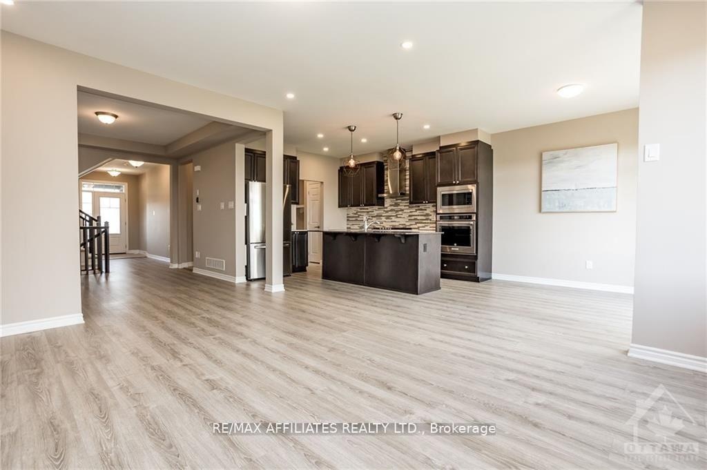 This Detached Home is Located in a Prime Location in Kanata! Off of Abbot St. E, you are Surrounded by Tons of Parks, Trails, Schools, Amenities & Easy Access to Transit. Home Shows Very Well & was Professionally Cleaned. This Home Features 3 Bedrooms, 3 Bath w/2,150 Square Feet. 9 Ft Ceilings on the Main Floor, Great Rm/Living Rm Features Pot Lights, Spacious Dining Rm & Eat-In Area. Gas Fireplace w/Tile Feature Wall has a Grand Feel. The Kitchen is Spacious & Open Concept to the Living Rm & Features a Breakfast Bar, Granite Countertops, High-End Stainless Steel Appliances, Tile Backsplash & a Pantry. Bonus Mudroom Off the Garage w/Extra Storage. 2nd Level Features 3 Generous Sized Bedrooms & 2nd LEVEL LAUNDRY. 4 Piece Main Bath is a Cheater Ensuite Off Bedroom 2. Primary Bedroom Features a Large WIC & 4 Piece Ensuite. The Basement is Unfinished. Backing onto Pie-Shaped Lots Allows more Space Between Neighbours.