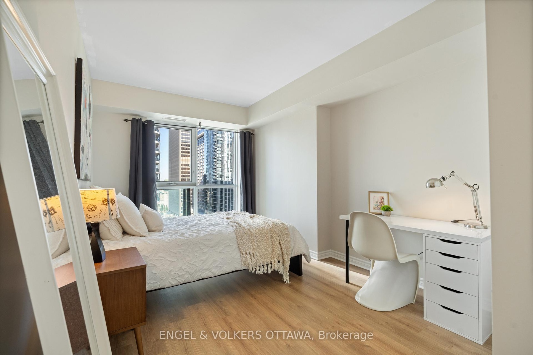 INCREDIBLE DEAL - large 1 bedroom condo with premium underground parking and storage locker UNDER $340K in the heart of downtown! This beautifully furnished 1-bedroom corner suite offers 655 sq ft of thoughtfully designed living space, featuring an open-concept layout with stunning floor-to-ceiling, wall-to-wall windows that fill the home with natural light. Spacious primary bedroom easily accommodates a desk and offers generous closet space. Freshly painted throughout, this home is move-in ready! Enjoy the convenience of in-suite laundry, an underground parking spot, and a dedicated storage locker. An ideal pied-a-terre for professionals working downtown, or anyone seeking a stylish and low-maintenance city retreat. Exceptional value in a prime location! Food Basics at your doorstep and just moments to Parliament Hill, the Bank of Canada, World Exchange Plaza, Lyon Street LRT, and an array of cafes, restaurants, and boutique shops! *Can be sold fully furnished!*