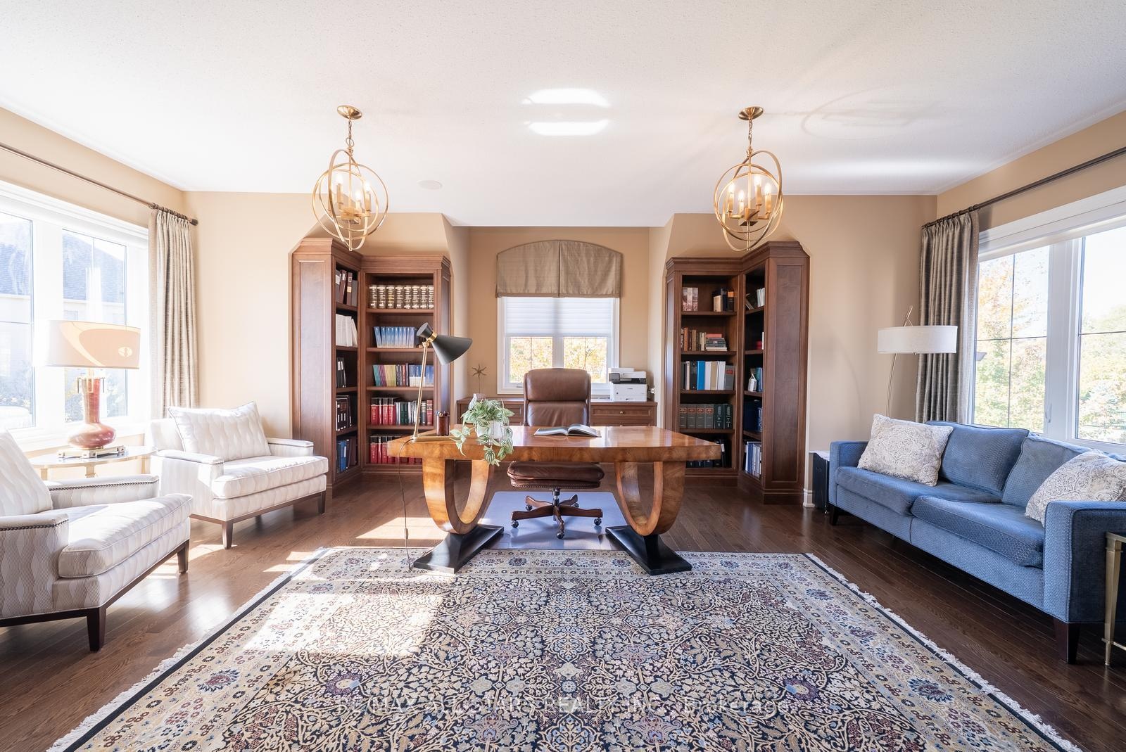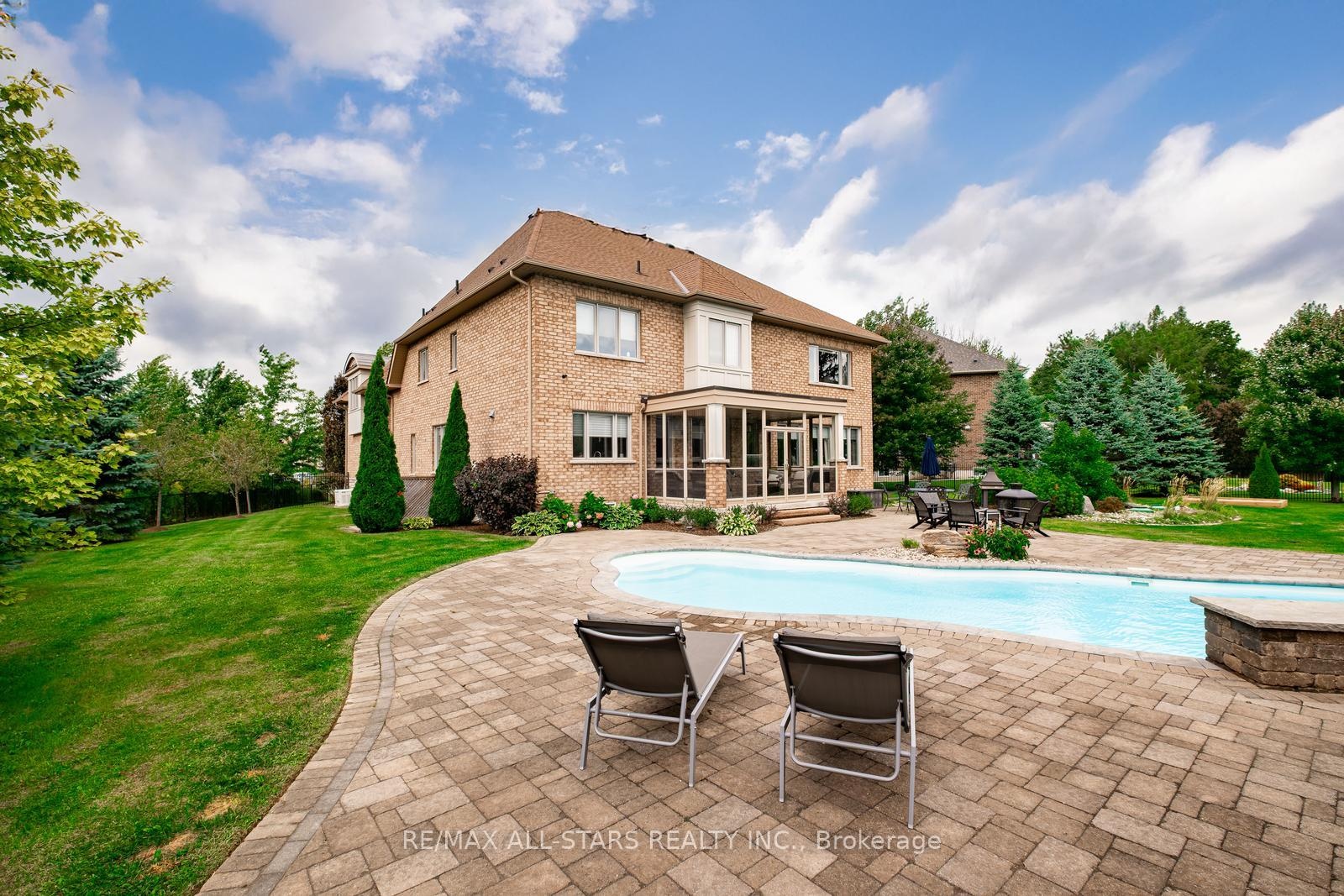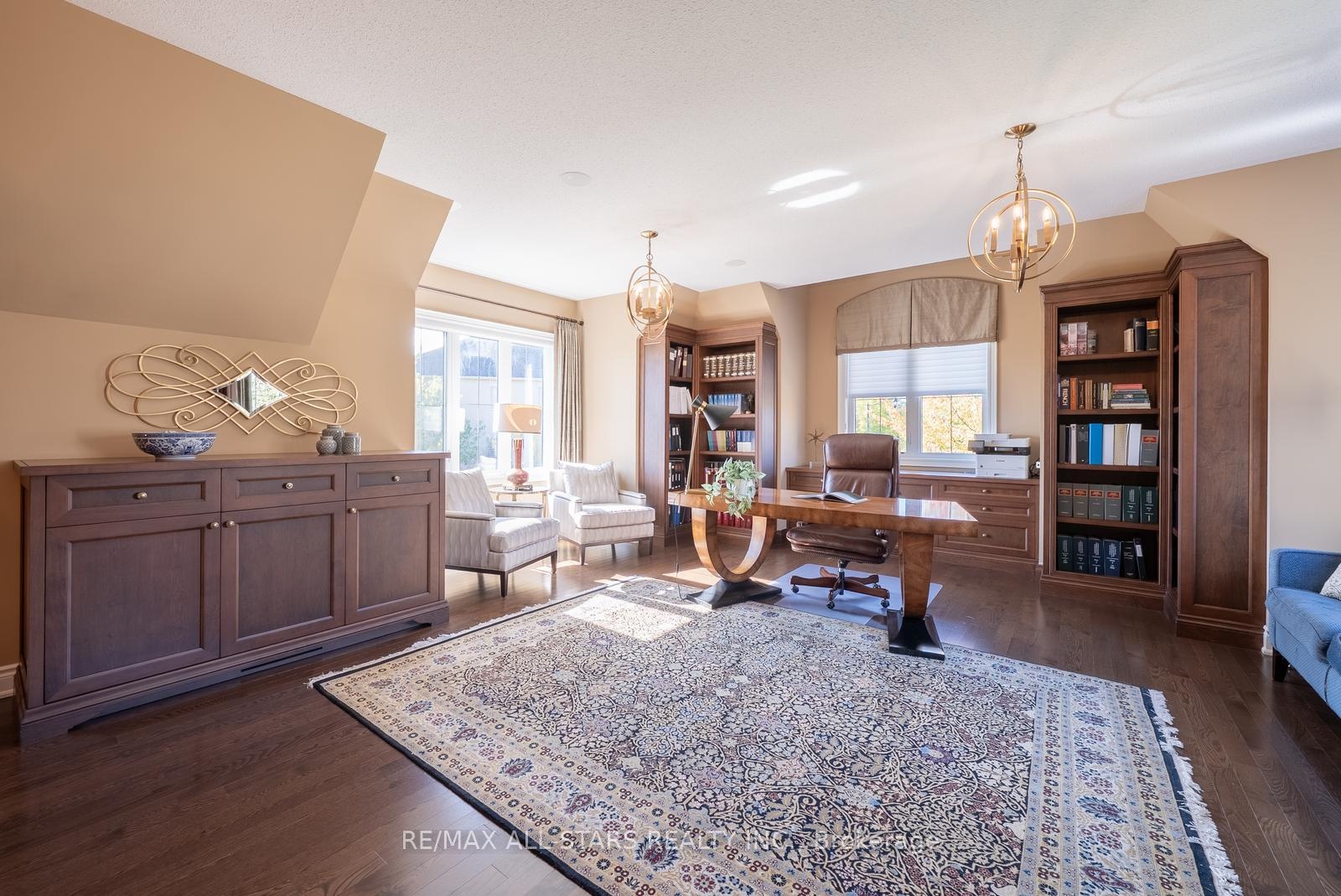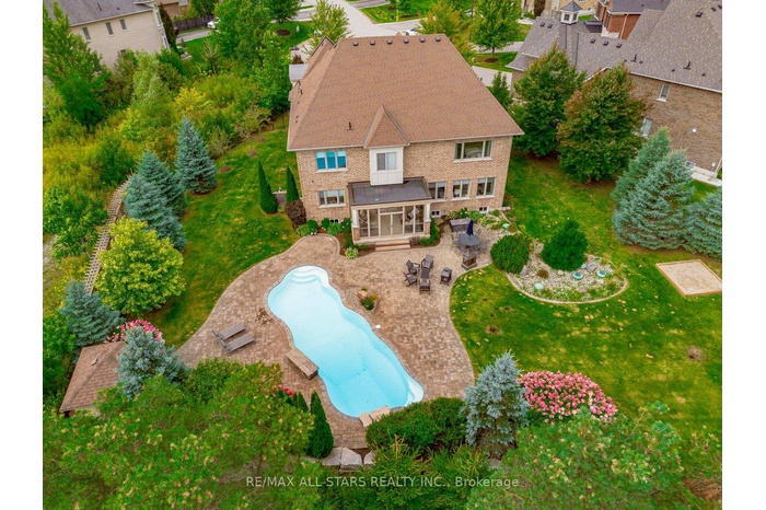 35 Somer Rumm Court in Ballantrae, a stunning Geranium-built home offering over 5,500 sq. ft. of luxurious living space on a quiet, family-friendly court. Featuring 4+1 bedrooms, 5 bathrooms, a rare 3-car garage, and soaring 10-foot ceilings on both the main and upper levels, this home blends elegance, comfort, and functionality.From the grand foyer, you're greeted by an open feel that continues throughout. To the left, a bright home office overlooks the front yard perfect for remote work or quiet reading. The formal dining room, filled with natural light, offers the ideal space for entertaining family and friends.At the heart of the home, a chef-inspired kitchen features a large island, stainless steel appliances, and ample cabinetry. The oversized eat-in area opens to the living room, where custom built-ins frame a stone fireplace creating the perfect backdrop for family gatherings. Just off the kitchen, a charming sunroom provides a space for morning coffee or casual entertaining.Step outside to your private backyard oasis an expansive half-acre pie-shaped lot gardens, a sparkling in-ground pool, and no rear neighbours. Backing onto greenspace, this outdoor retreat offers the perfect blend of privacy and beauty.Upstairs, the 10-ft ceilings continue, enhancing the sense of space and light. The luxurious primary suite features a cozy fireplace, two walk-in closets, and a spa-like 5-piece ensuite. Three additional bedrooms each have ensuite access, and large laundry room adds convenience. A versatile loft, accessed by a separate staircase, offers endless flexibility ideal for an office, studio, or guest suite.The finished basement extends the living space with room for recreation, movies, or guests, complete with a 3-piece bath and generous storage.Located minutes from Stouffville and Aurora, this home offers peaceful living with modern conveniences close by top-rated schools, golf courses, trails, and shopping all within easy reach.