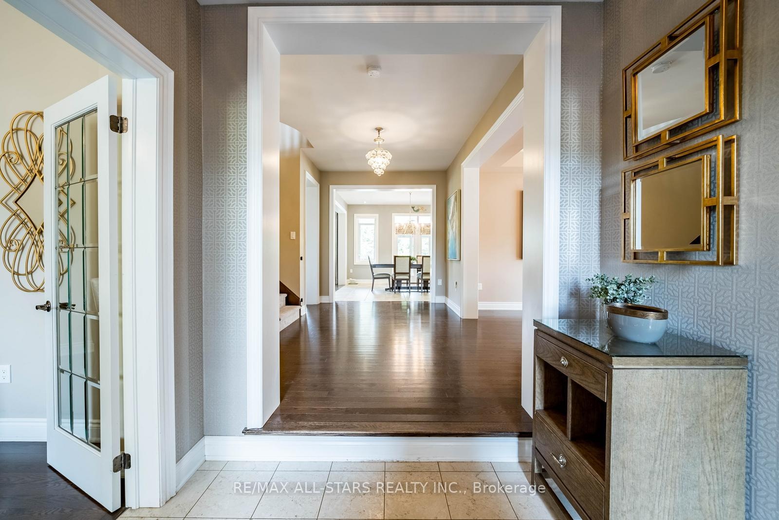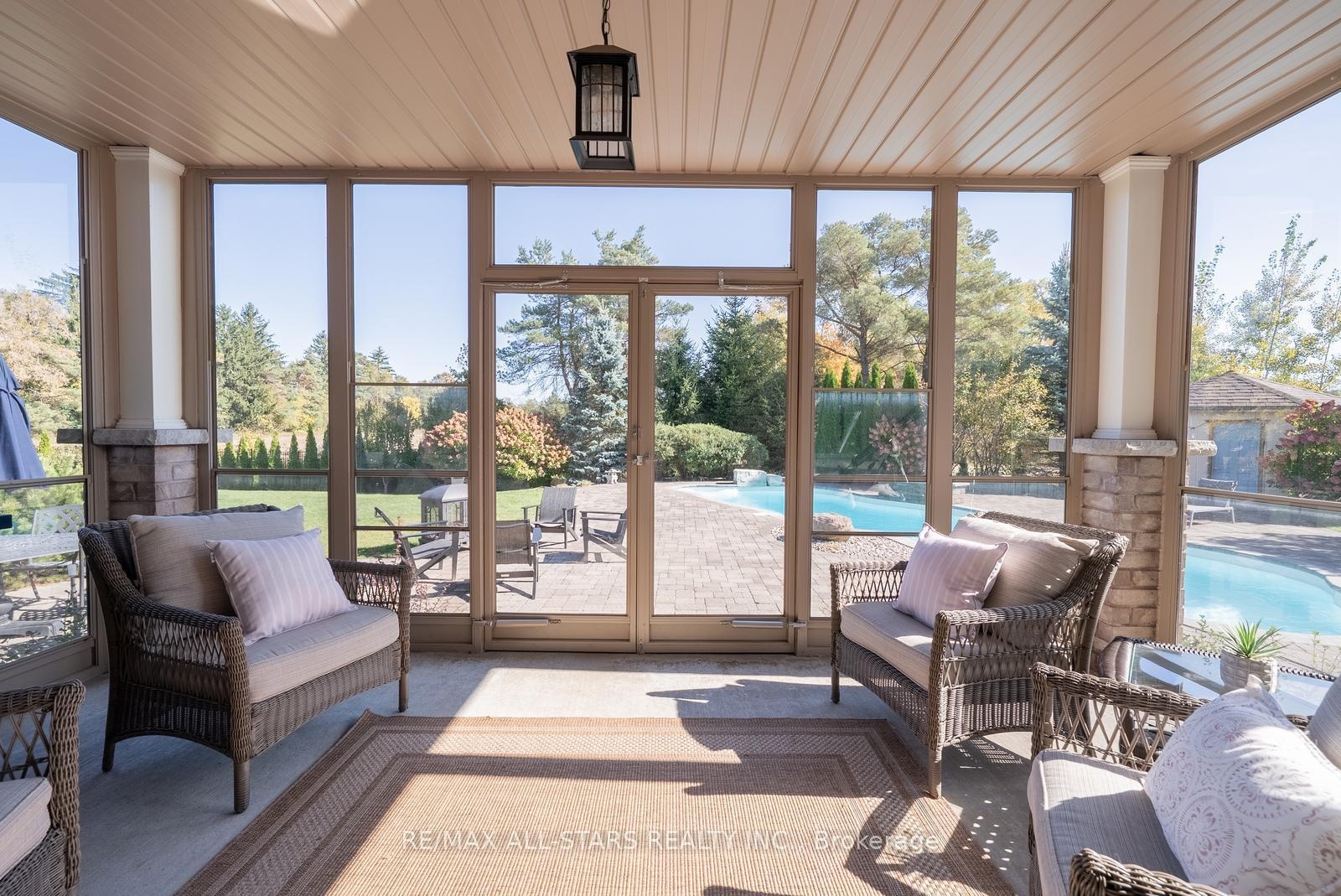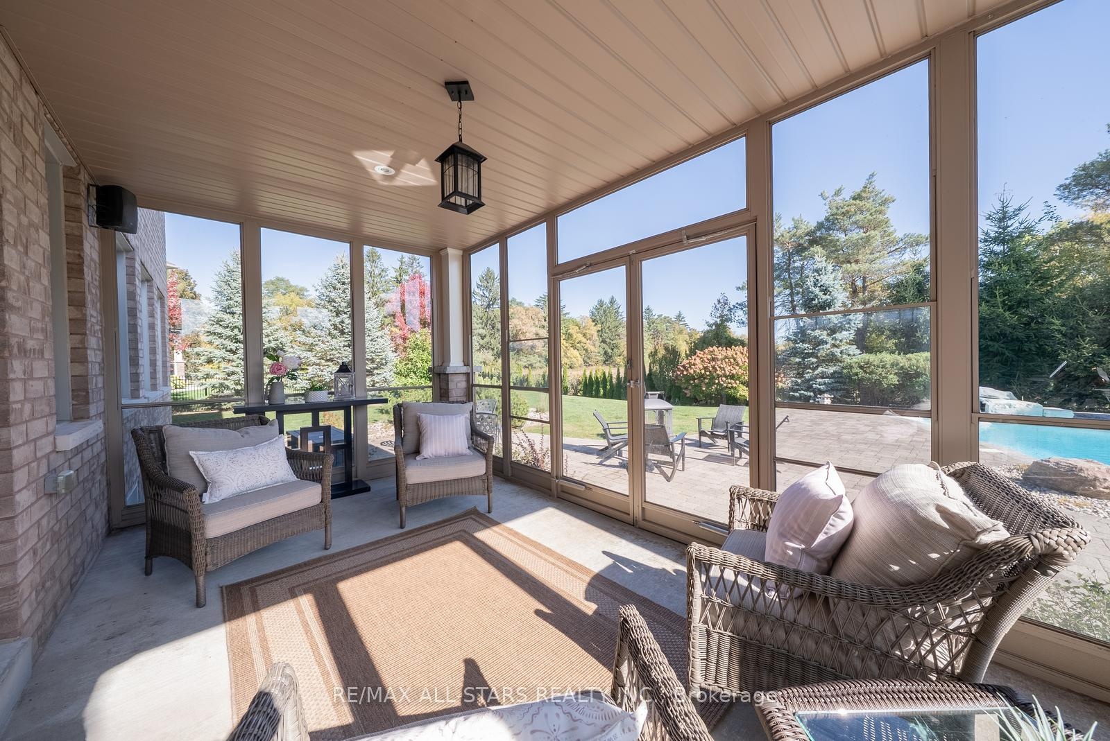 35 Somer Rumm Court in Ballantrae, a stunning Geranium-built home offering over 5,500 sq. ft. of luxurious living space on a quiet, family-friendly court. Featuring 4+1 bedrooms, 5 bathrooms, a rare 3-car garage, and soaring 10-foot ceilings on both the main and upper levels, this home blends elegance, comfort, and functionality.From the grand foyer, you're greeted by an open feel that continues throughout. To the left, a bright home office overlooks the front yard perfect for remote work or quiet reading. The formal dining room, filled with natural light, offers the ideal space for entertaining family and friends.At the heart of the home, a chef-inspired kitchen features a large island, stainless steel appliances, and ample cabinetry. The oversized eat-in area opens to the living room, where custom built-ins frame a stone fireplace creating the perfect backdrop for family gatherings. Just off the kitchen, a charming sunroom provides a space for morning coffee or casual entertaining.Step outside to your private backyard oasis an expansive half-acre pie-shaped lot gardens, a sparkling in-ground pool, and no rear neighbours. Backing onto greenspace, this outdoor retreat offers the perfect blend of privacy and beauty.Upstairs, the 10-ft ceilings continue, enhancing the sense of space and light. The luxurious primary suite features a cozy fireplace, two walk-in closets, and a spa-like 5-piece ensuite. Three additional bedrooms each have ensuite access, and large laundry room adds convenience. A versatile loft, accessed by a separate staircase, offers endless flexibility ideal for an office, studio, or guest suite.The finished basement extends the living space with room for recreation, movies, or guests, complete with a 3-piece bath and generous storage.Located minutes from Stouffville and Aurora, this home offers peaceful living with modern conveniences close by top-rated schools, golf courses, trails, and shopping all within easy reach.